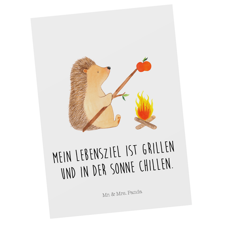 Postkarte Igel grillt - mit Spruch - Weiß