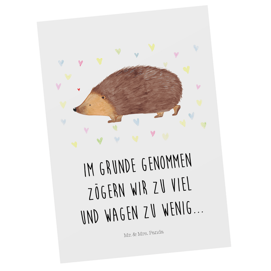 Postkarte Igel Herzen - mit Spruch - Weiß
