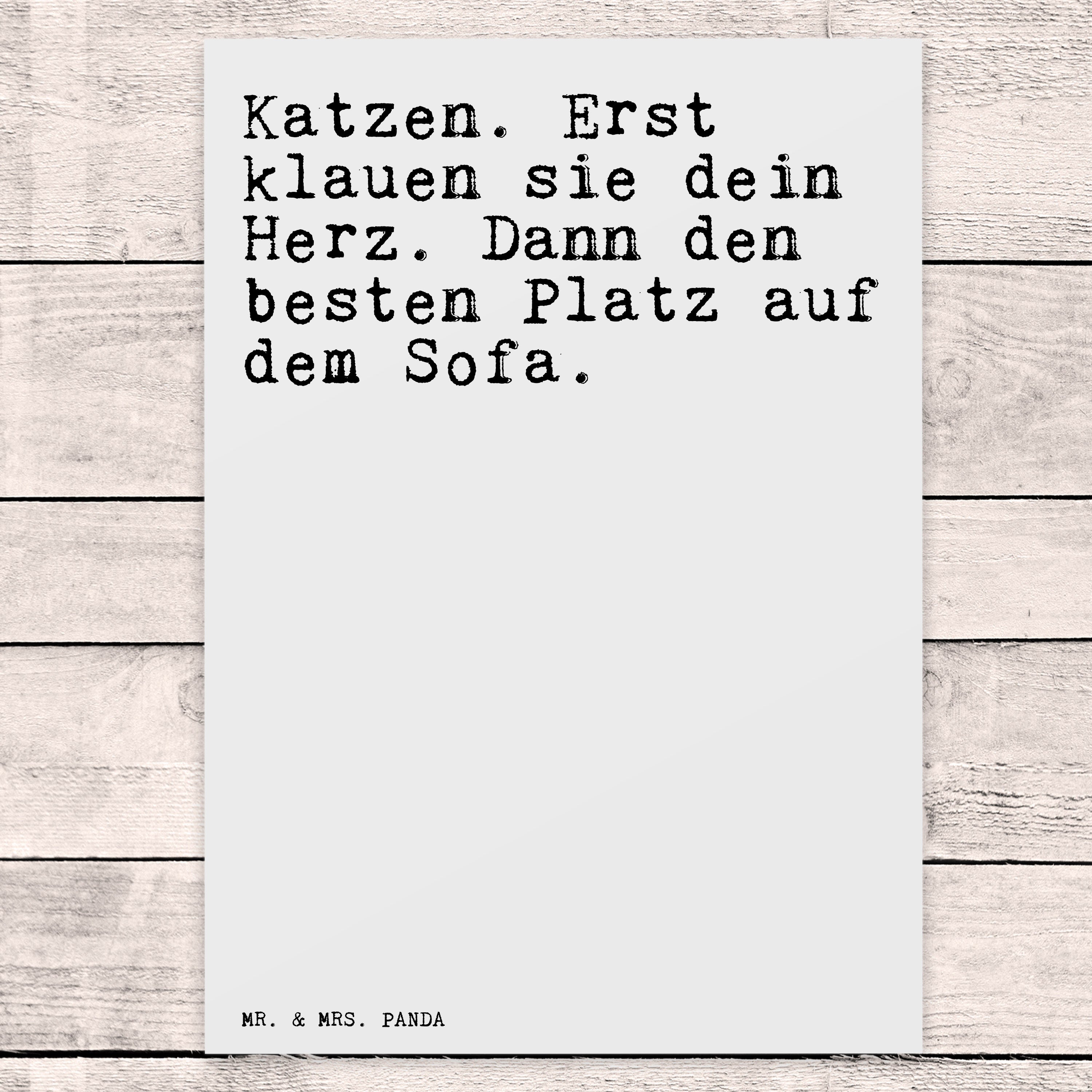 Postkarte Sprüche und Zitate Katzen. Erst klauen sie dein Herz. Dann den besten Platz auf dem Sofa.
