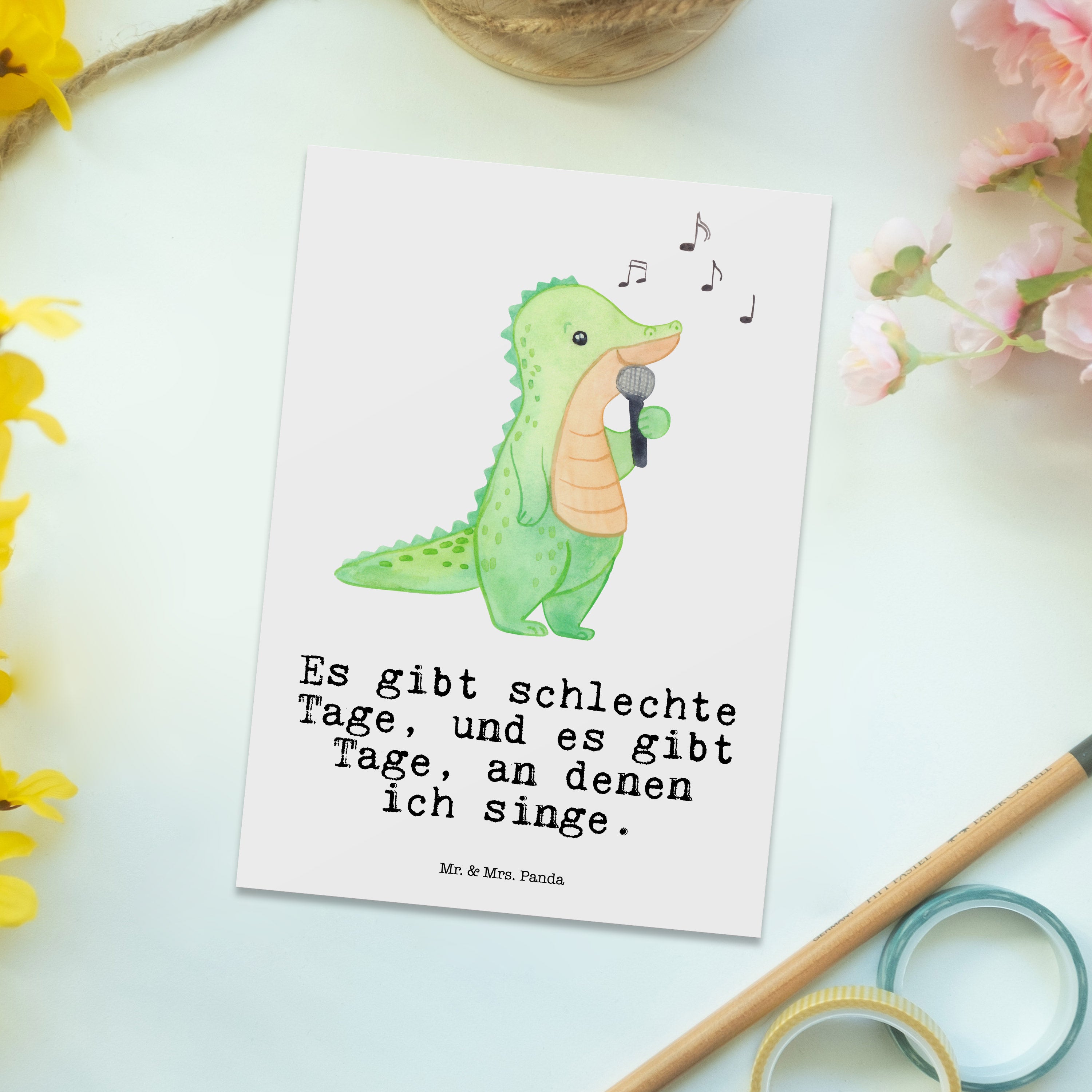 Postkarte Krokodil Singen Tage Geschenkkarte, Grußkarte, Karte, Einladung, Ansichtskarte, Geburtstagskarte, Einladungskarte, Dankeskarte, Geschenk, Sport, Sportart, Hobby, Schenken, Danke, Dankeschön, Auszeichnung, Gewinn, Sportler, Singen, Band, Live Auftritt, Gesang, Hobbysänger