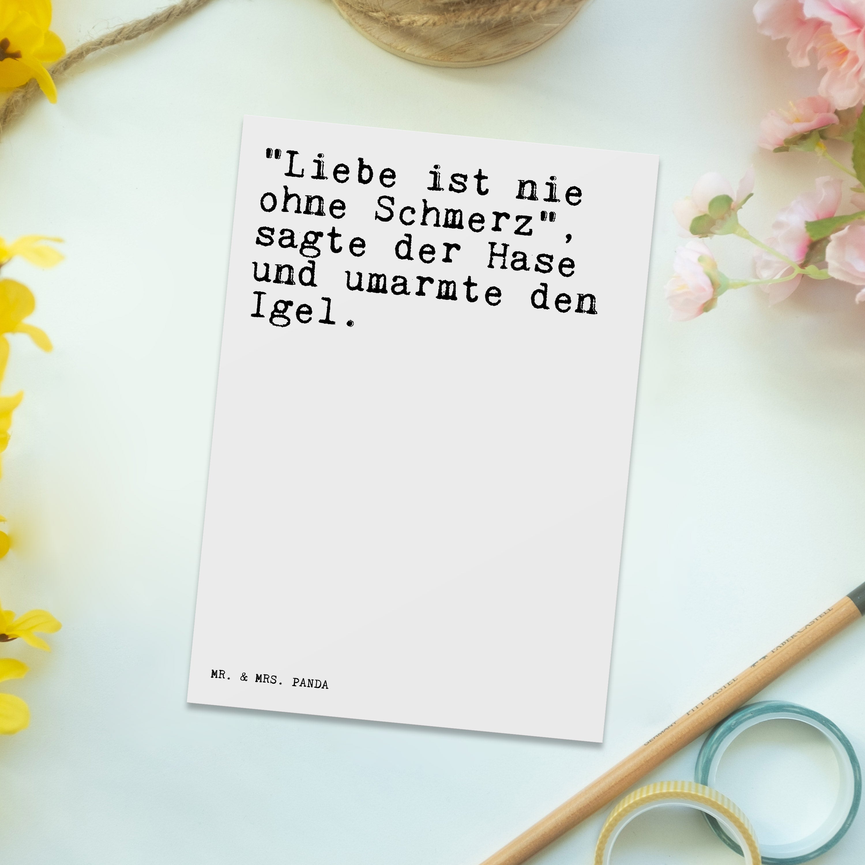 Postkarte Sprüche und Zitate "Liebe ist nie ohne Schmerz", sagte der Hase und umarmte den Igel.
