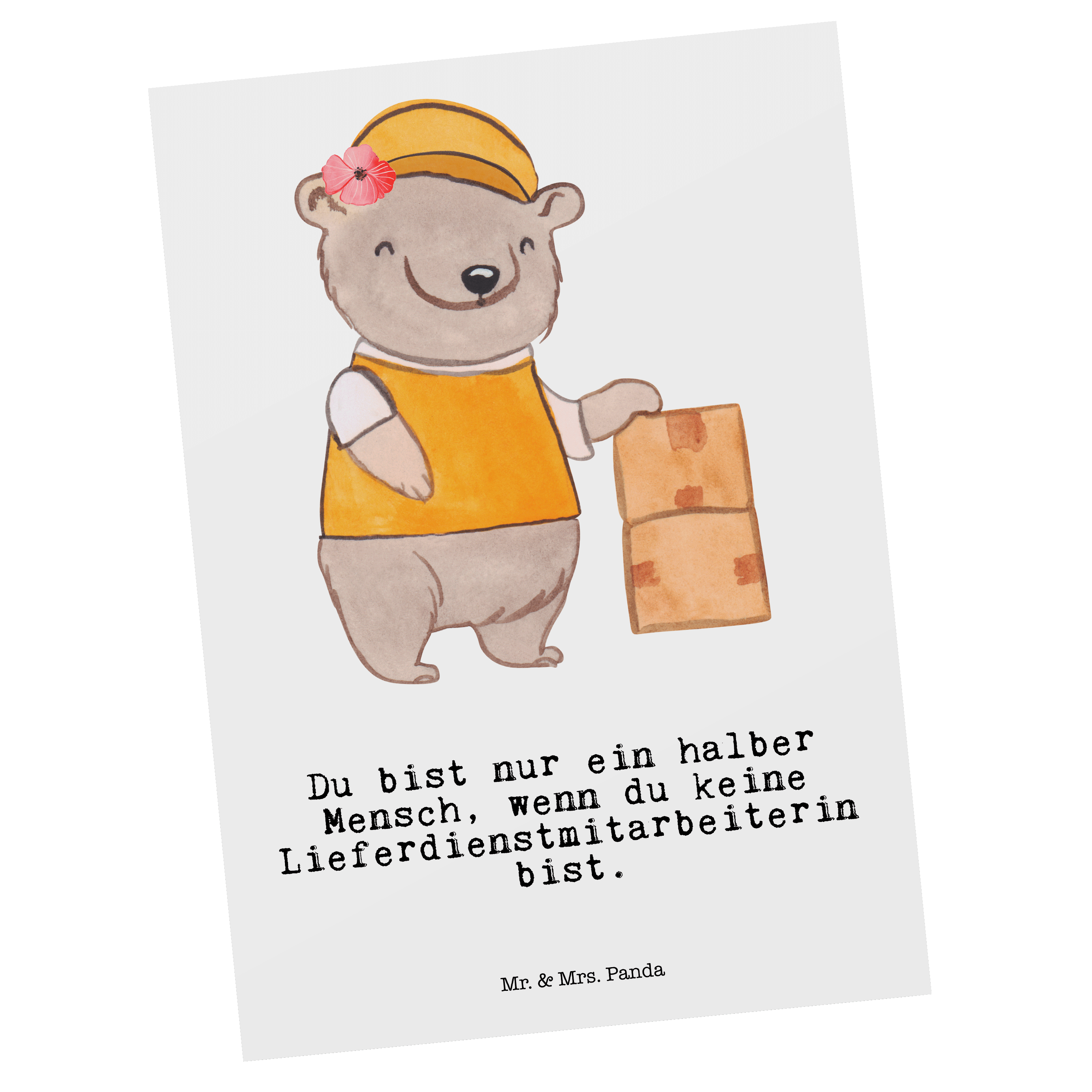Postkarte Lieferdienstmitarbeiterin mit Herz