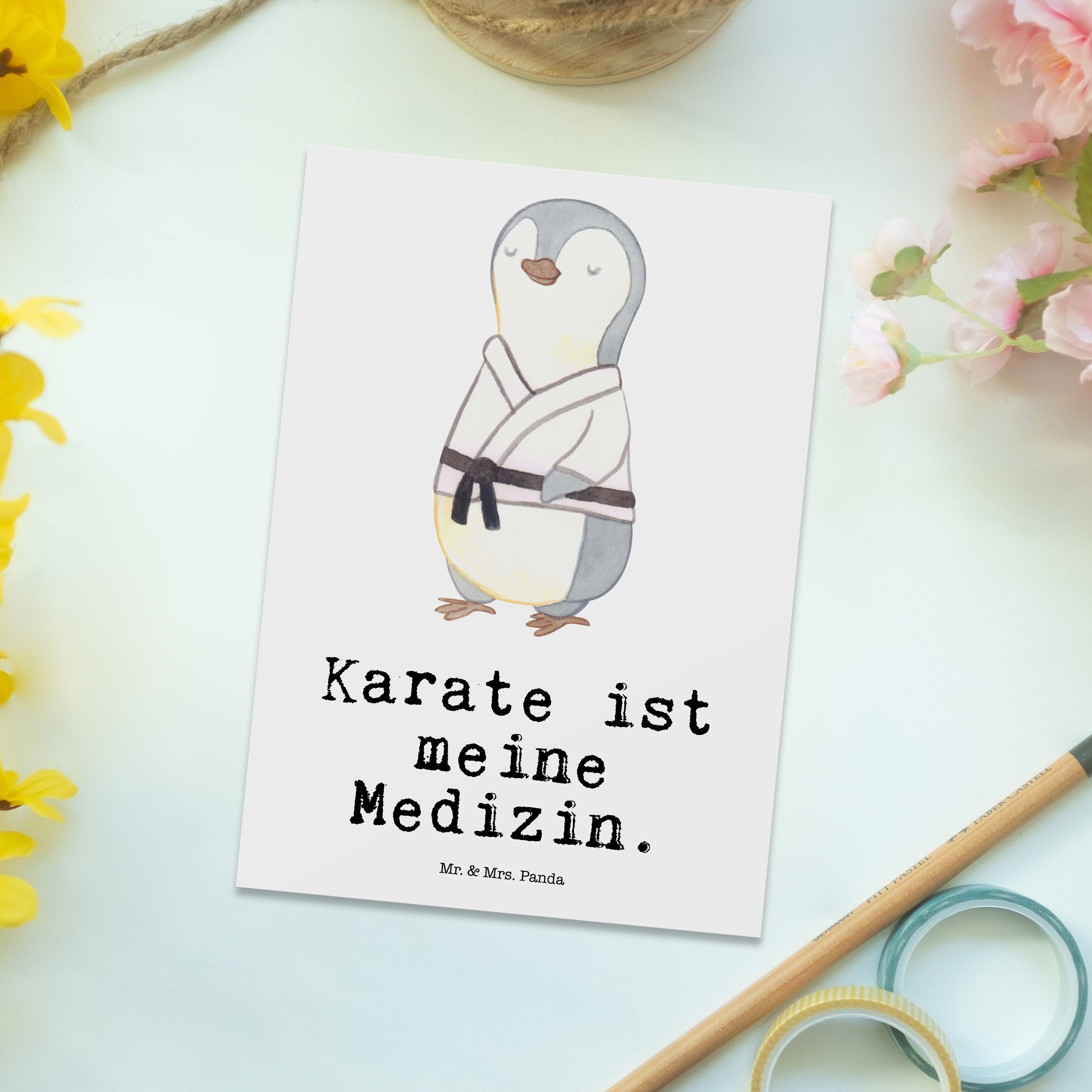 Postkarte Pinguin Karate Medizin