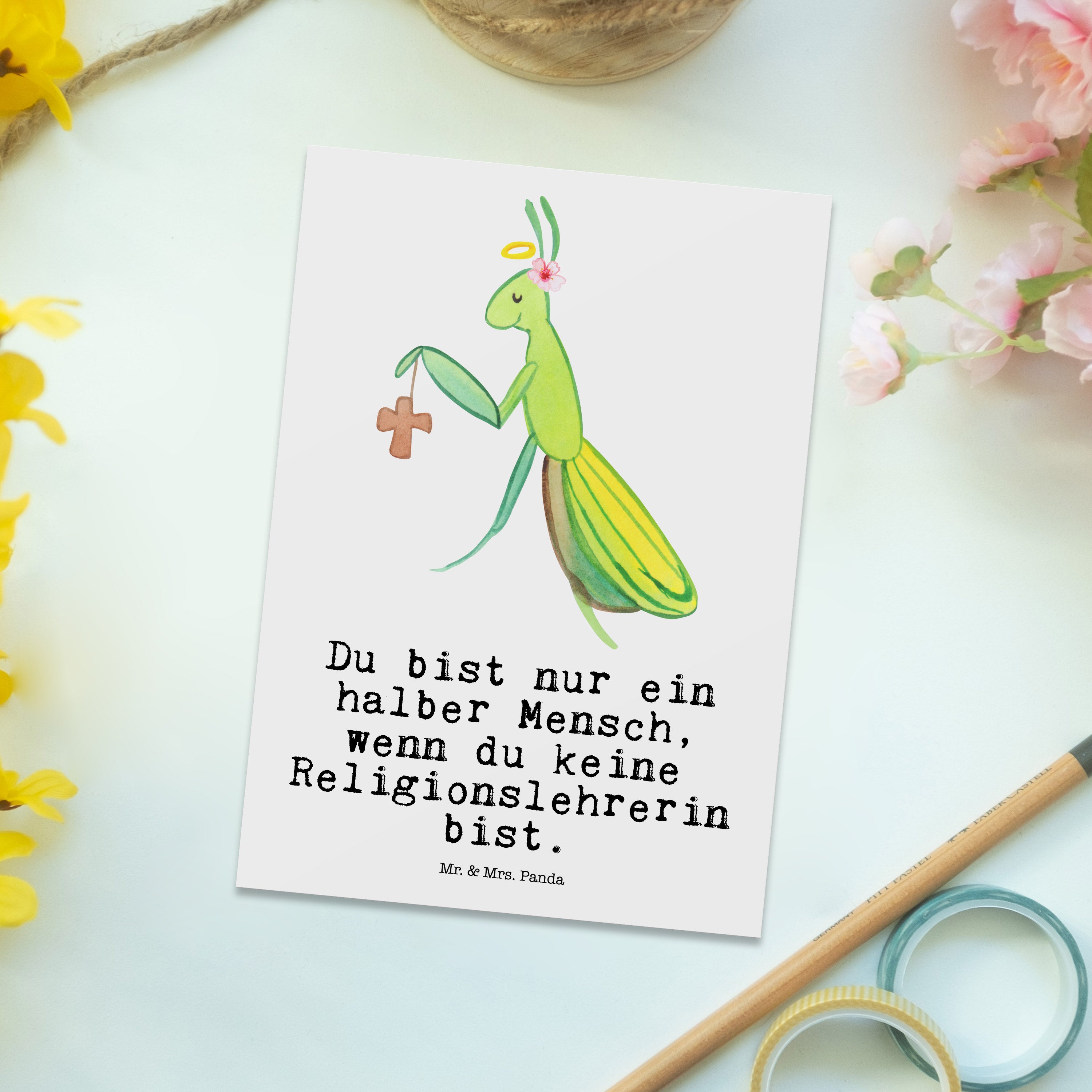 Postkarte Religionslehrerin mit Herz