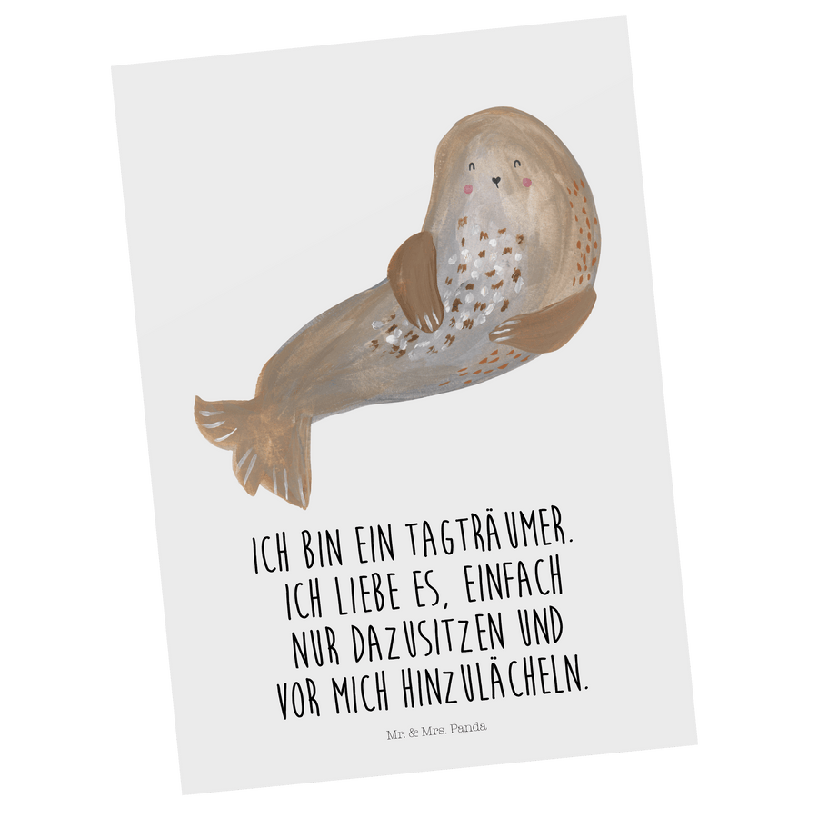 Postkarte Robbe lachend - mit Spruch - Weiß