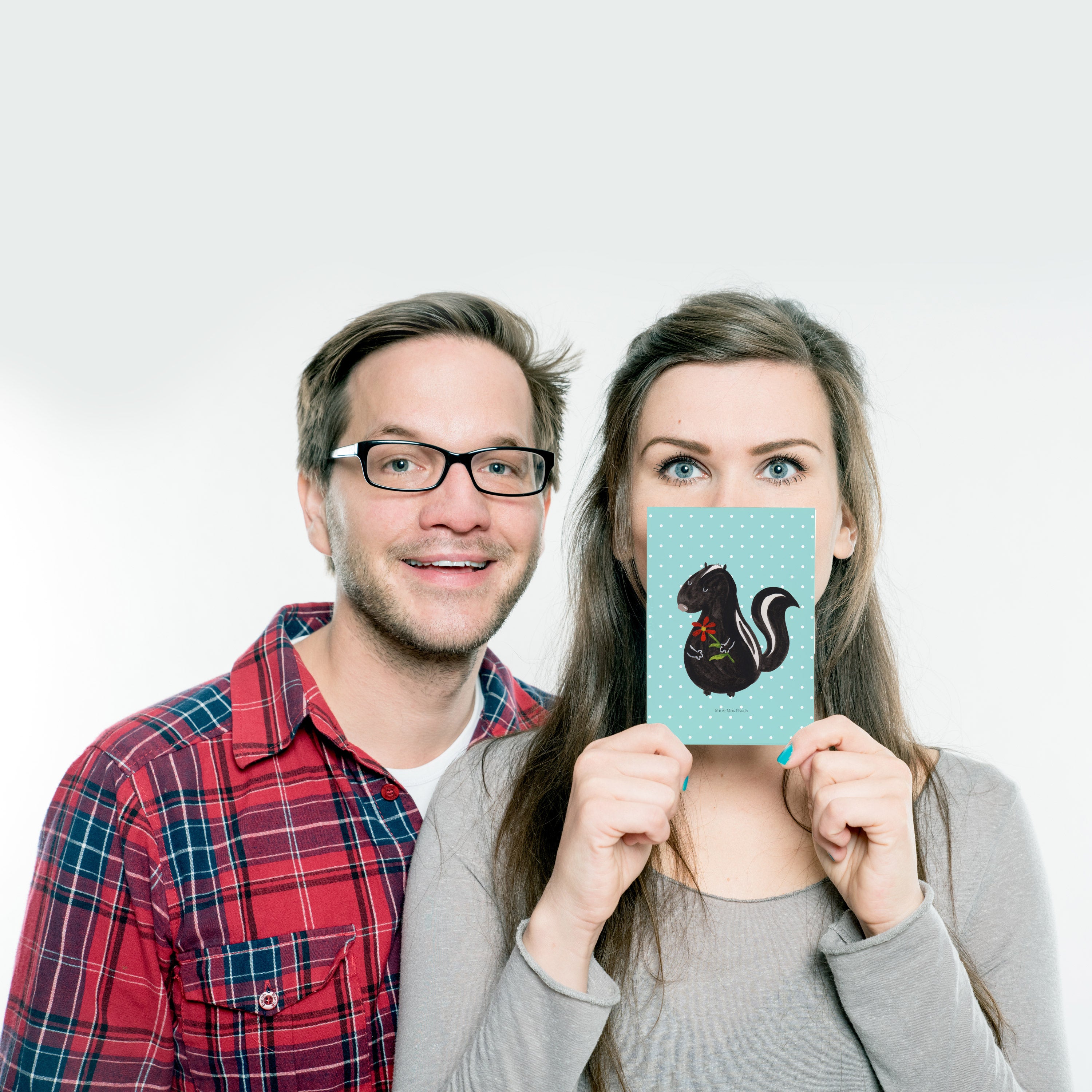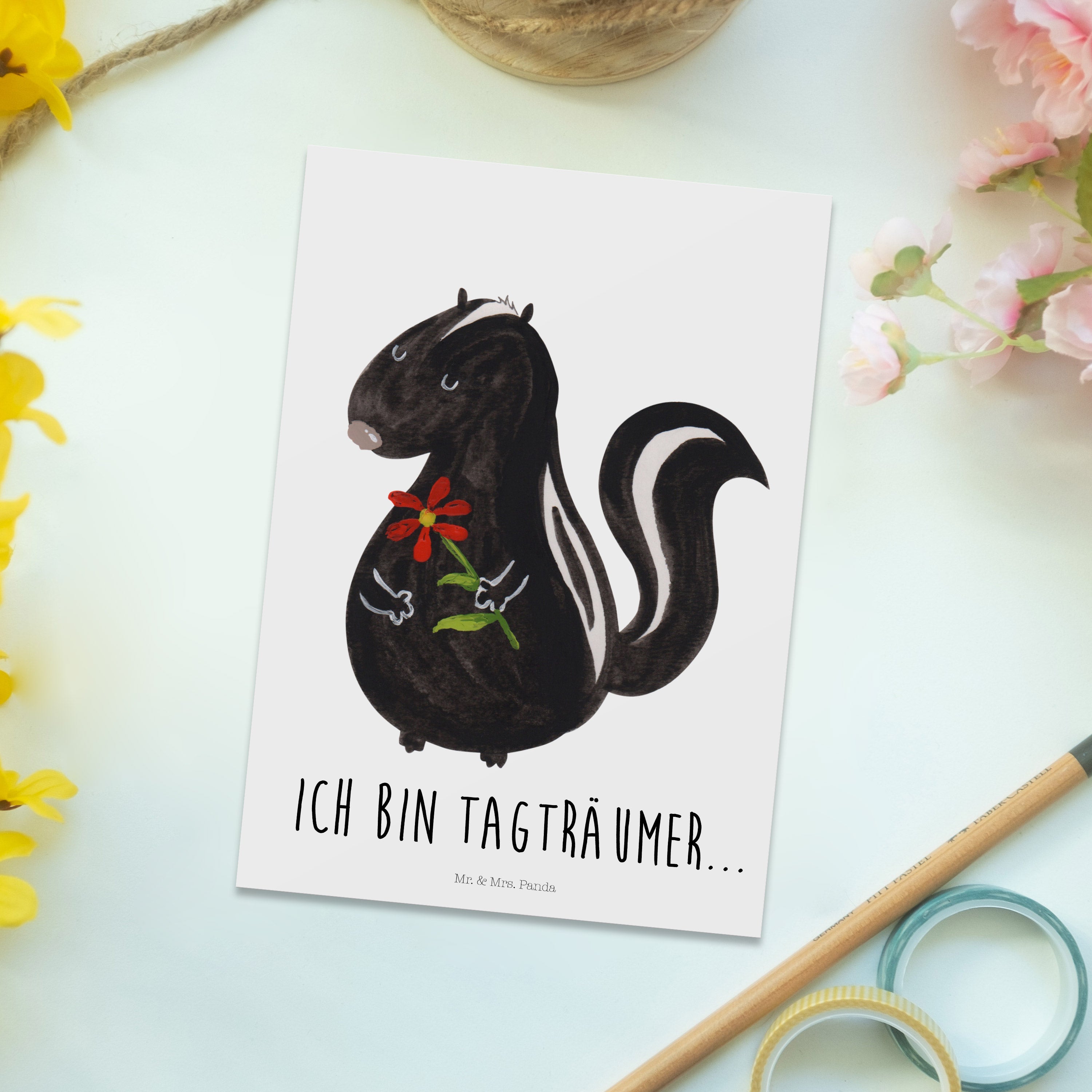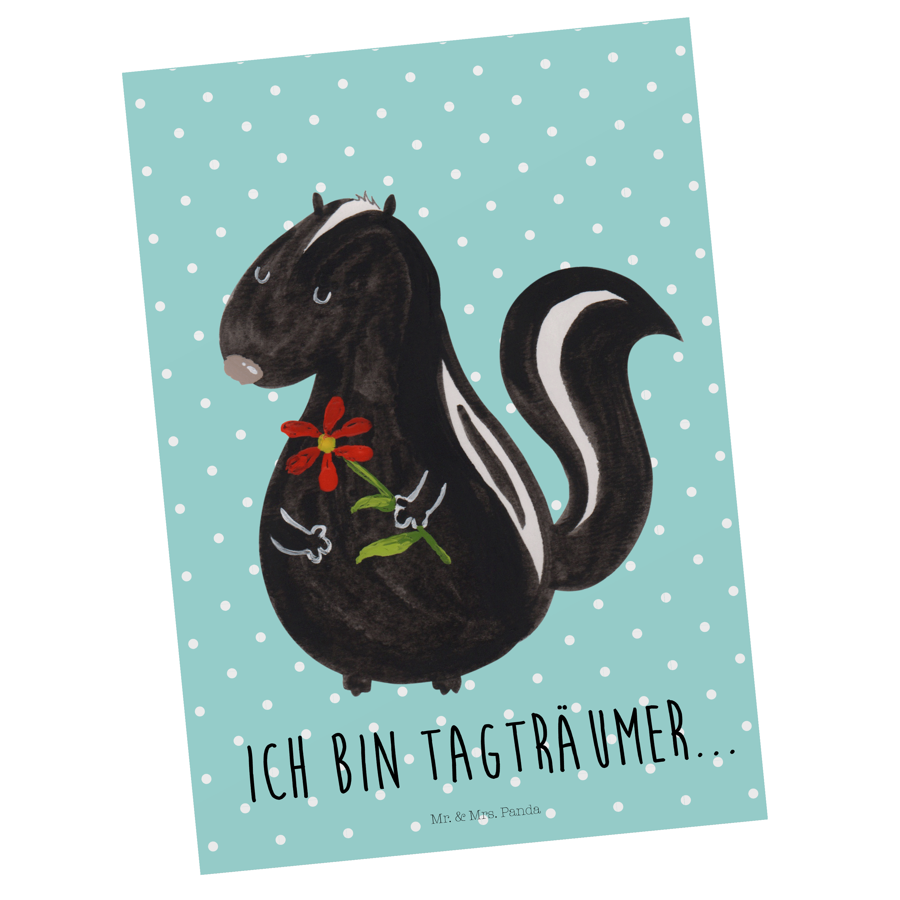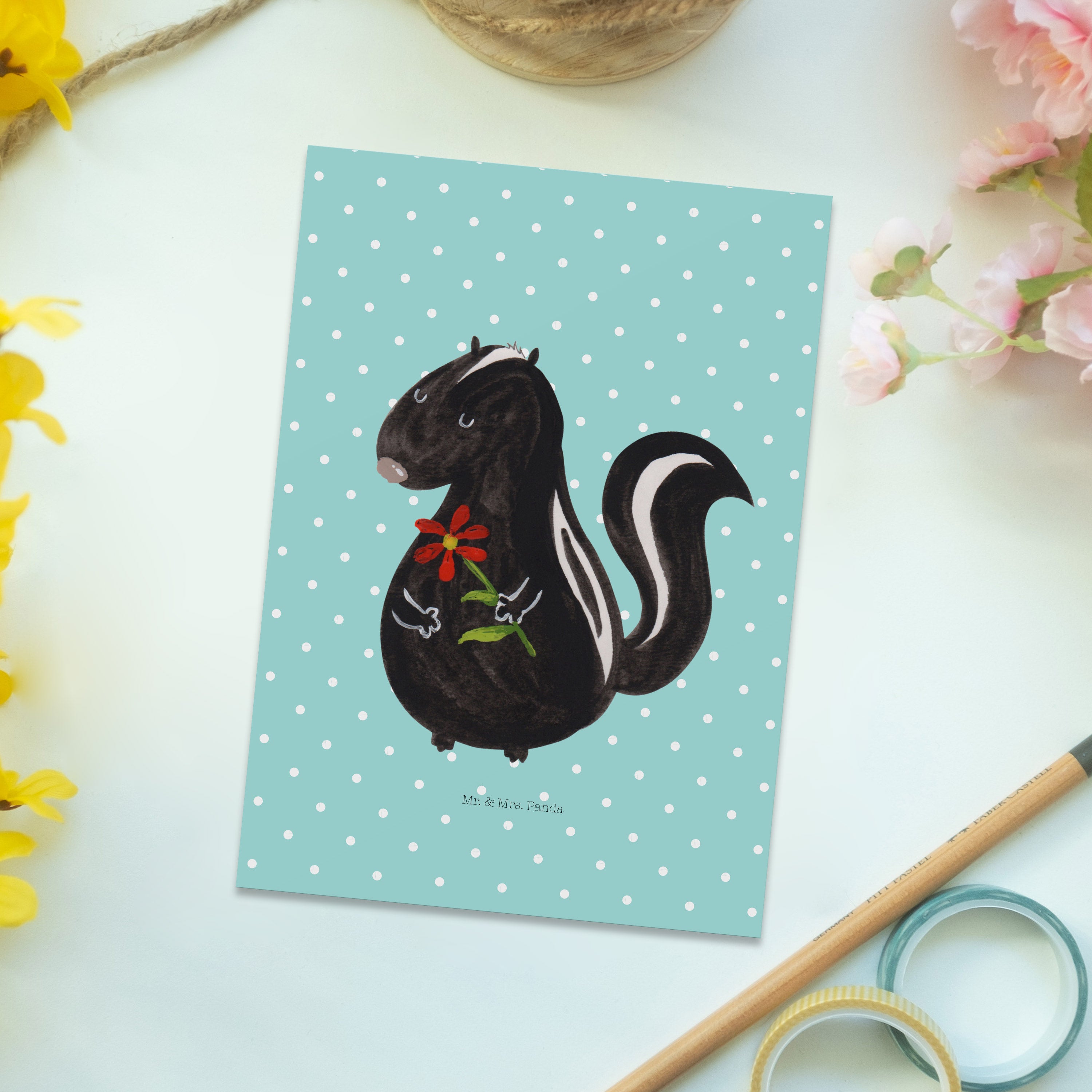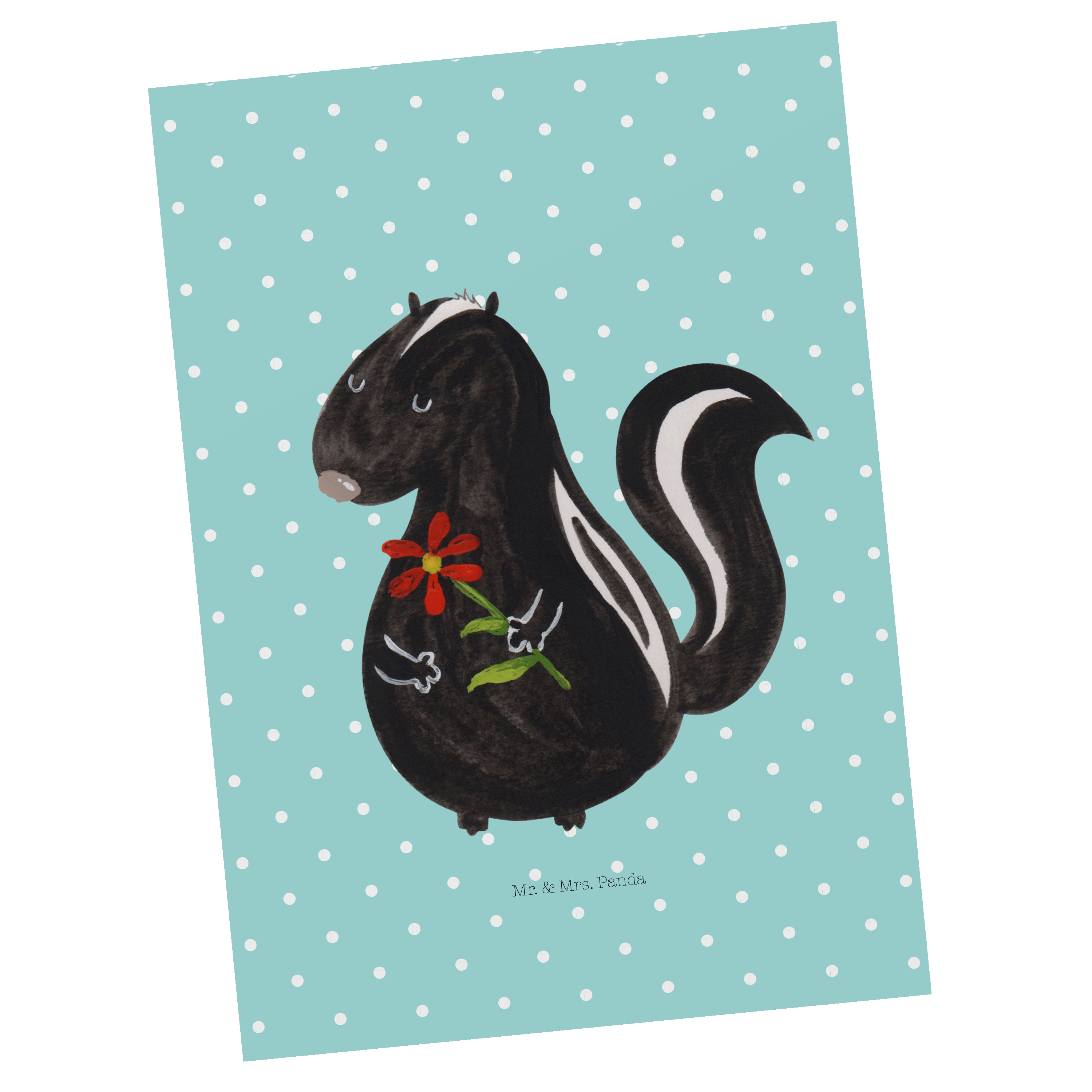 Postkarte Stinktier Blume - mit Spruch - Türkis Pastell