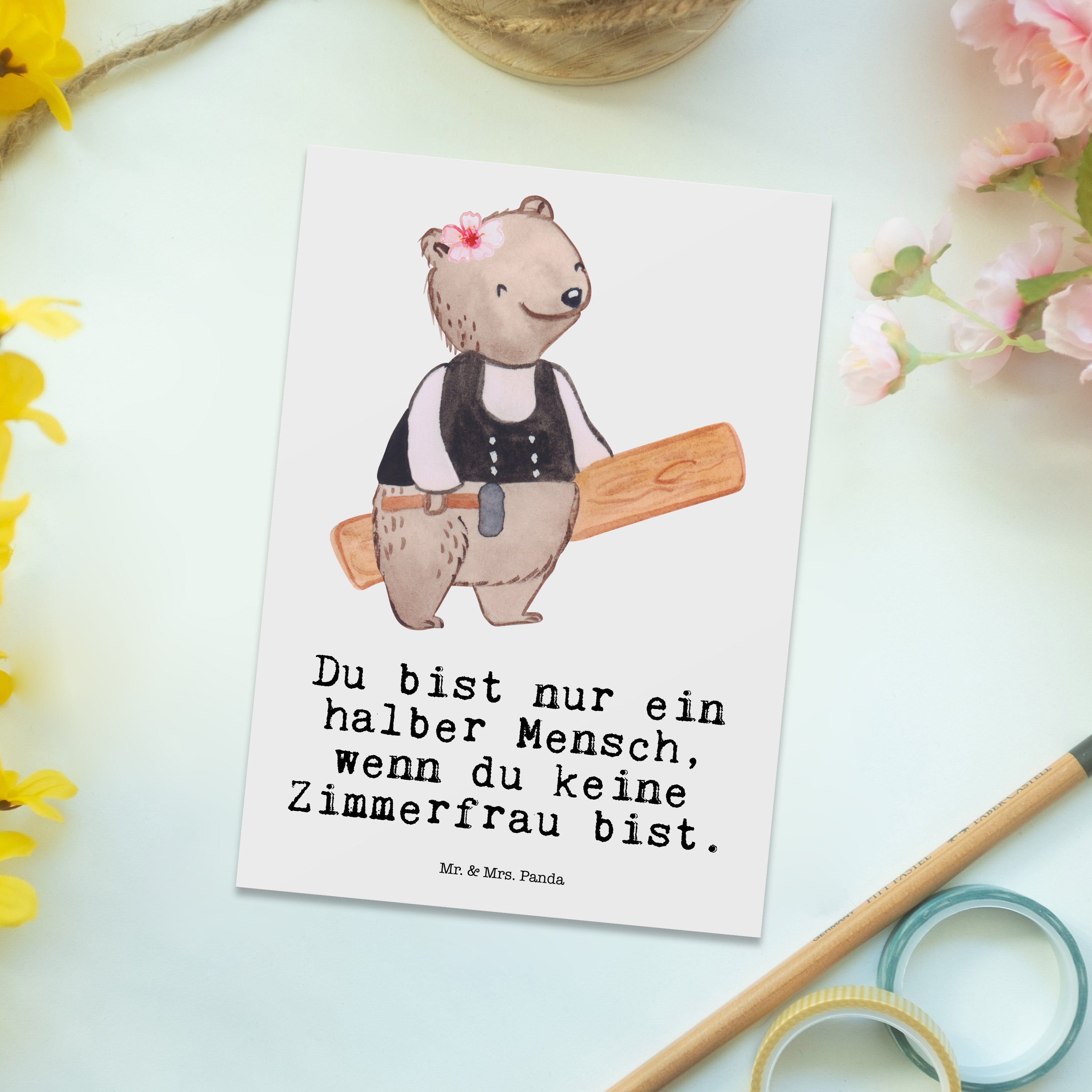 Postkarte Zimmerfrau mit Herz Geschenkkarte, Grußkarte, Karte, Einladung, Ansichtskarte, Geburtstagskarte, Einladungskarte, Beruf, Ausbildung, Jubiläum, Abschied, Rente, Kollege, Kollegin, Geschenk, Schenken, Arbeitskollege, Mitarbeiter, Firma, Danke, Dankeschön