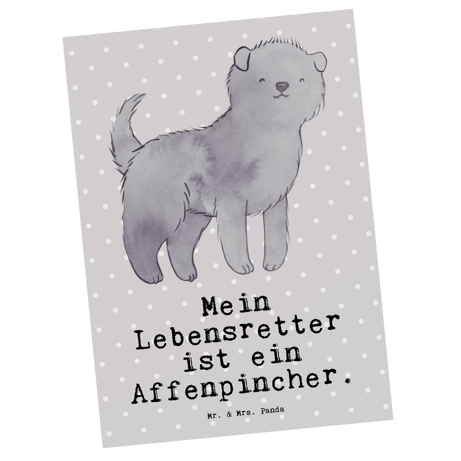 Postkarte Affenpincher Lebensretter - mit Spruch - Grau Pastell
