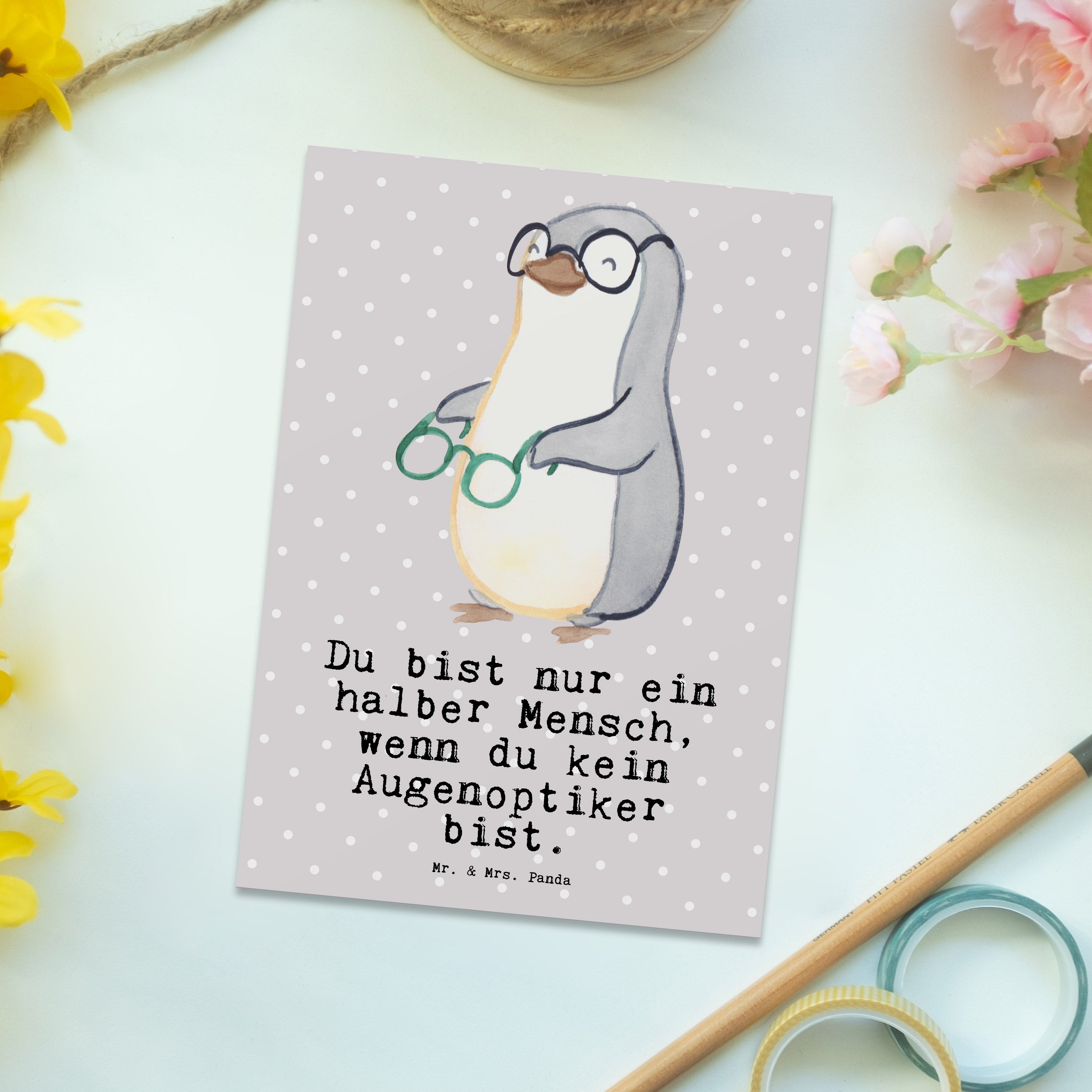 Postkarte Augenoptiker mit Herz - Grau Pastell