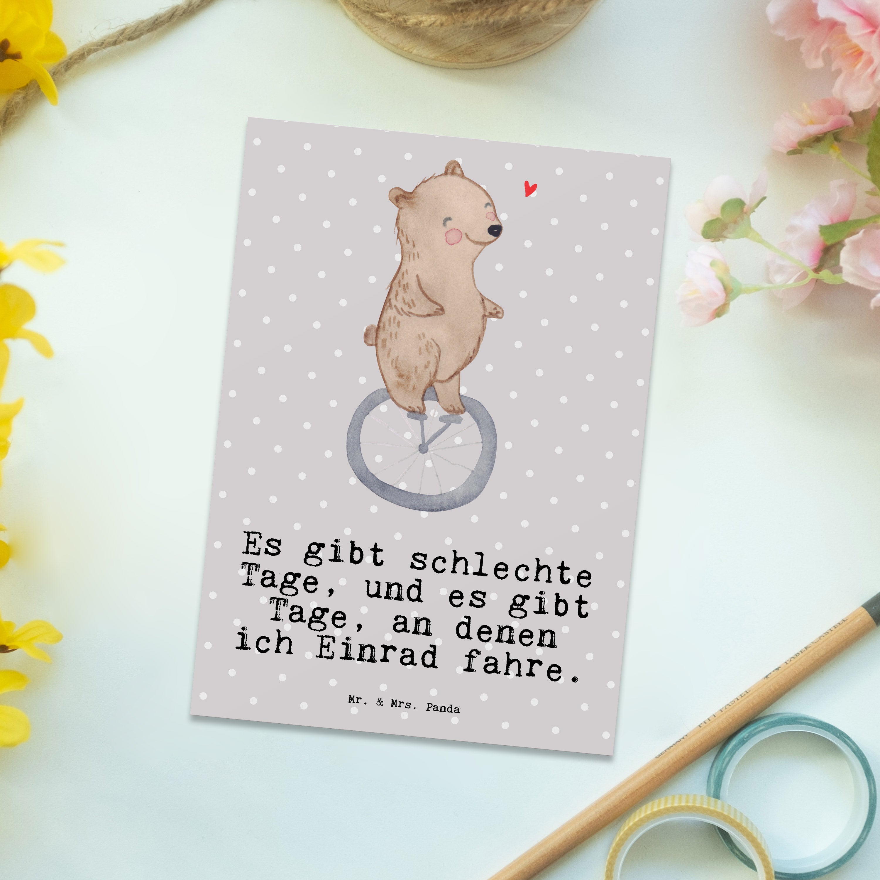Postkarte Bär Einrad fahren Tage - Grau Pastell