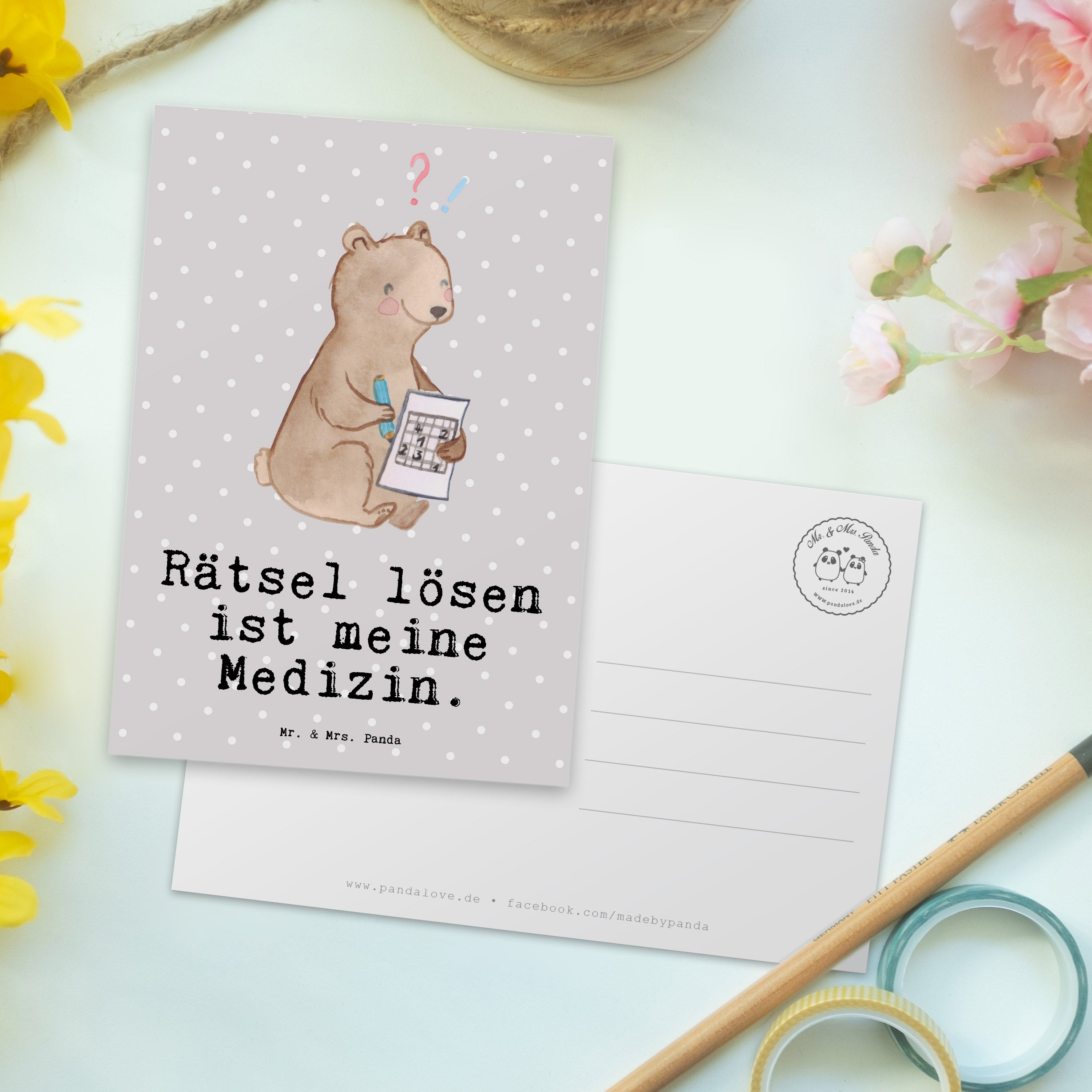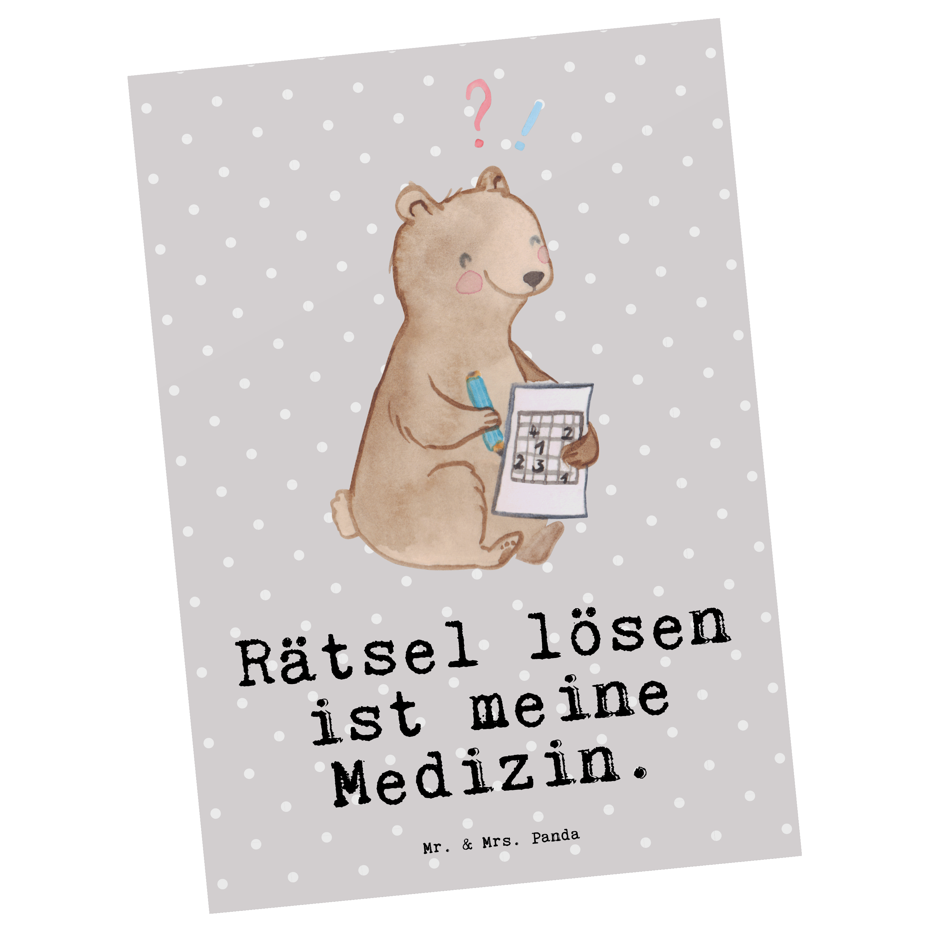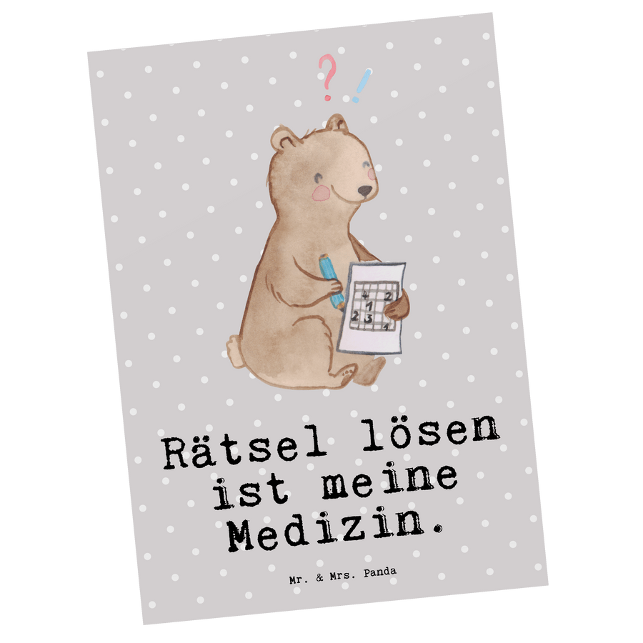 Postkarte Bär Rätsel lösen Medizin - Grau Pastell
