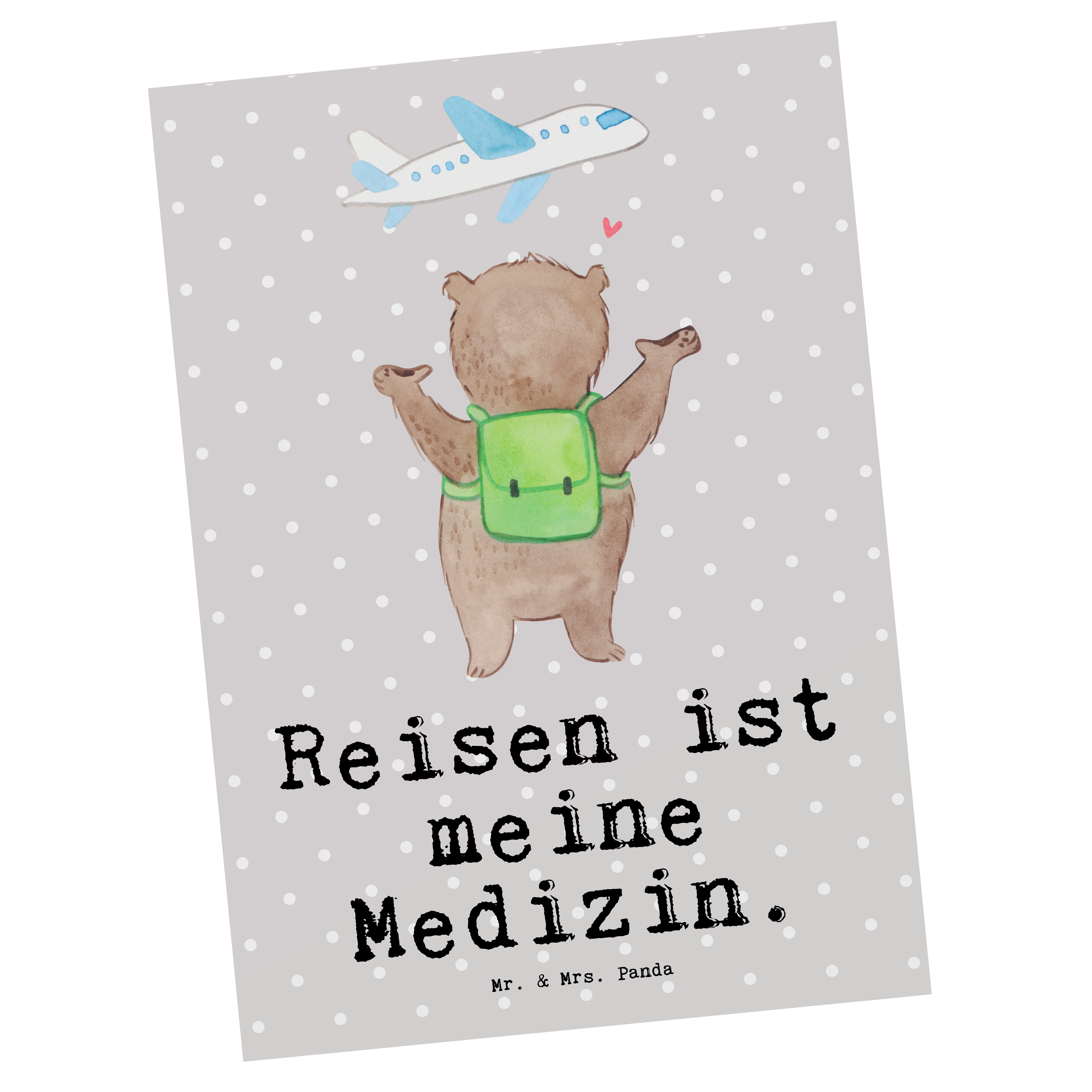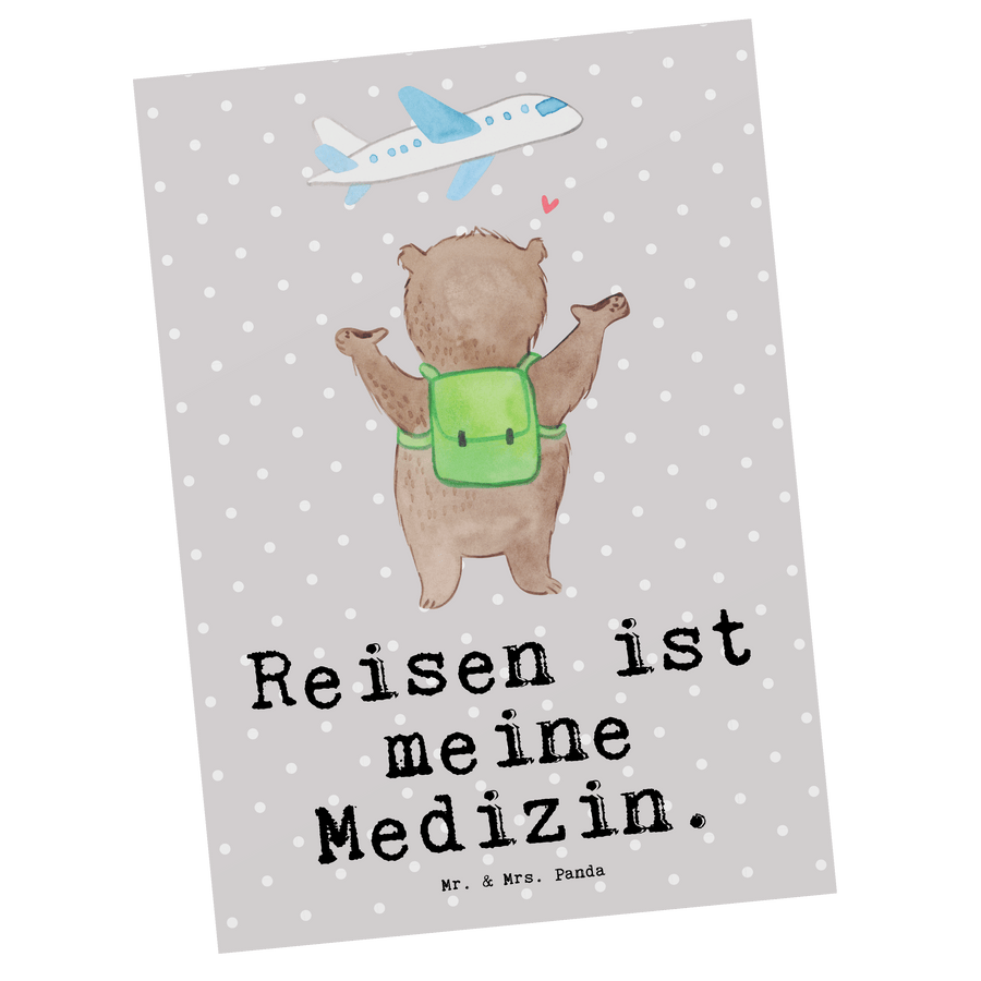 Postkarte Bär Reisen Medizin - Grau Pastell