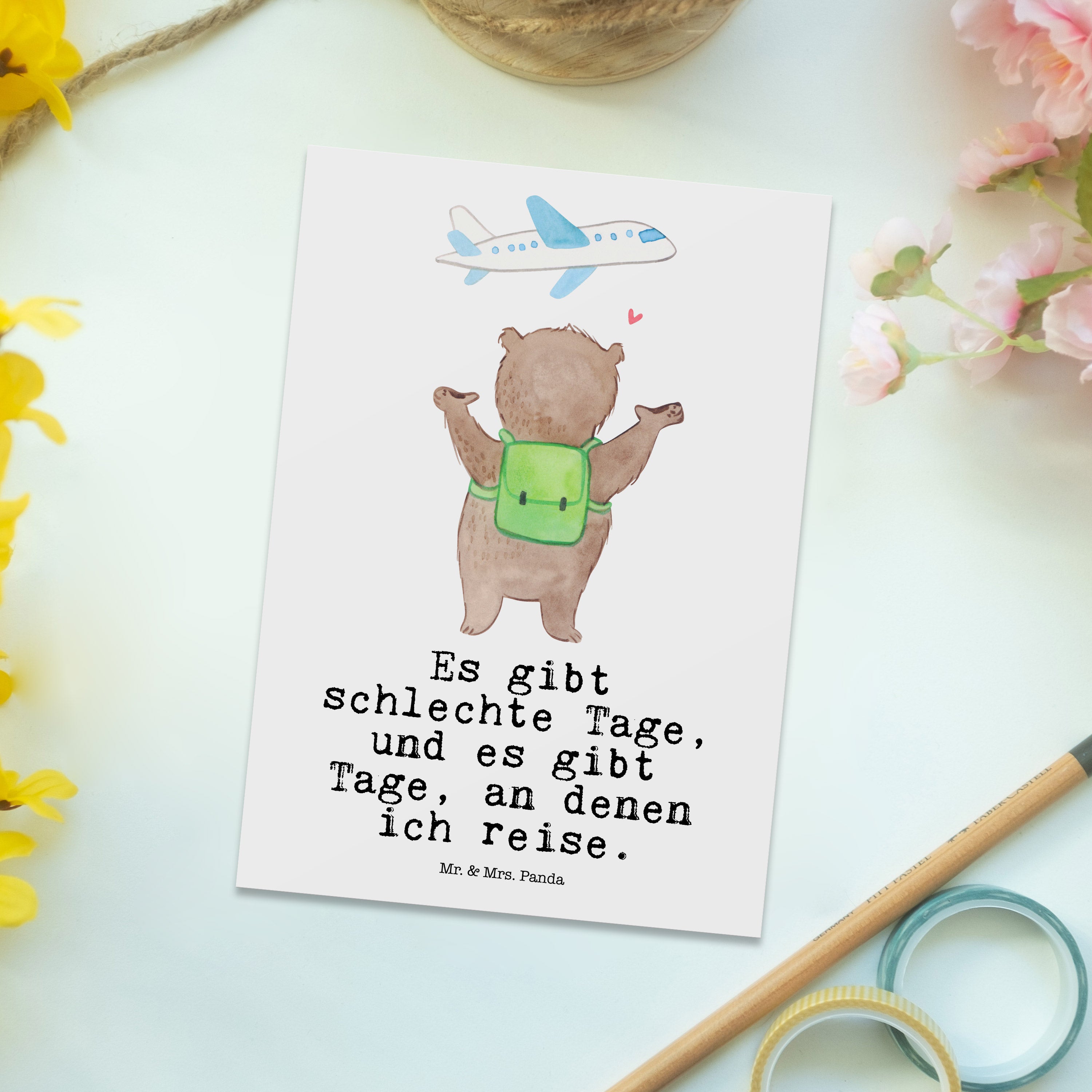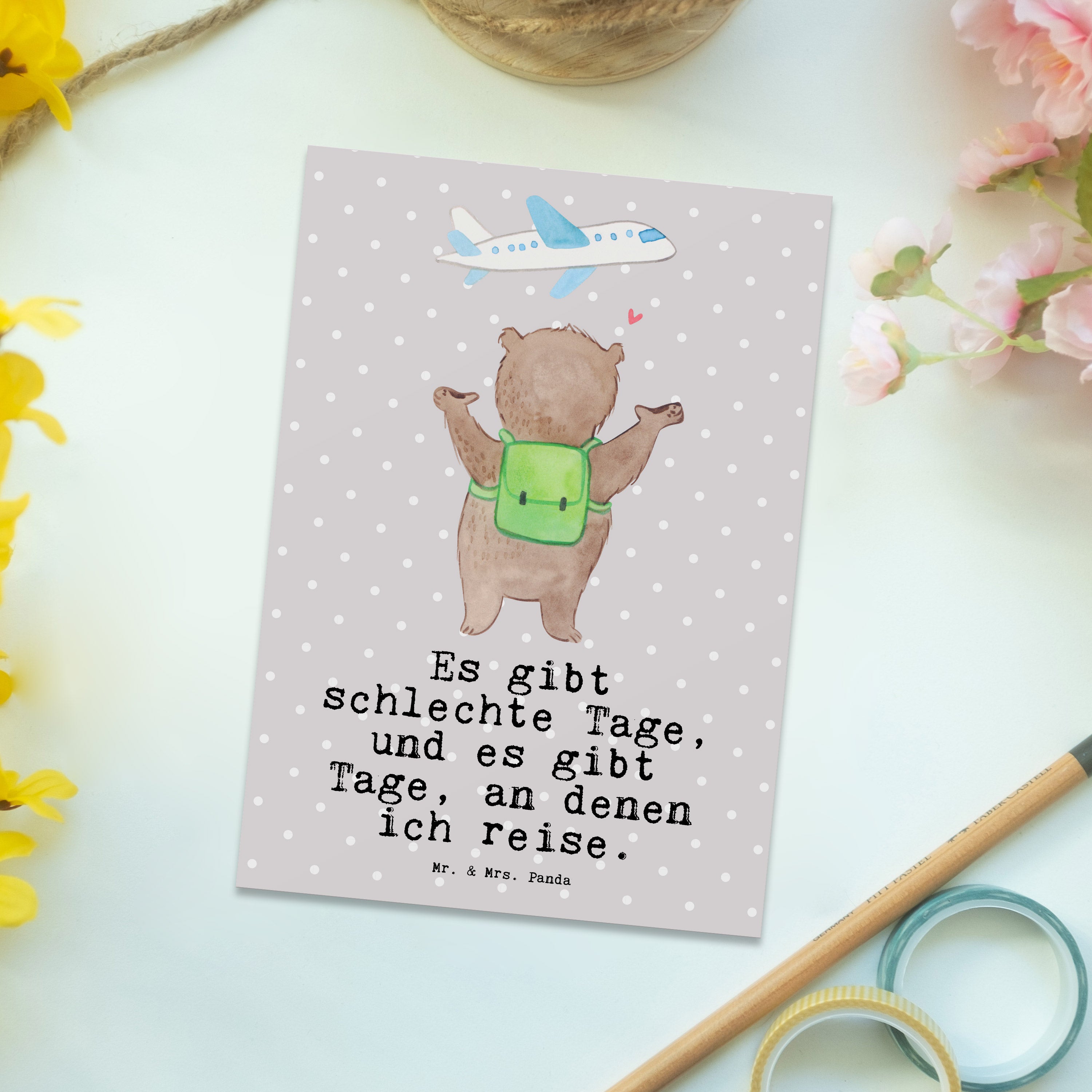 Postkarte Bär Reisen Tage - Grau Pastell