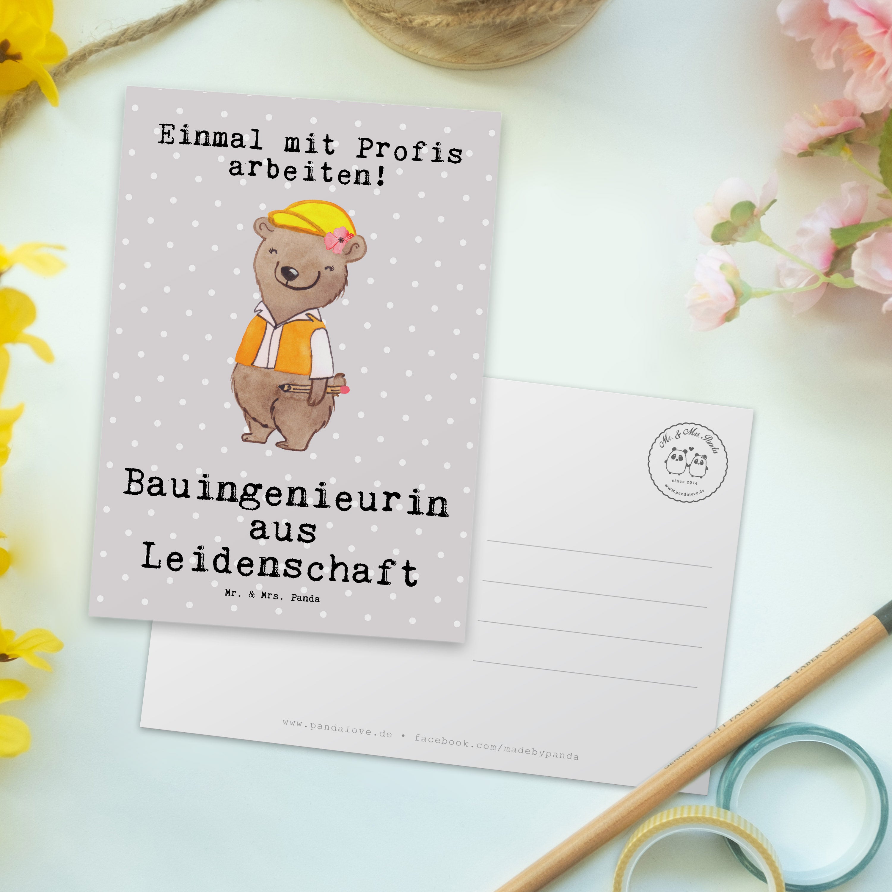 Postkarte Bauingenieurin aus Leidenschaft - Grau Pastell
