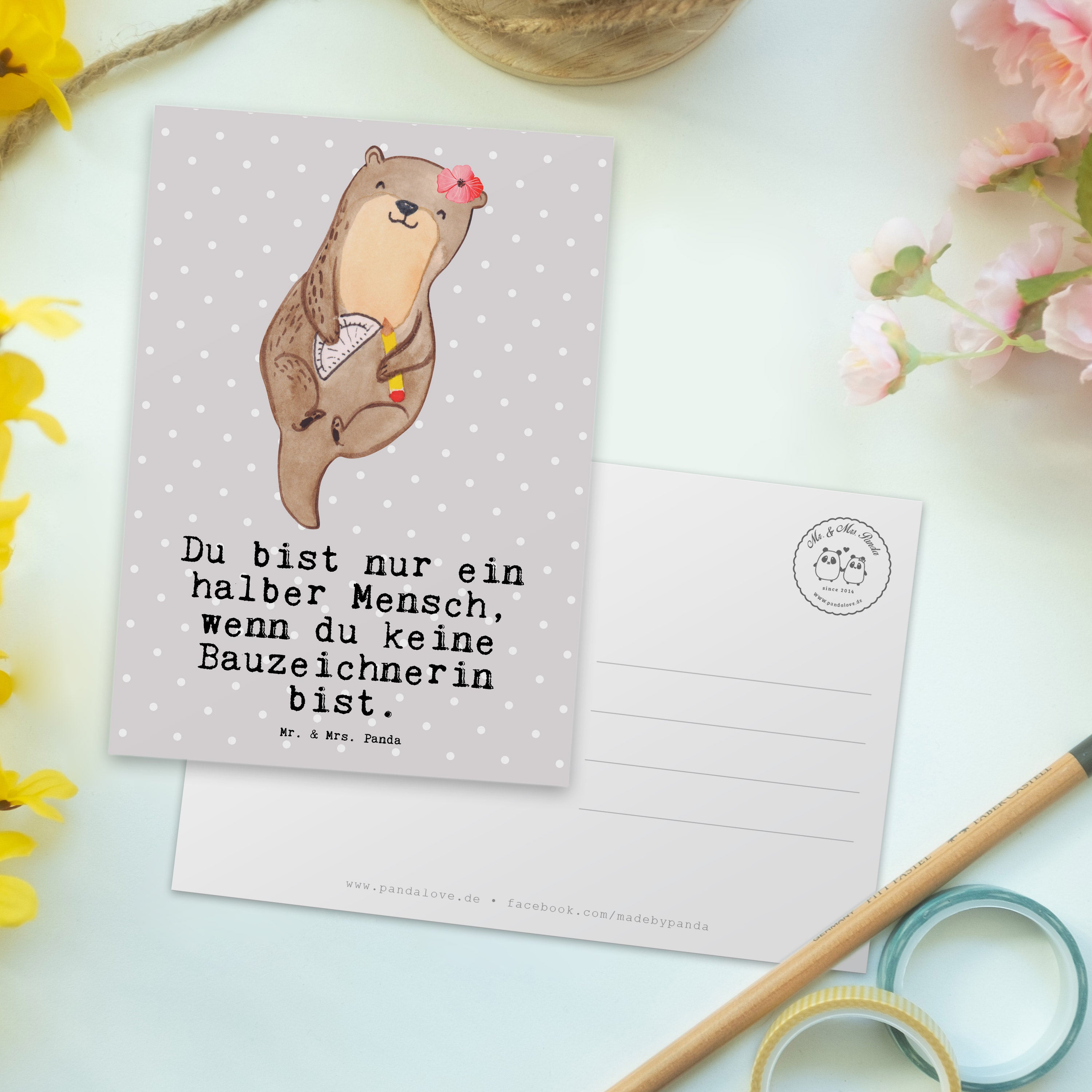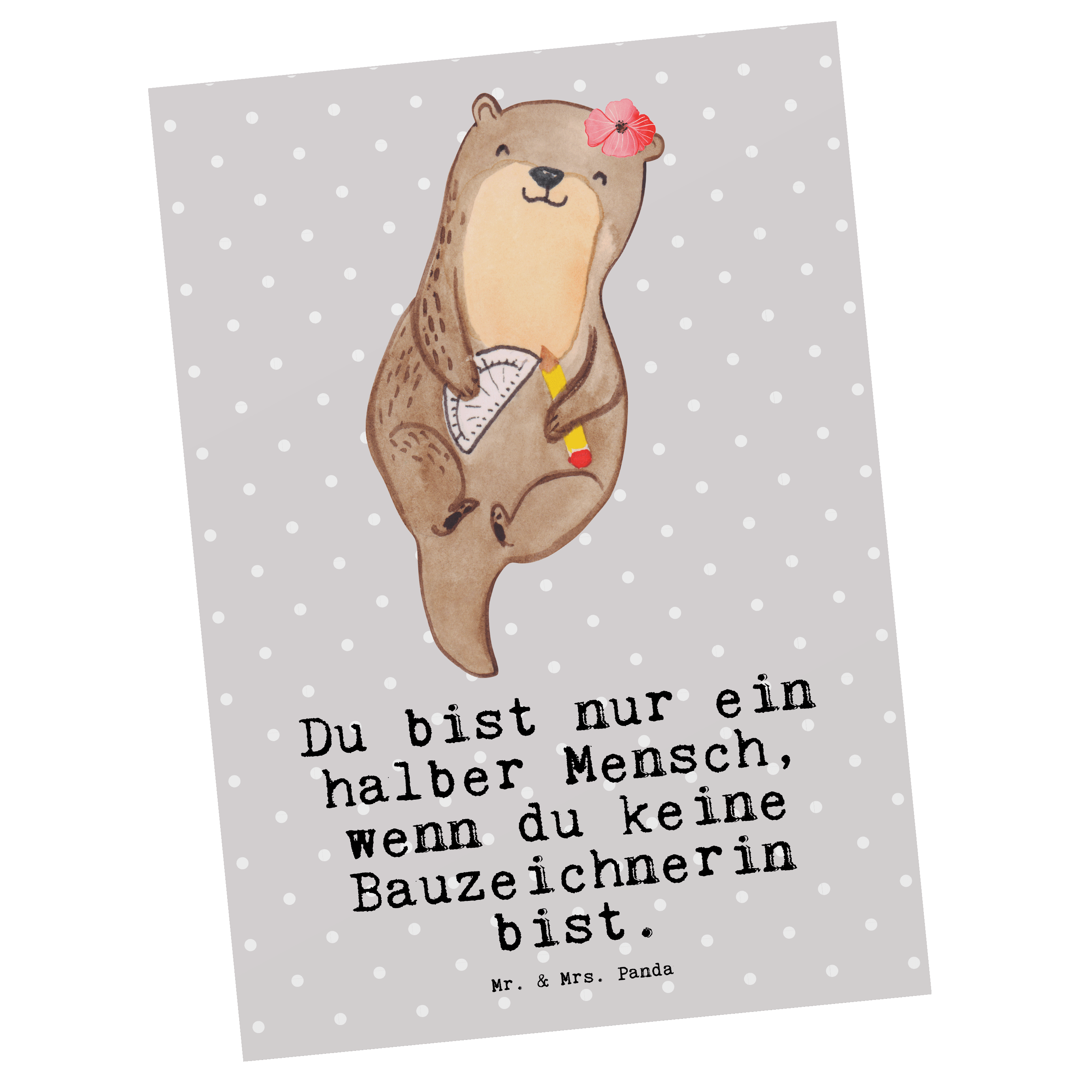 Postkarte Bauzeichnerin mit Herz - Grau Pastell
