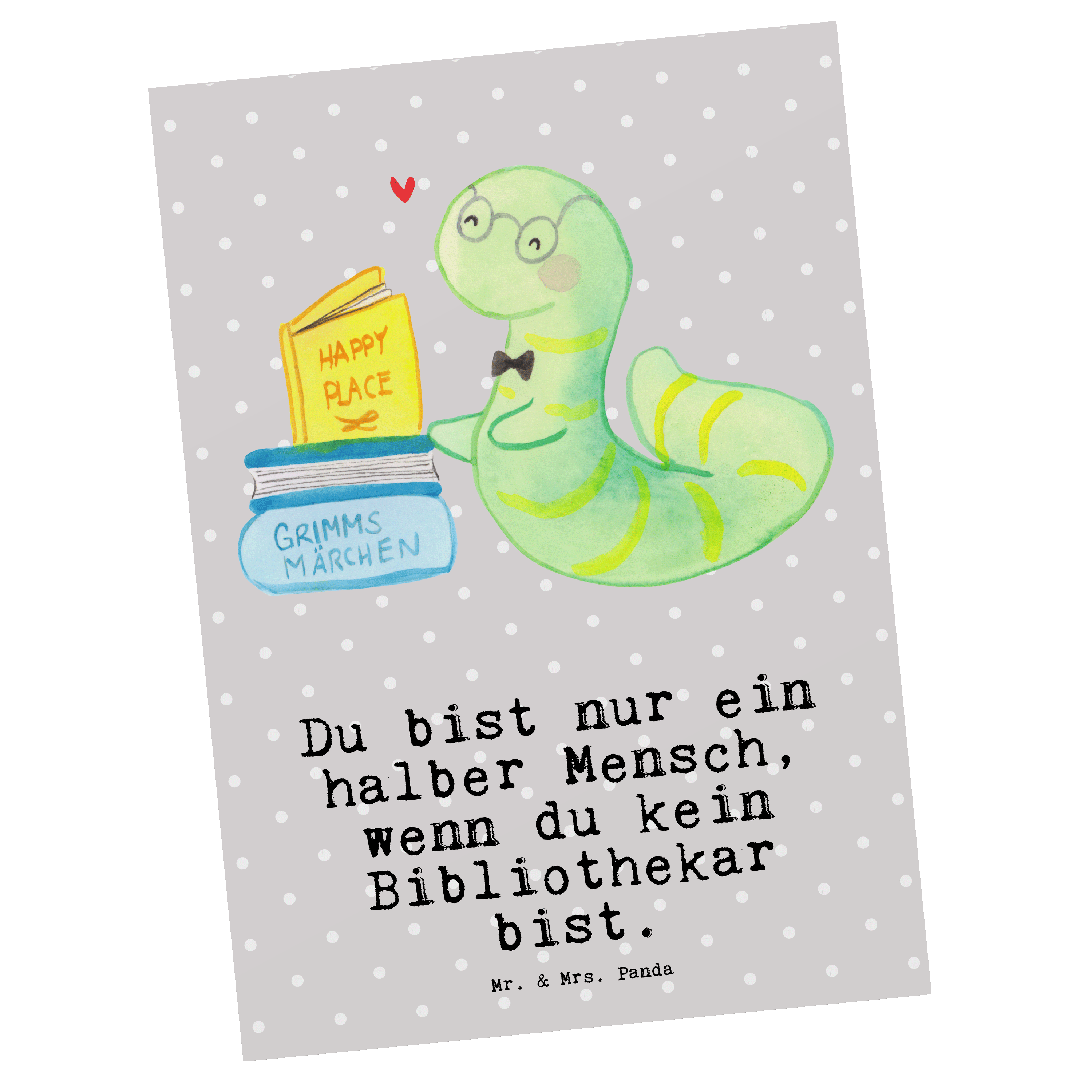 Postkarte Bibliothekar mit Herz - Grau Pastell