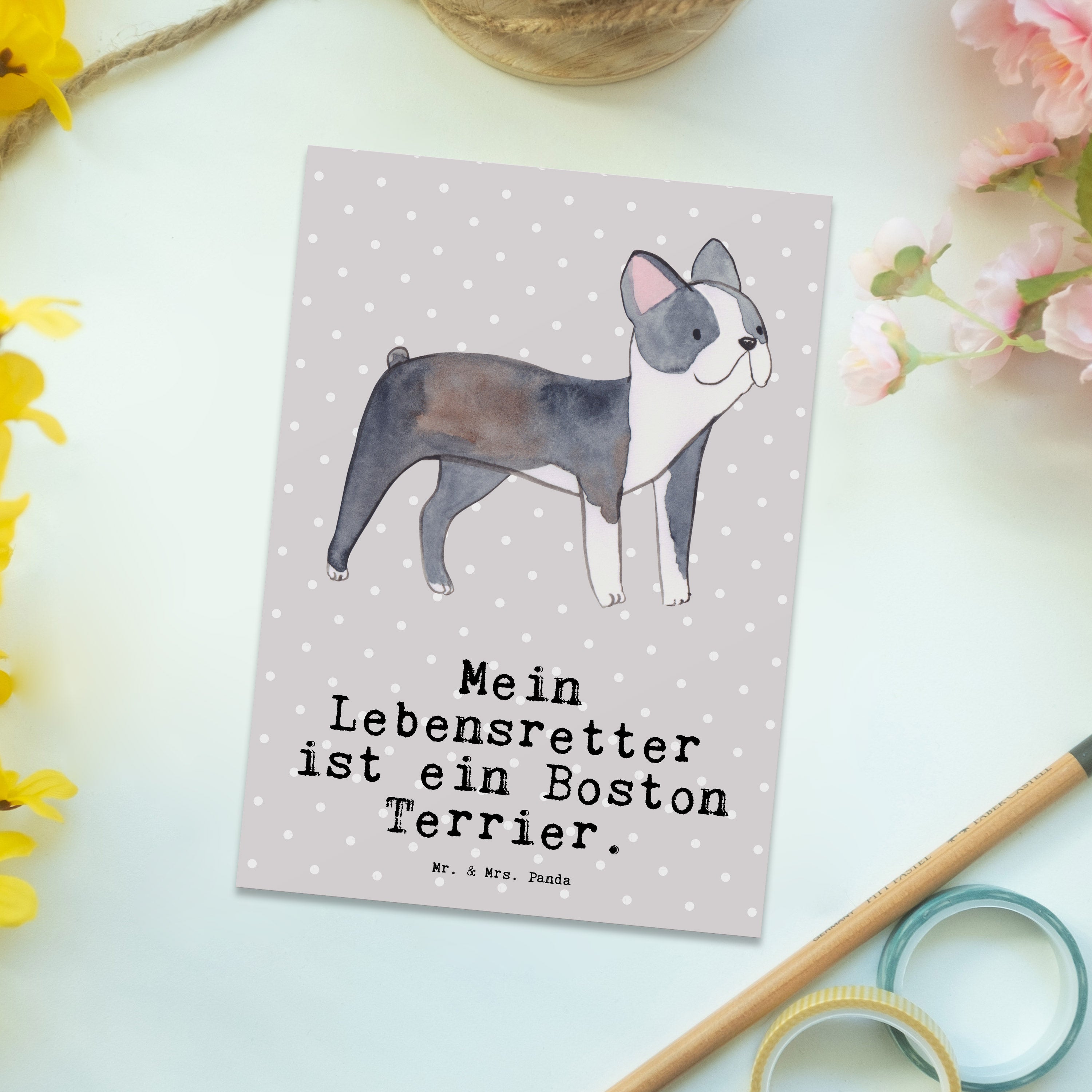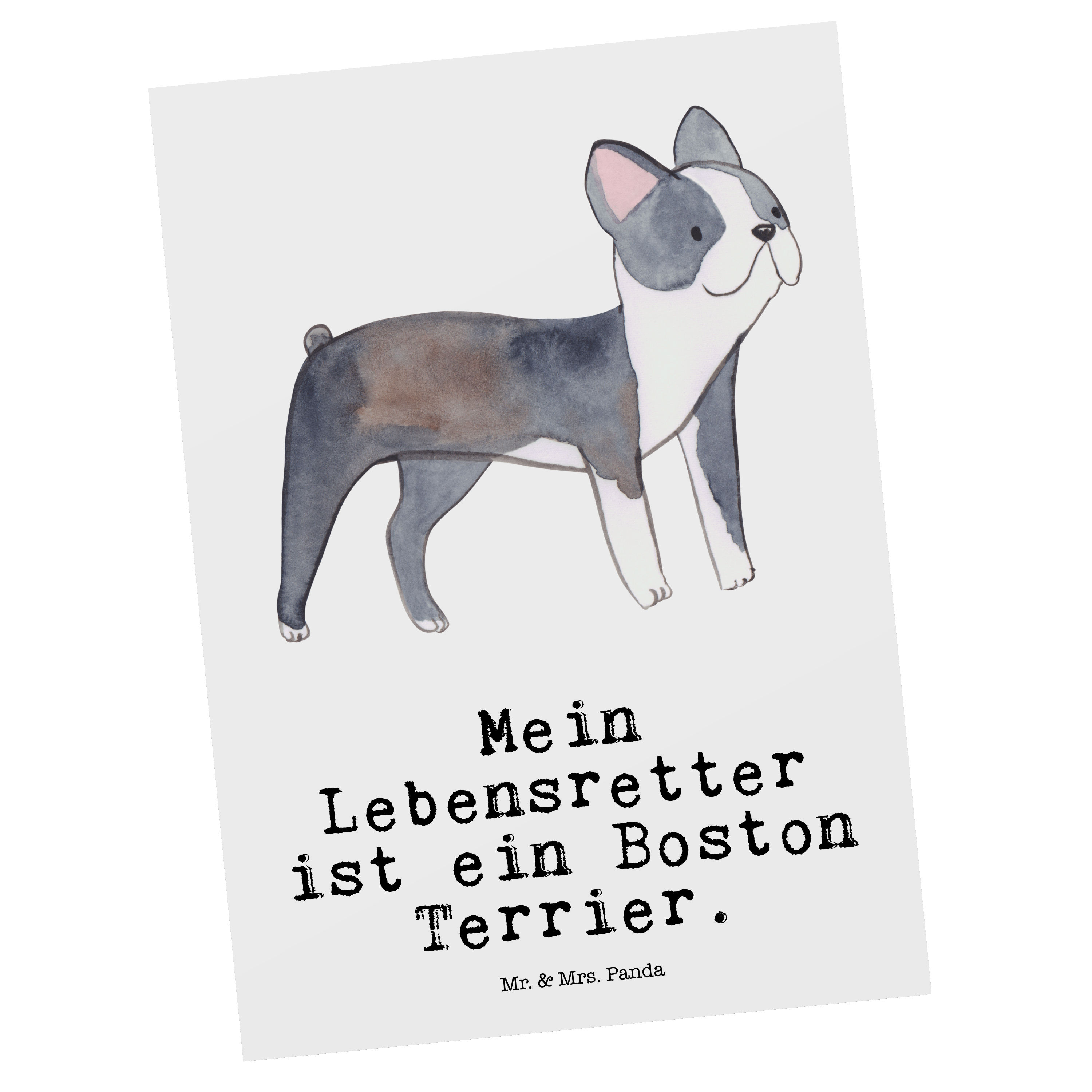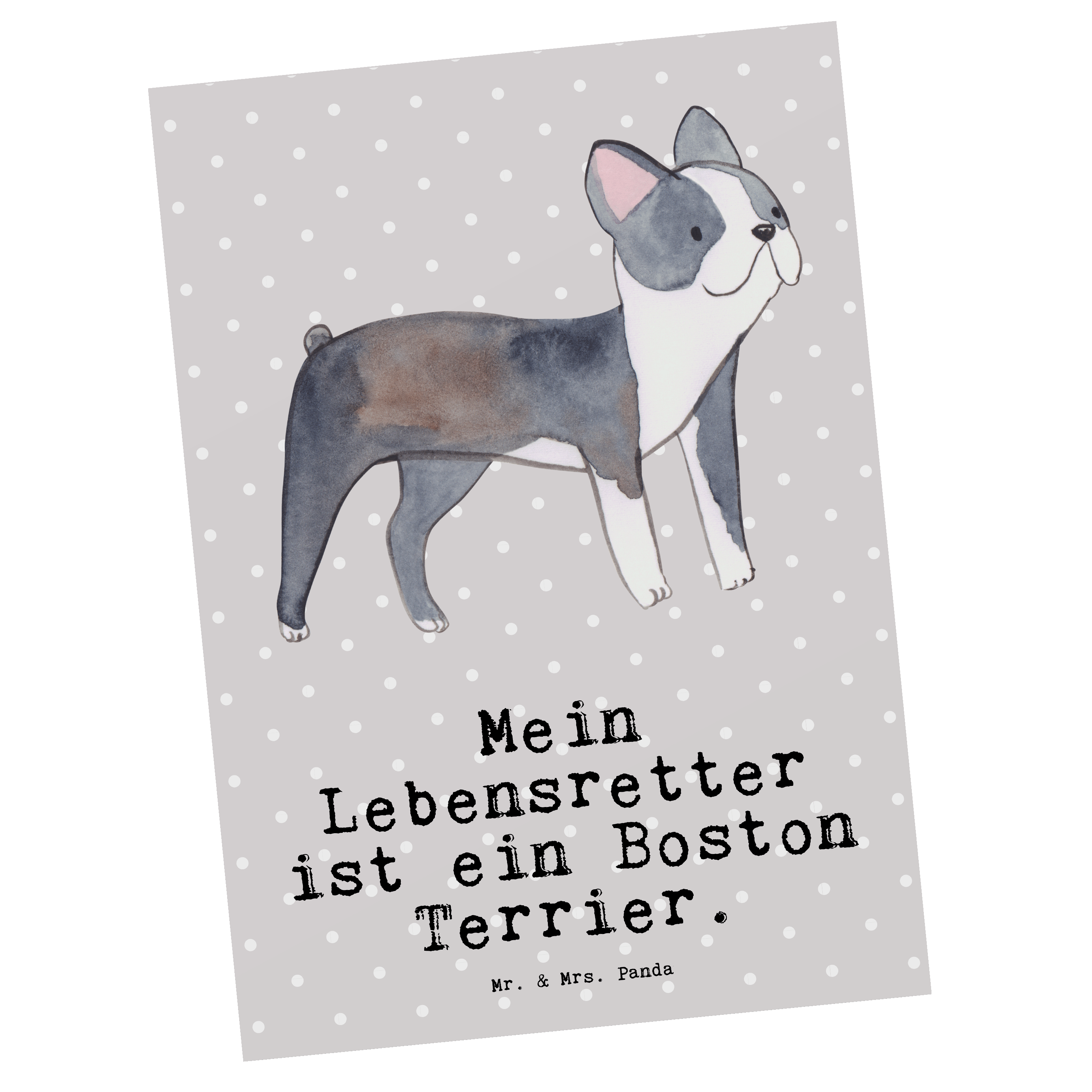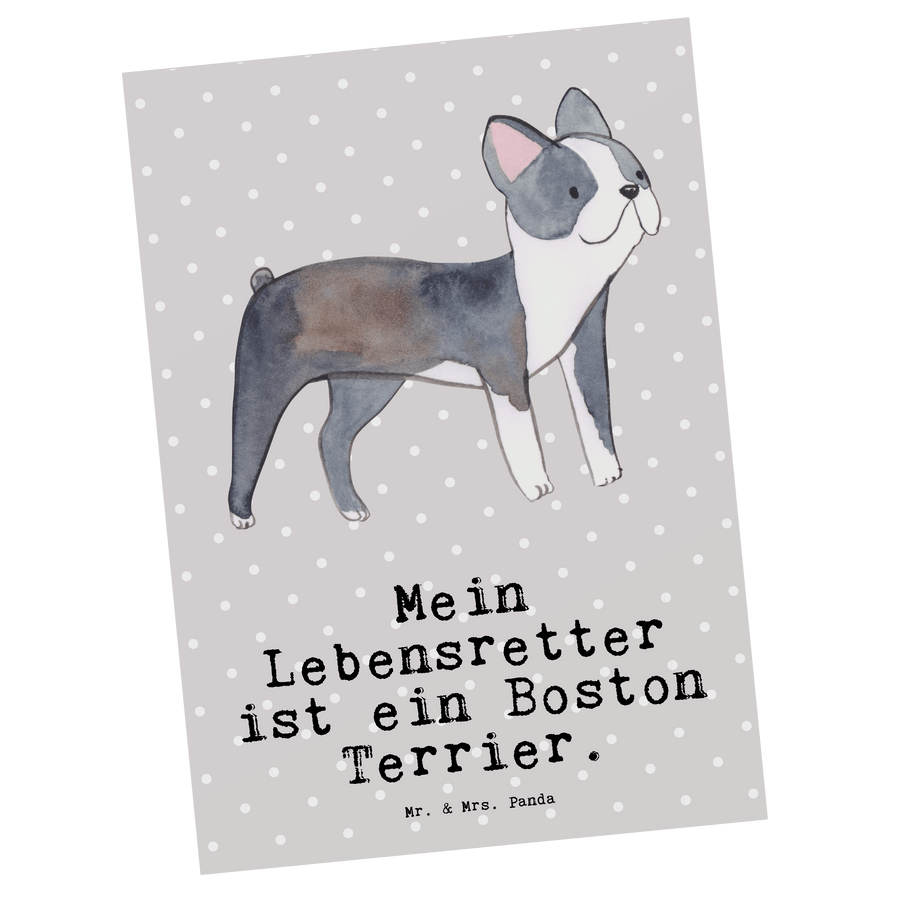 Postkarte Boston Terrier Lebensretter - mit Spruch - Grau Pastell