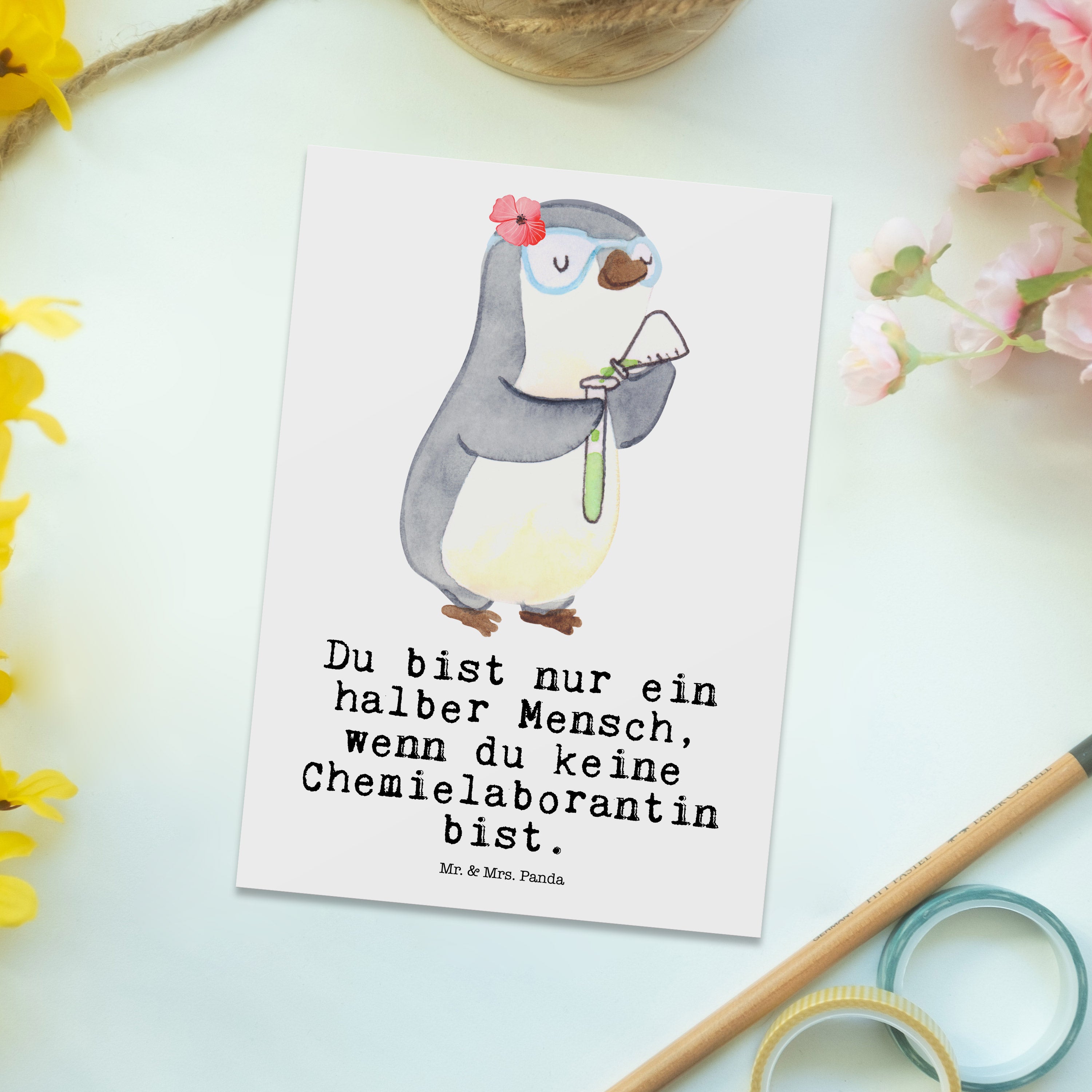 Postkarte Chemielaborantin mit Herz - Weiß