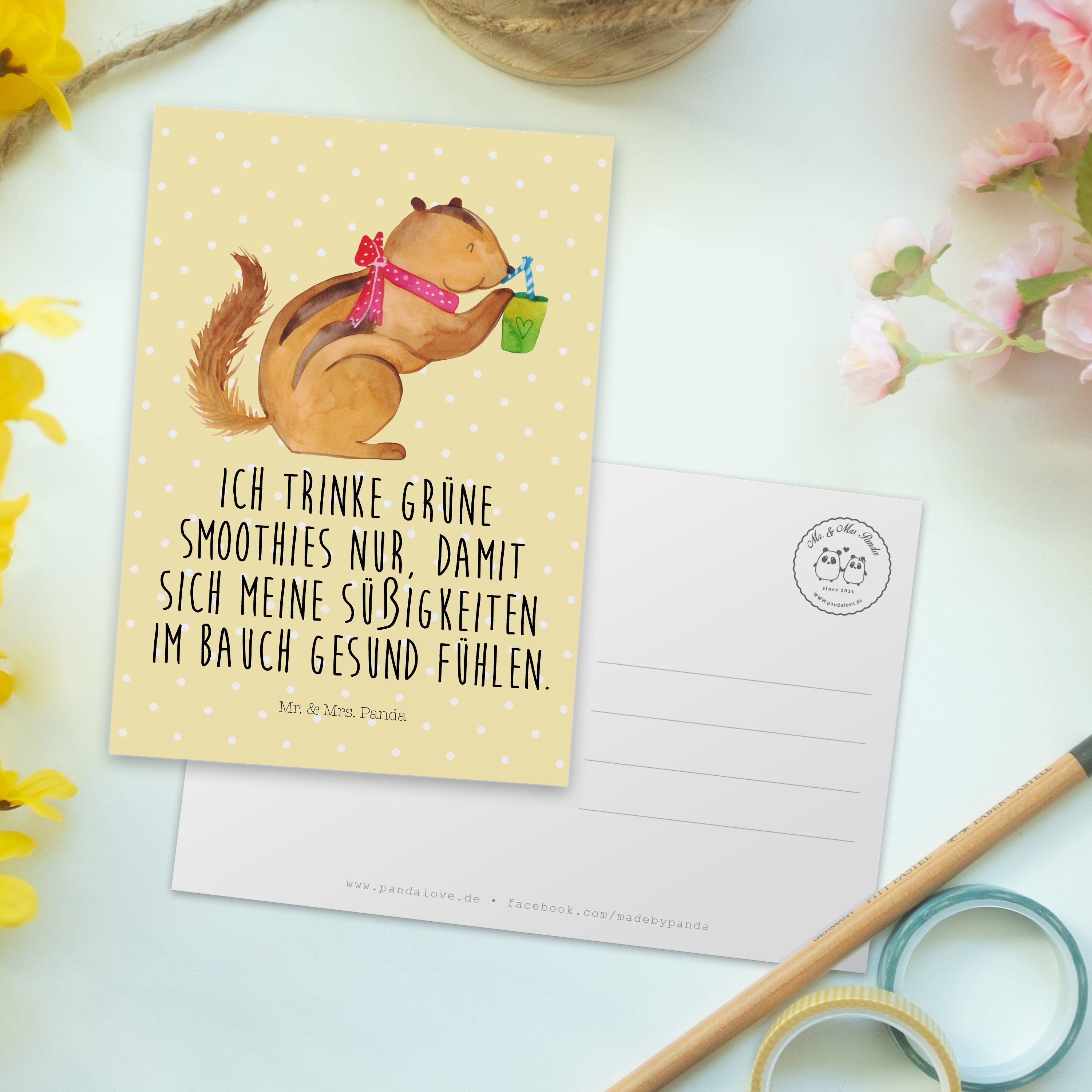 Postkarte Eichhörnchen Smoothie - mit Spruch - Gelb Pastell