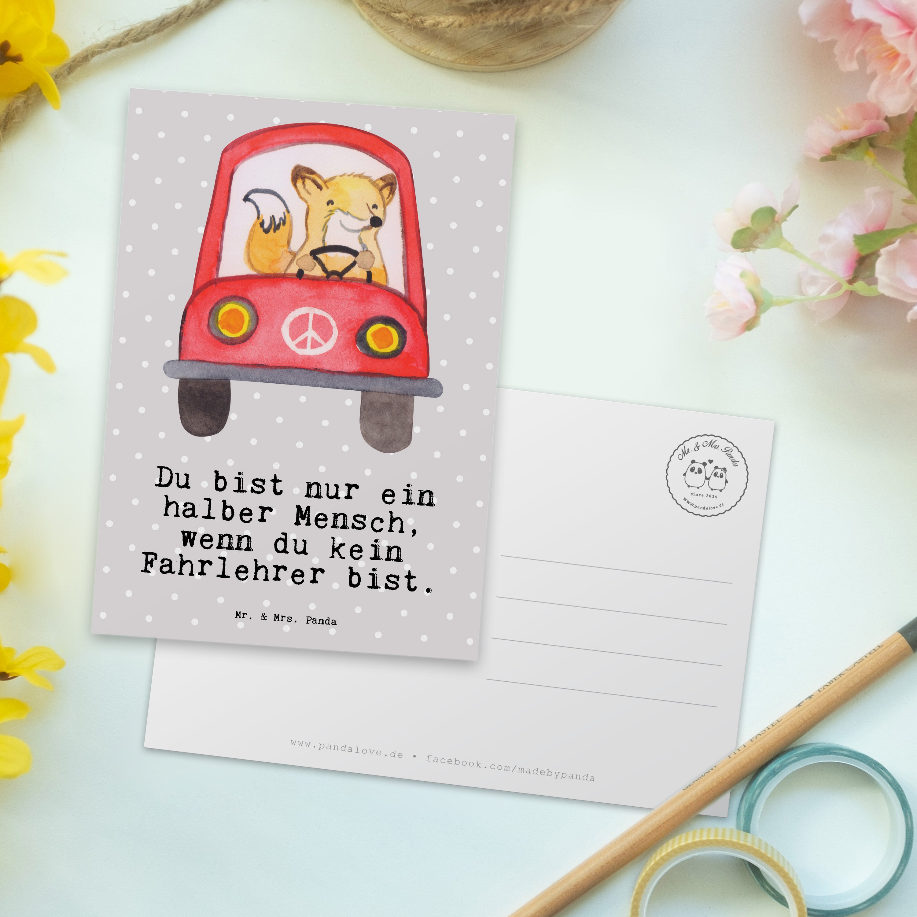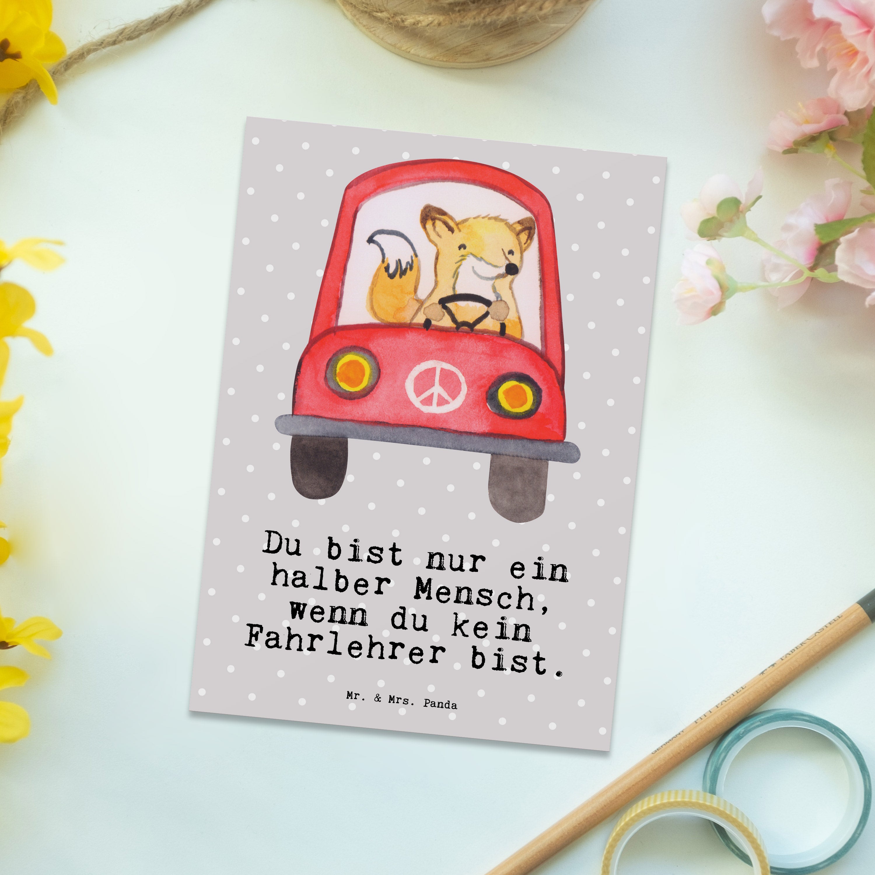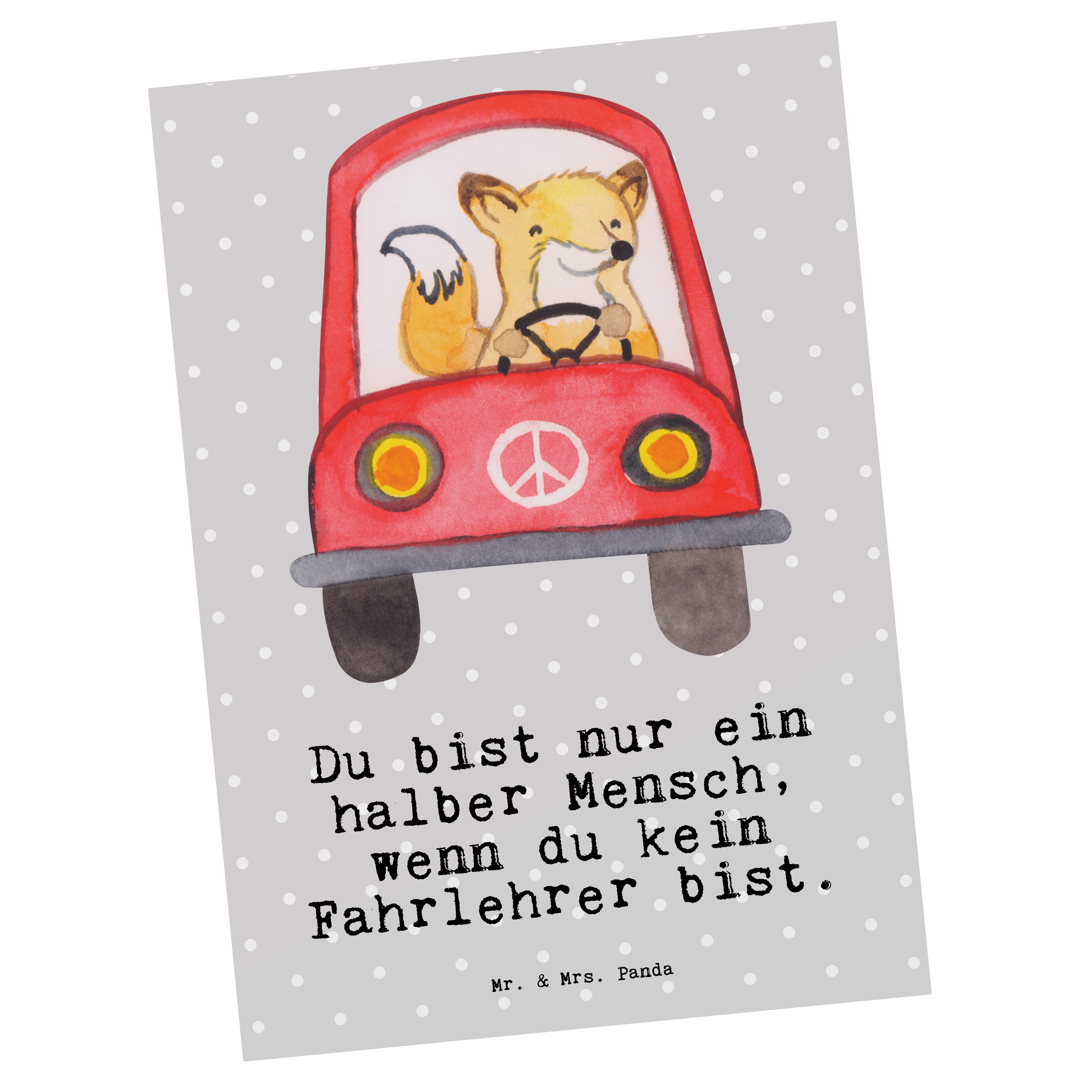 Postkarte Fahrlehrer mit Herz - Grau Pastell