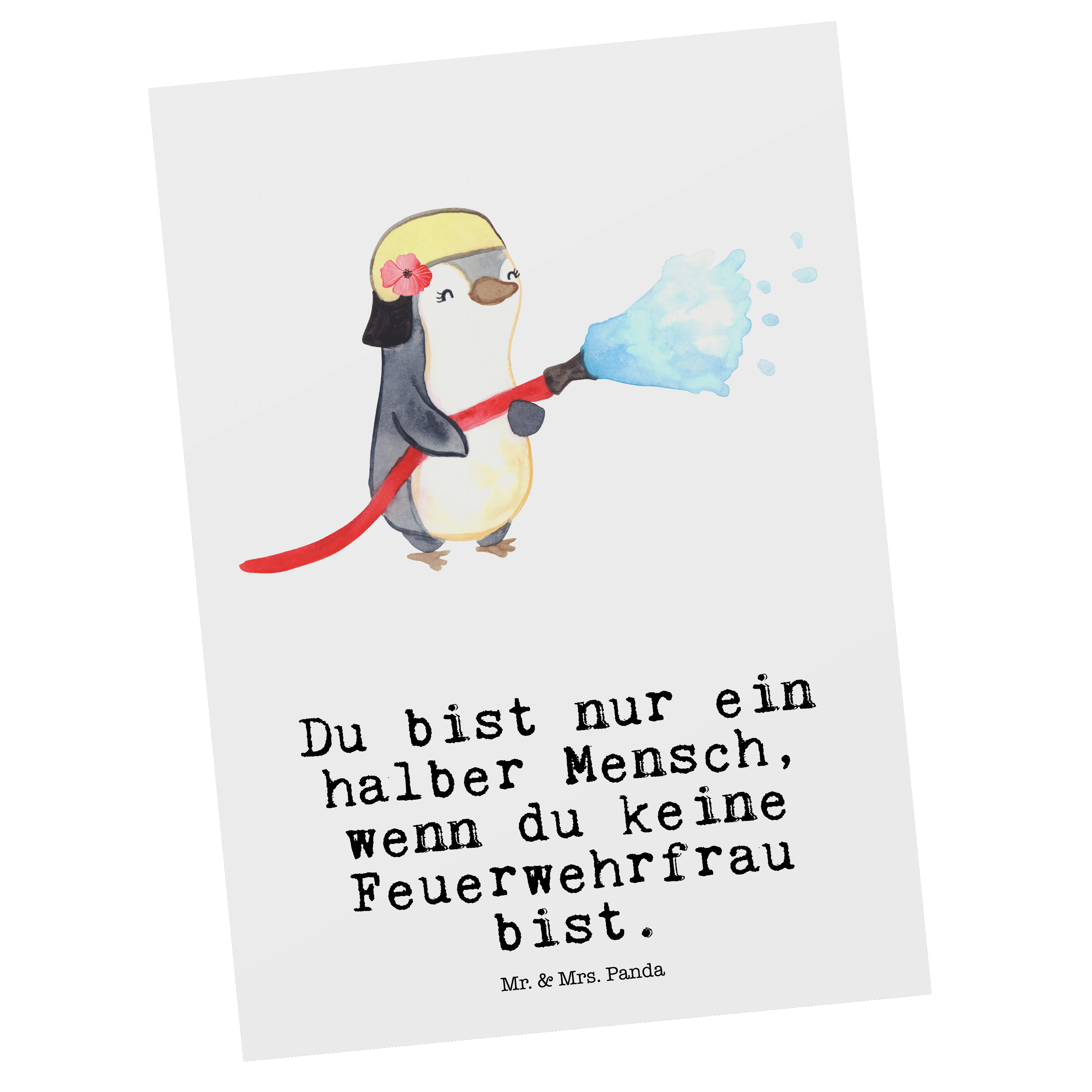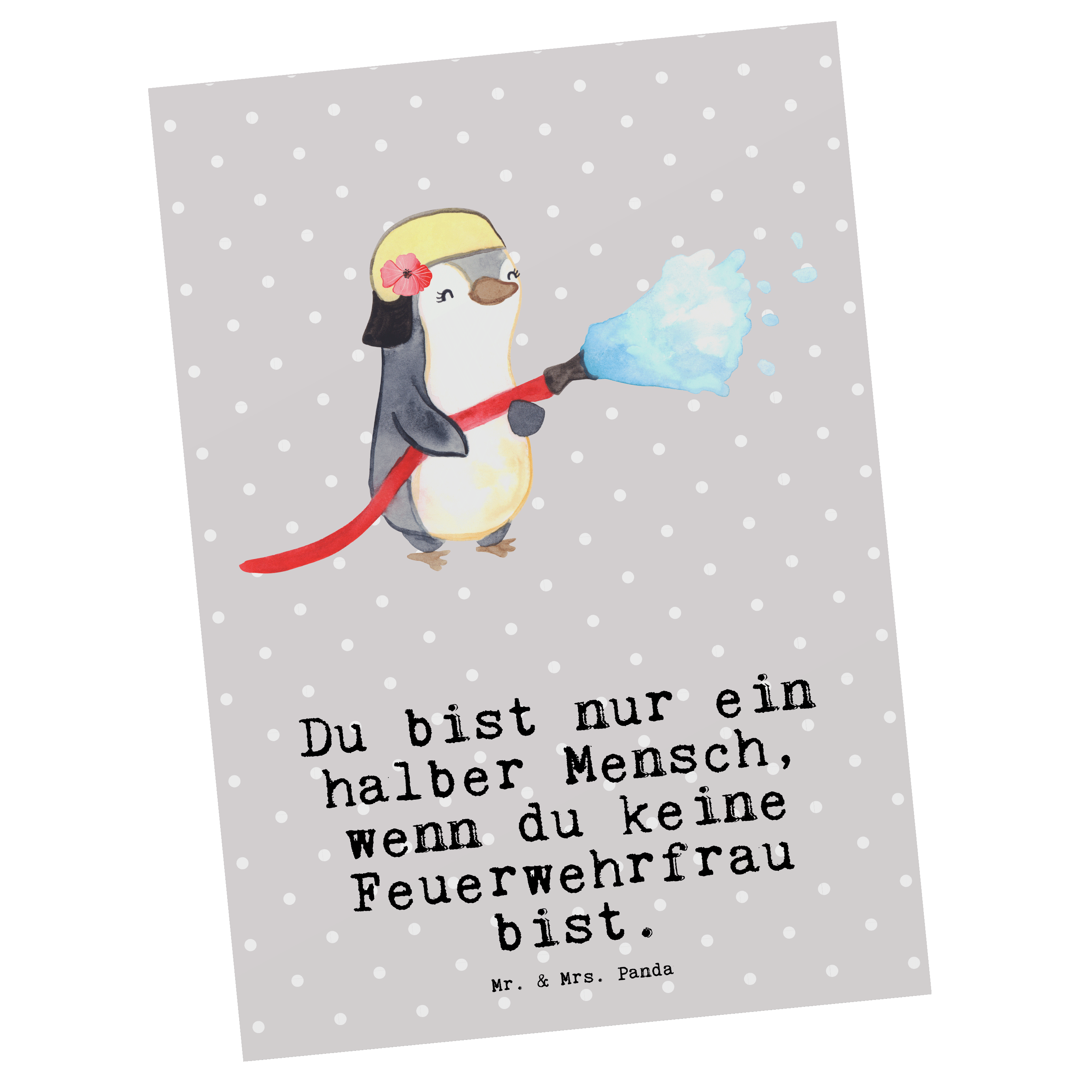 Postkarte Feuerwehrfrau mit Herz - Grau Pastell