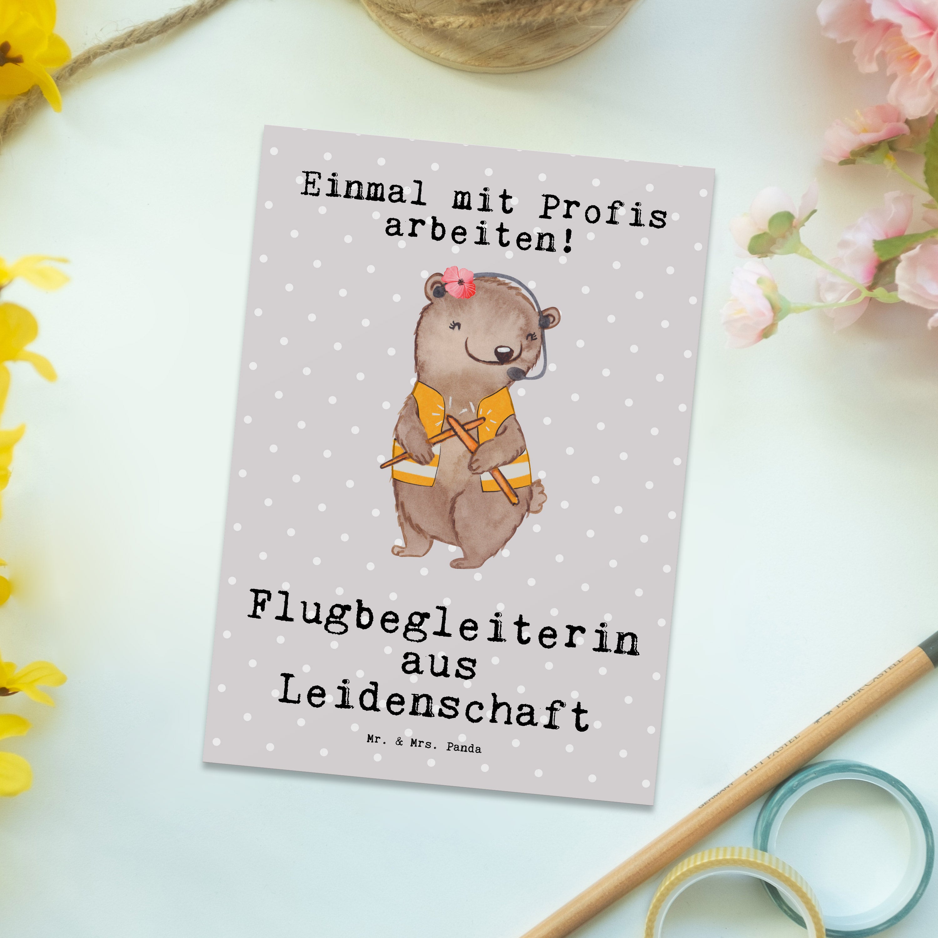 Postkarte Flugbegleiterin aus Leidenschaft - Grau Pastell