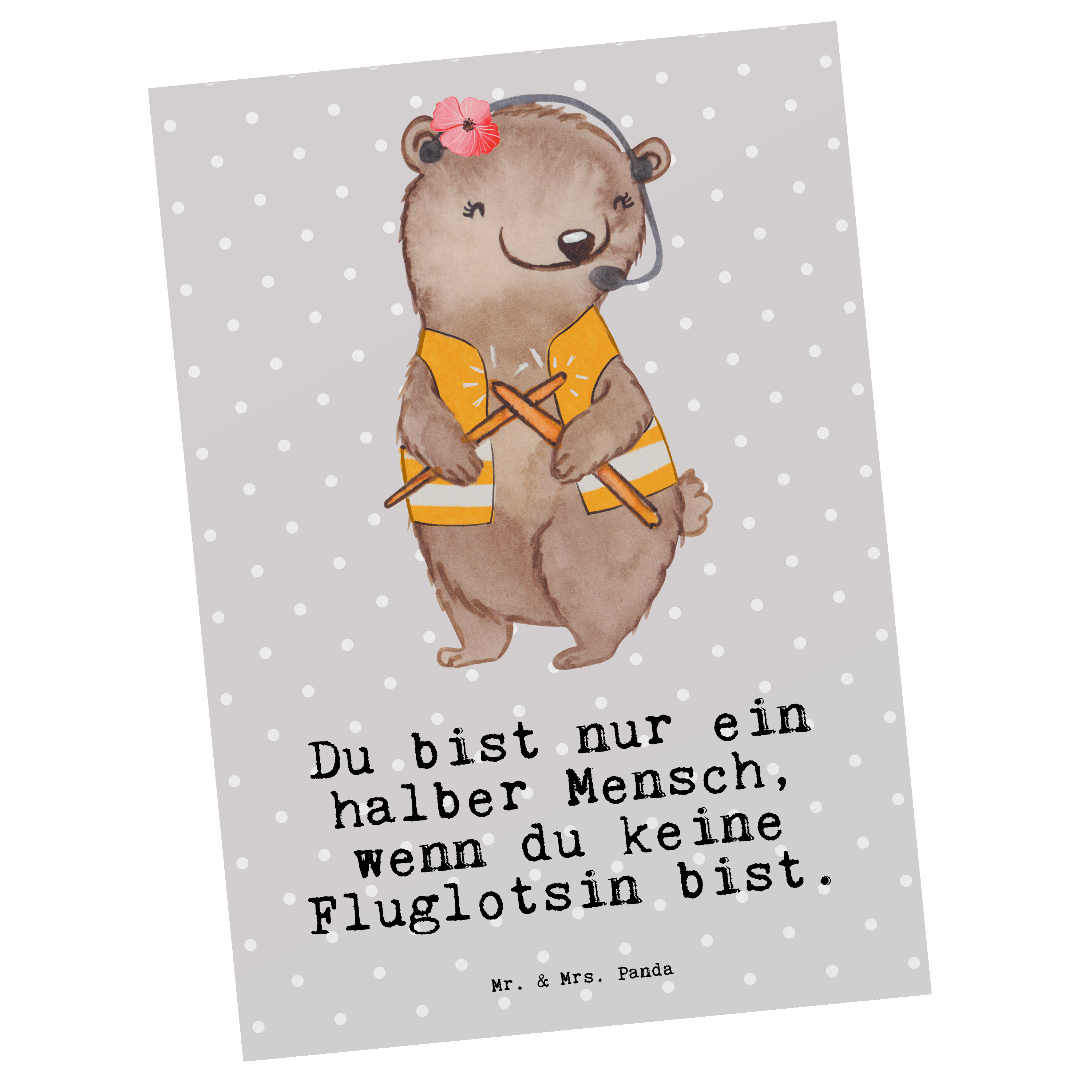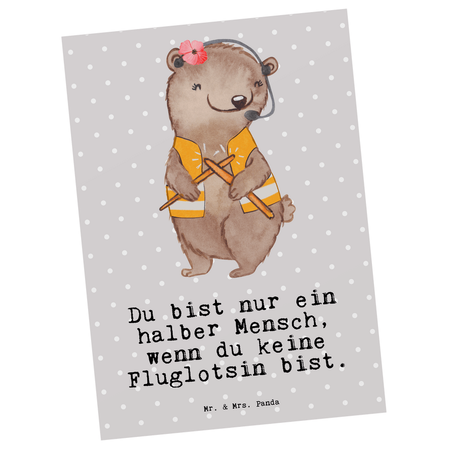 Postkarte Fluglotsin mit Herz - Grau Pastell