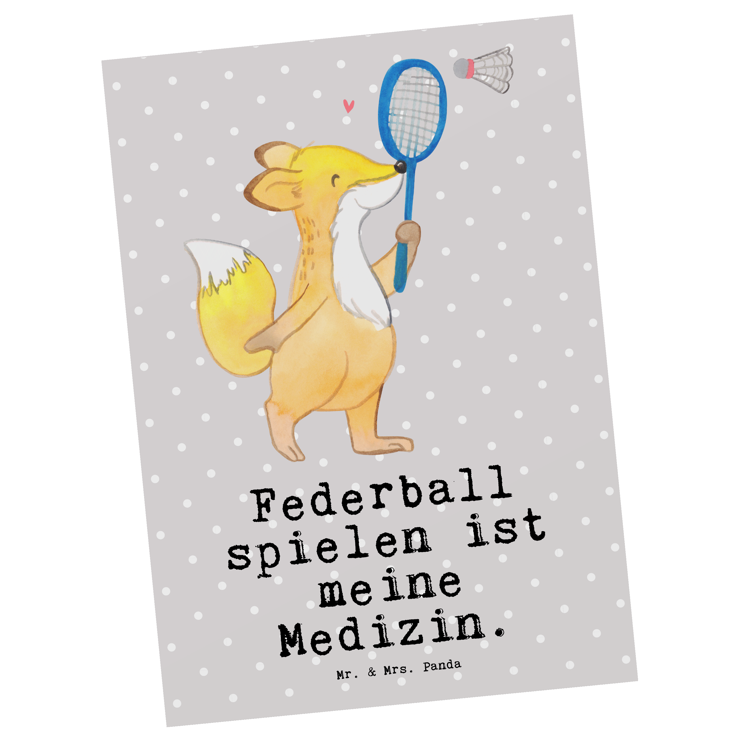 Postkarte Fuchs Federball spielen Medizin - Grau Pastell