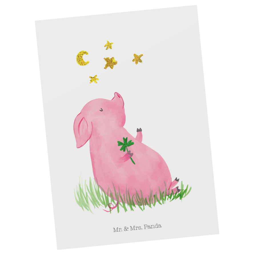 Postkarte Glücksschwein - ohne Spruch - Weiß