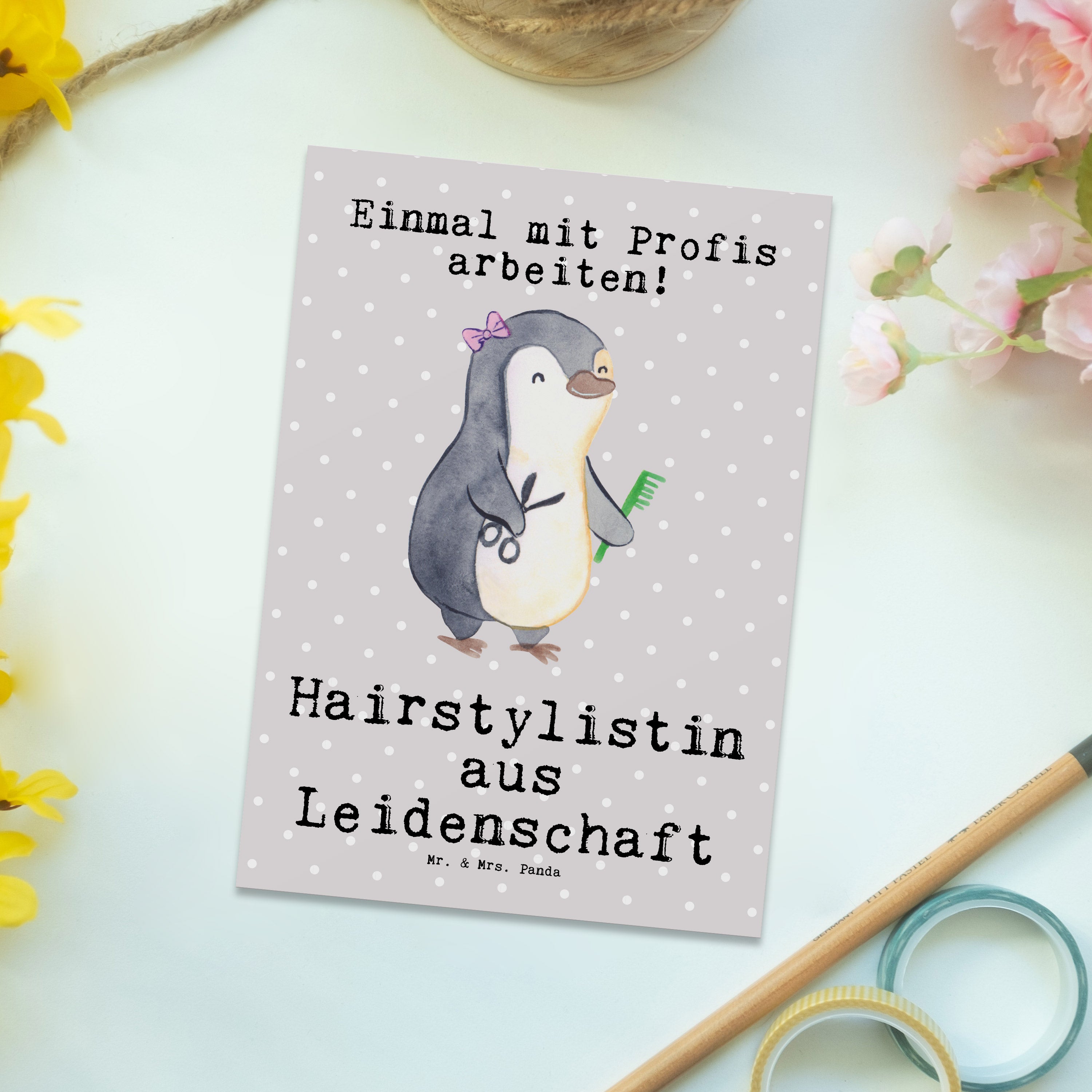 Postkarte Hairstylistin aus Leidenschaft - Grau Pastell