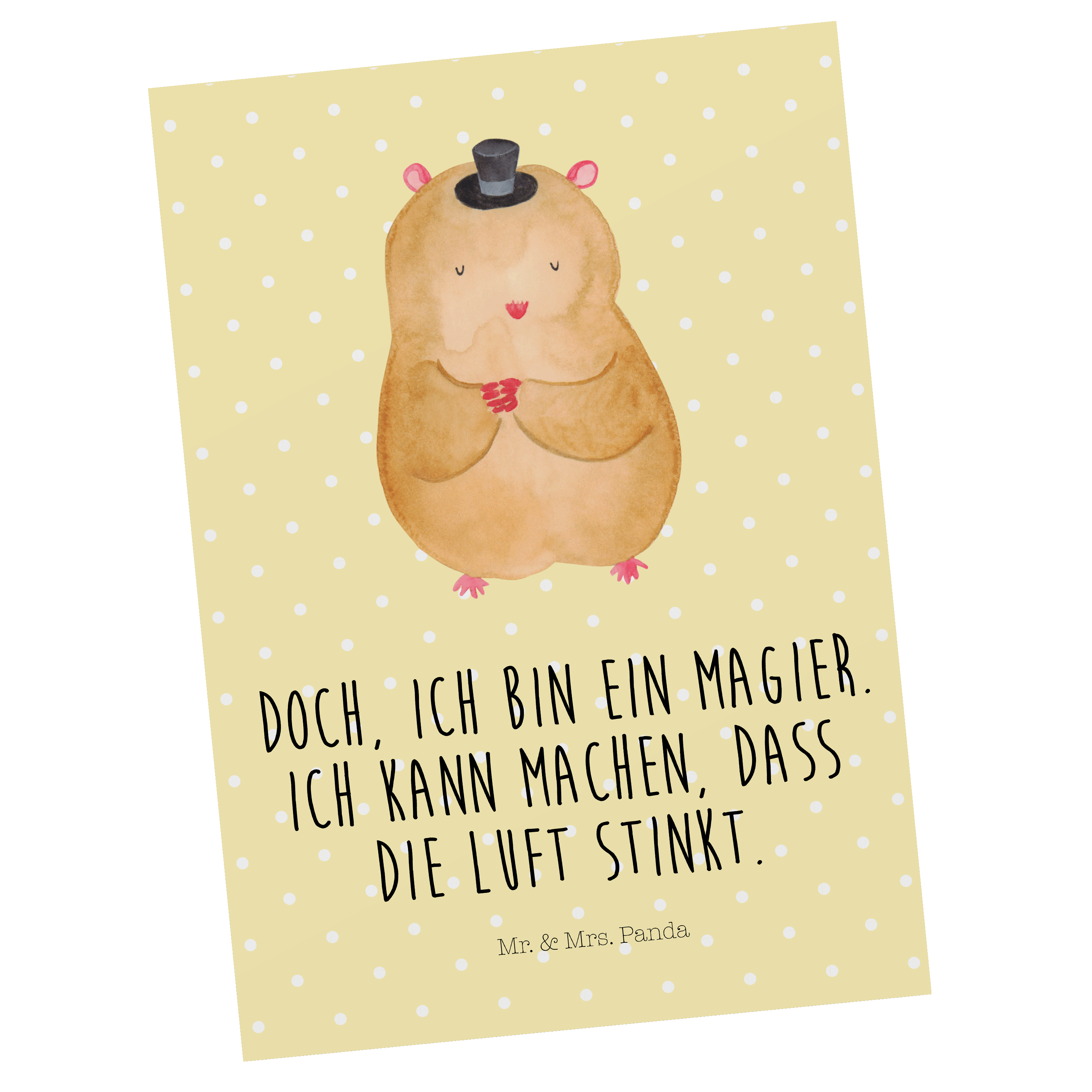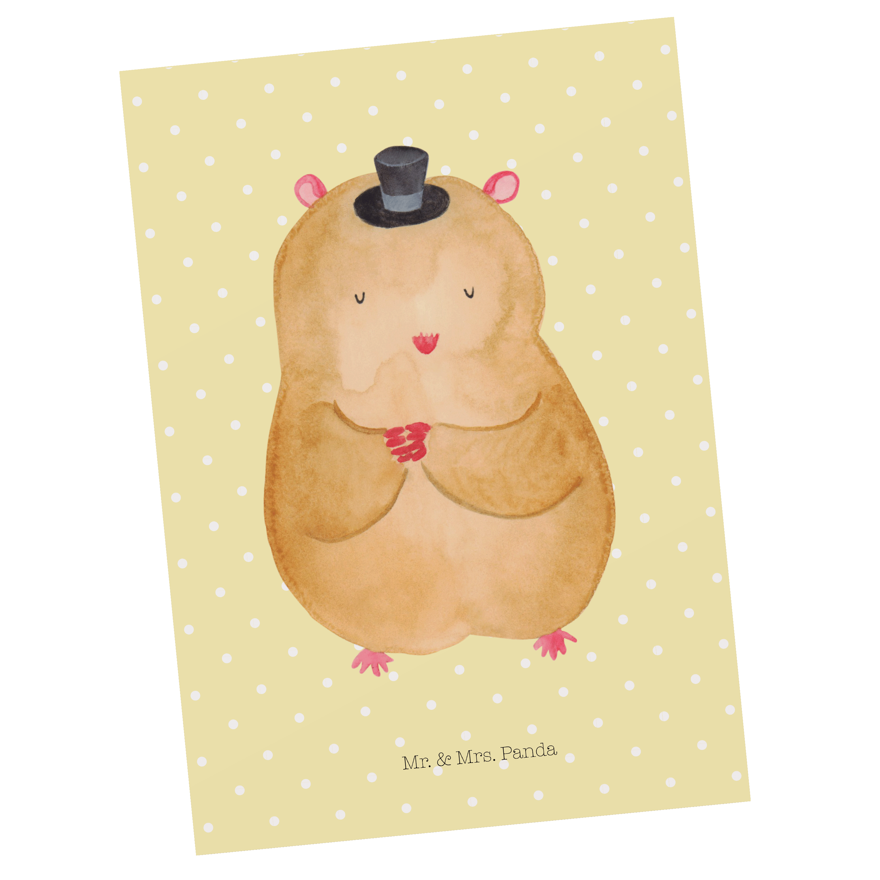 Postkarte Hamster mit Hut - mit Spruch - Gelb Pastell