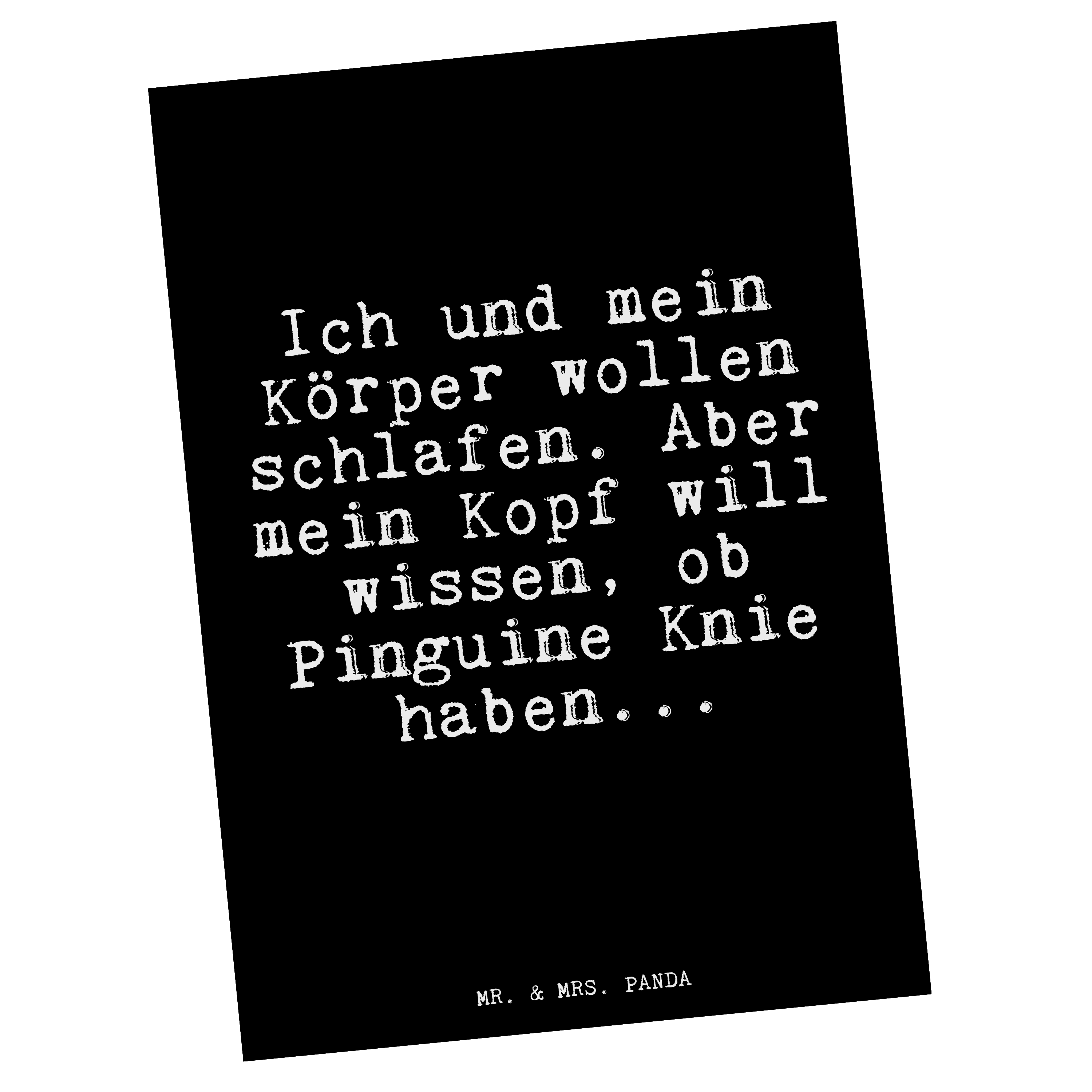 Postkarte Fun Talk Ich und mein Körper wollen schlafen. Aber mein Kopf will wissen, ob Pinguine Knie haben...