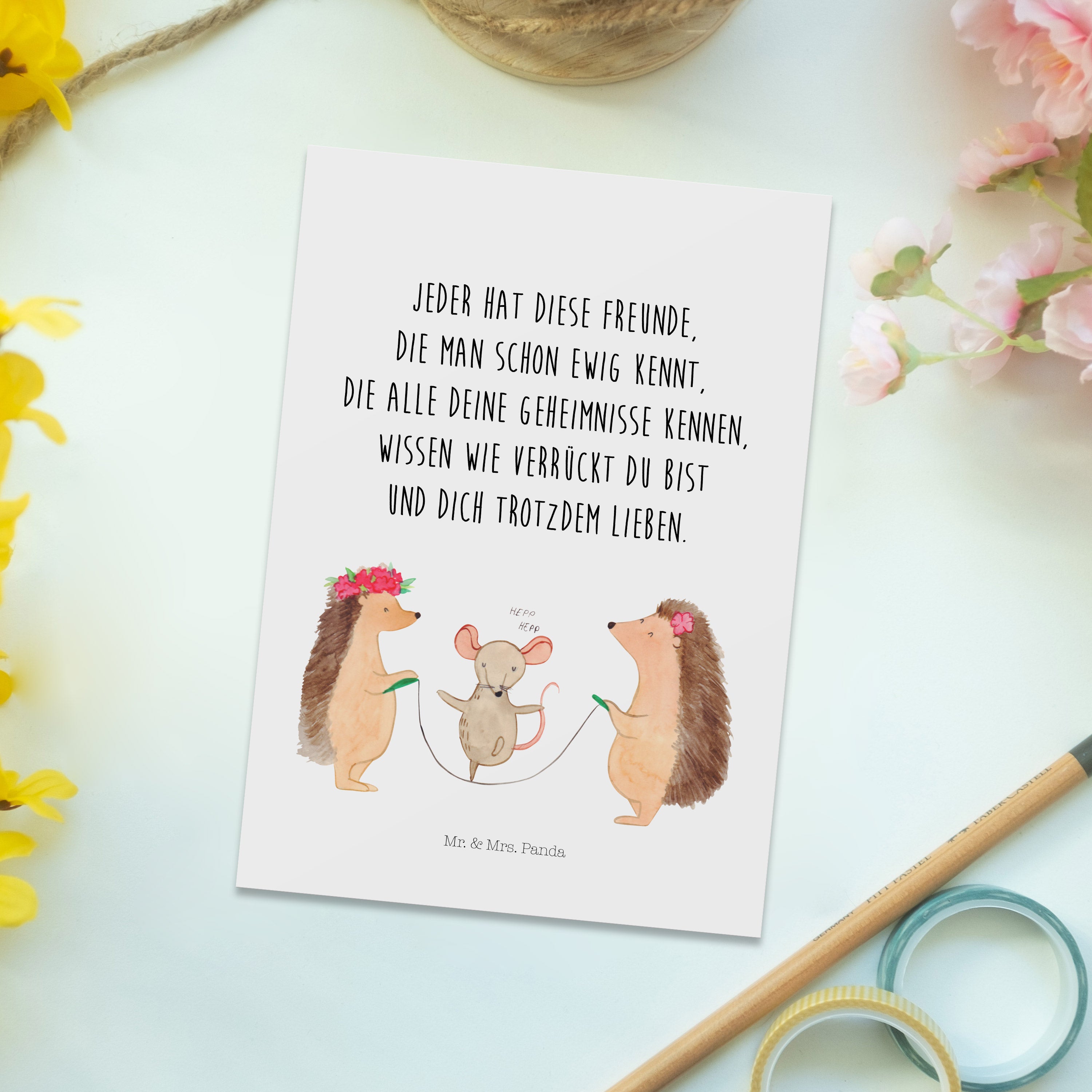 Die Mr. & Mrs. Panda Postkarten haben das Standard Postkarten Maß und sind auf der Rückseite blanko, damit du viel freien Platz für deine kreativen Texte und Zeichnungen hast. Alle Karten werden mit sehr hochwertigen Tinten gedruckt und sind 40 Jahre UV-Lichtbeständig. Sie sind perfekt geeignet zum Geburtstag, zur Hochzeit, zur Taufe oder auch zu jedem anderen Anlass. Und können deine Wände ein wenig bunter und lebensfroher machen!