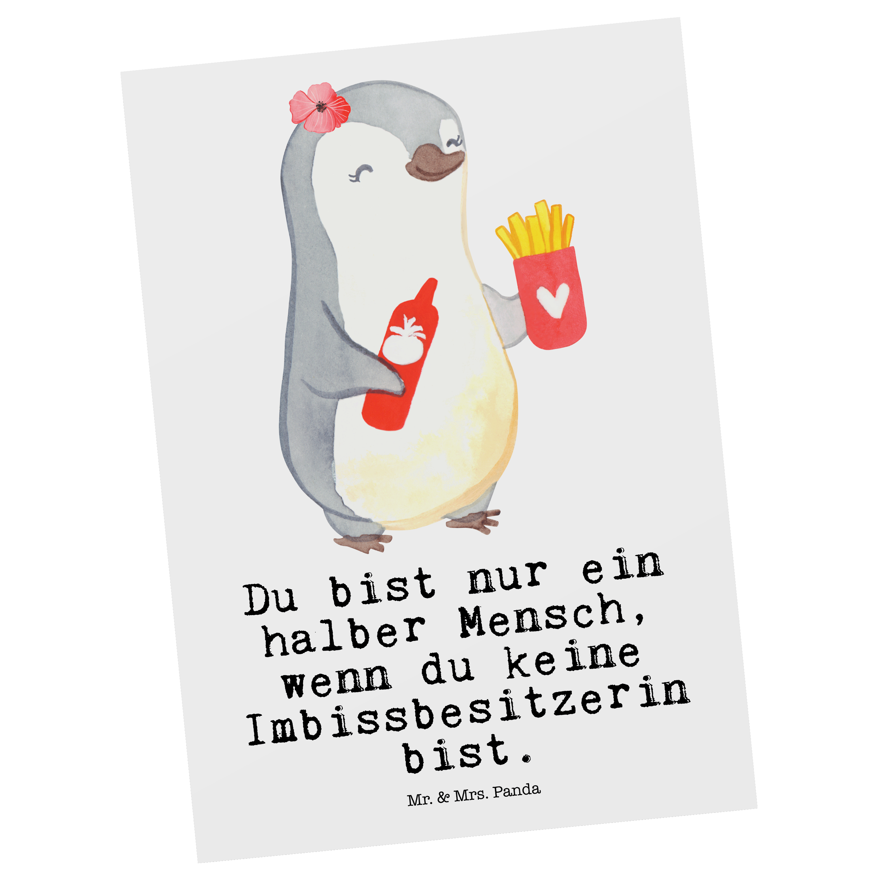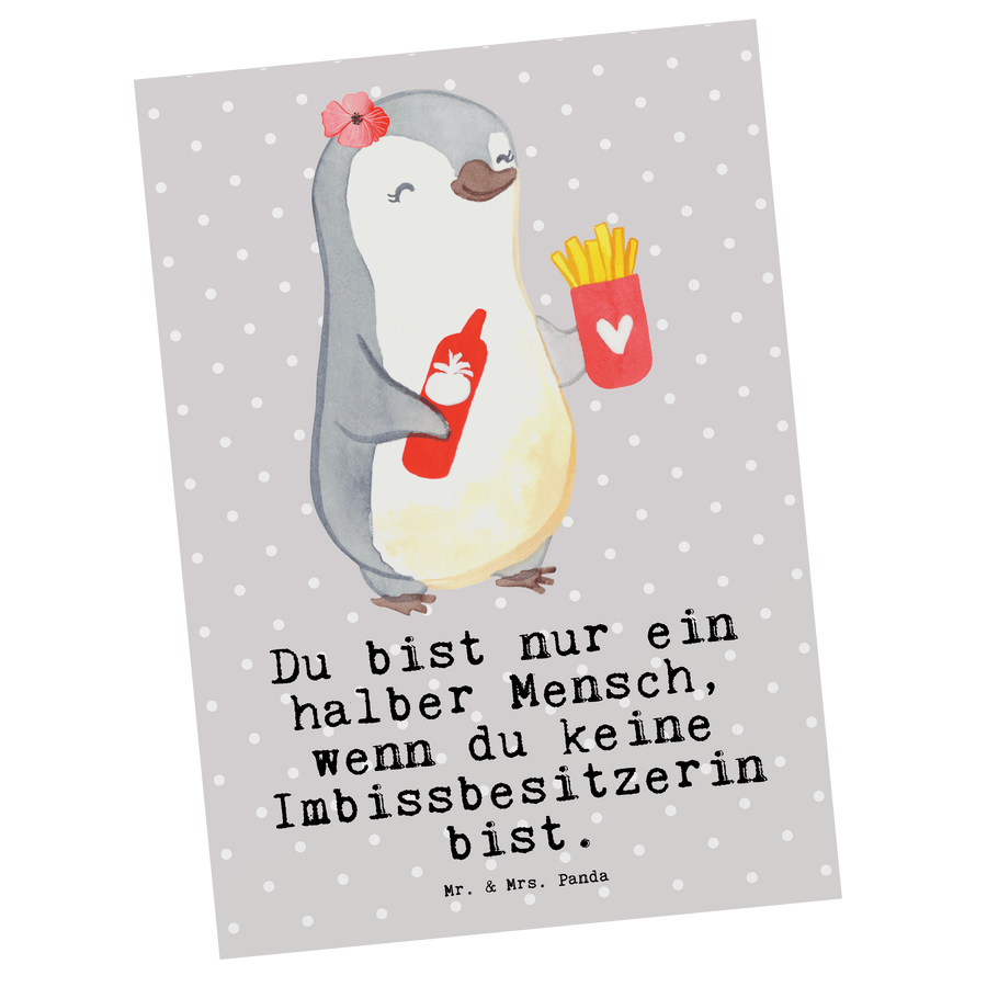 Postkarte Imbissbesitzerin mit Herz - Grau Pastell