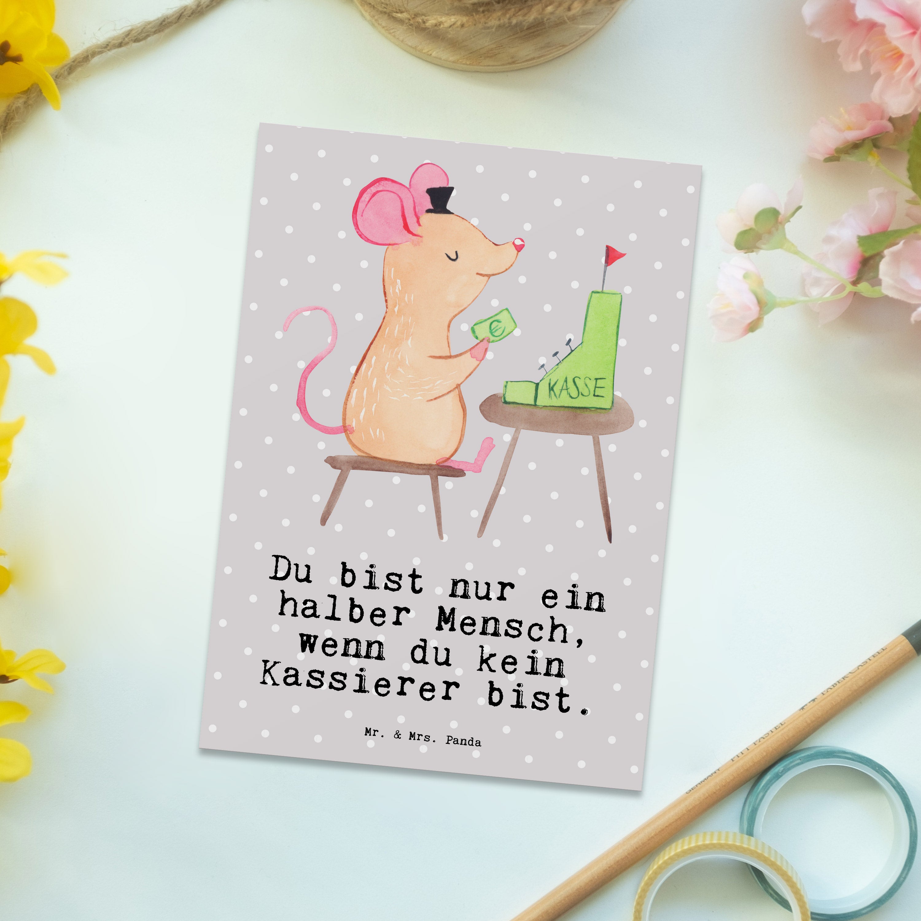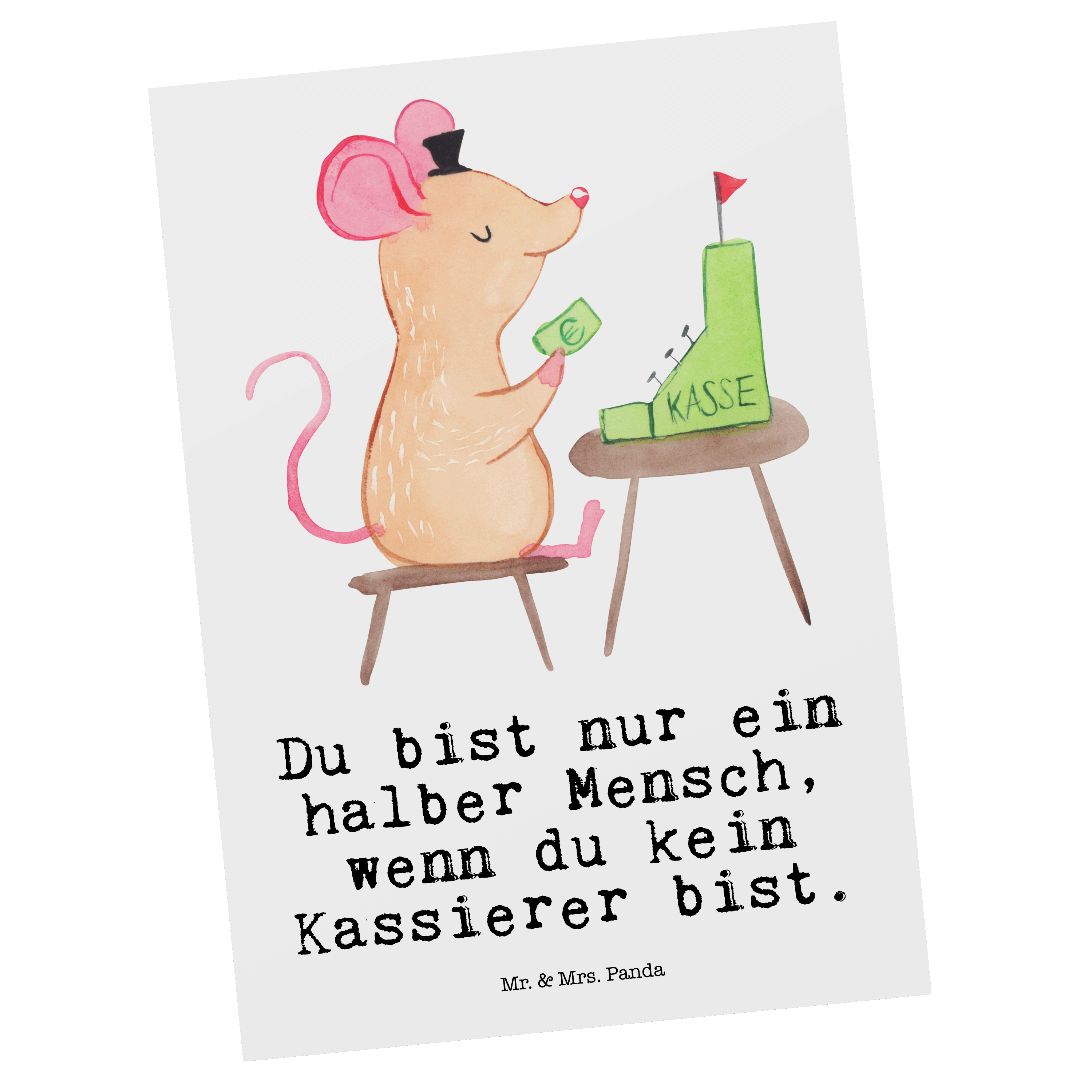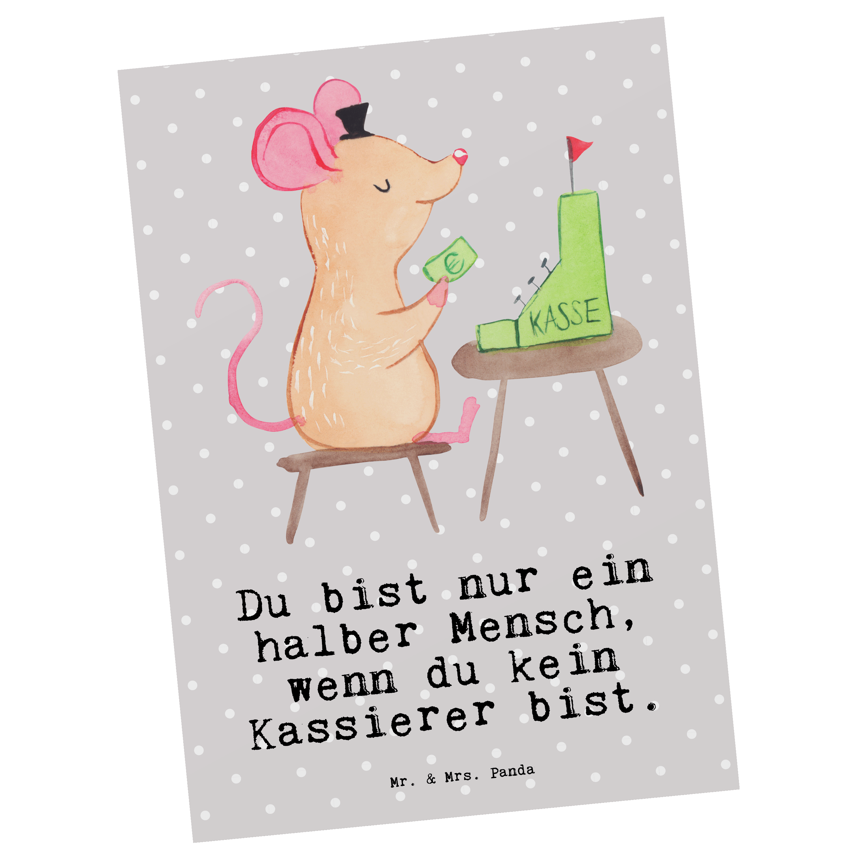 Postkarte Kassierer mit Herz - Grau Pastell