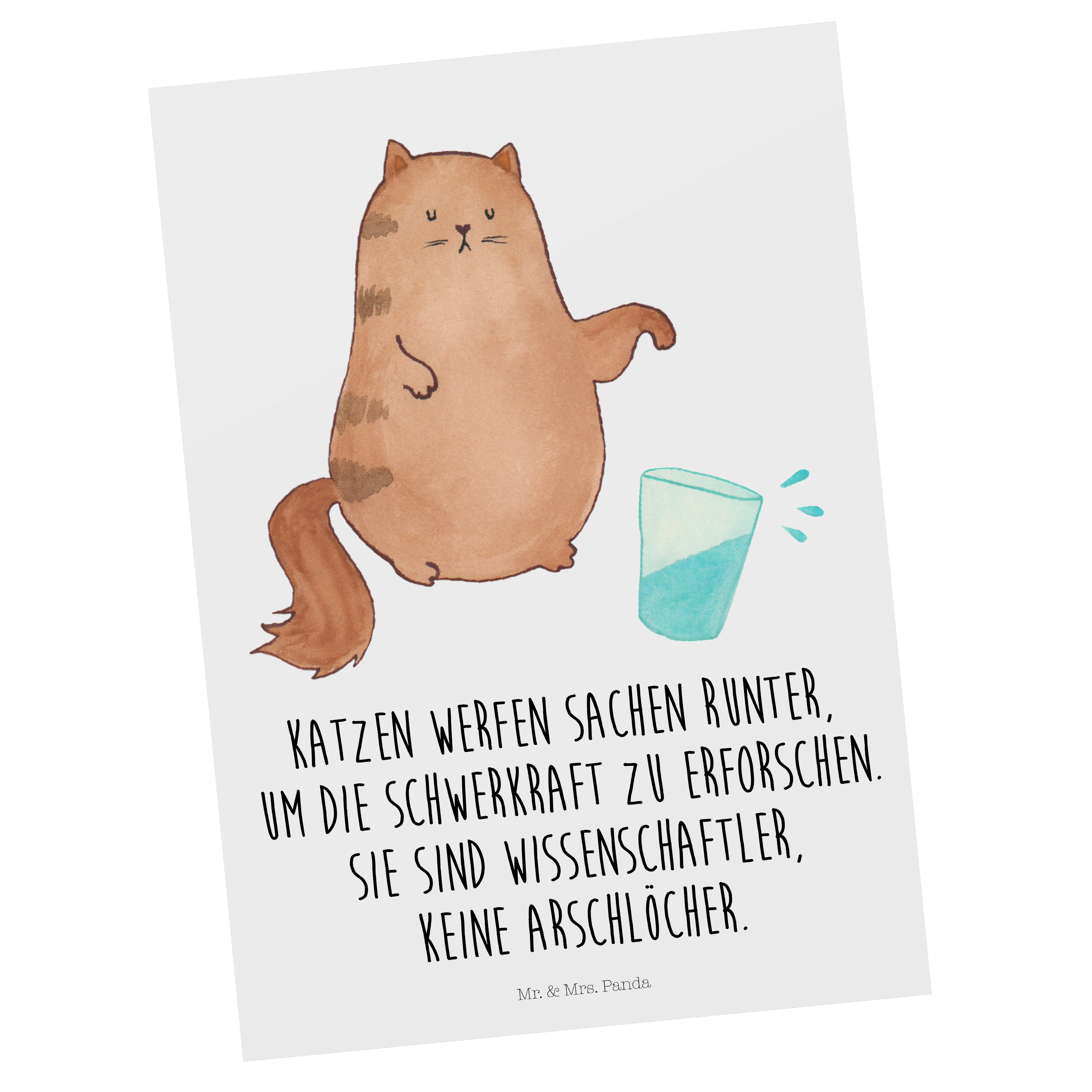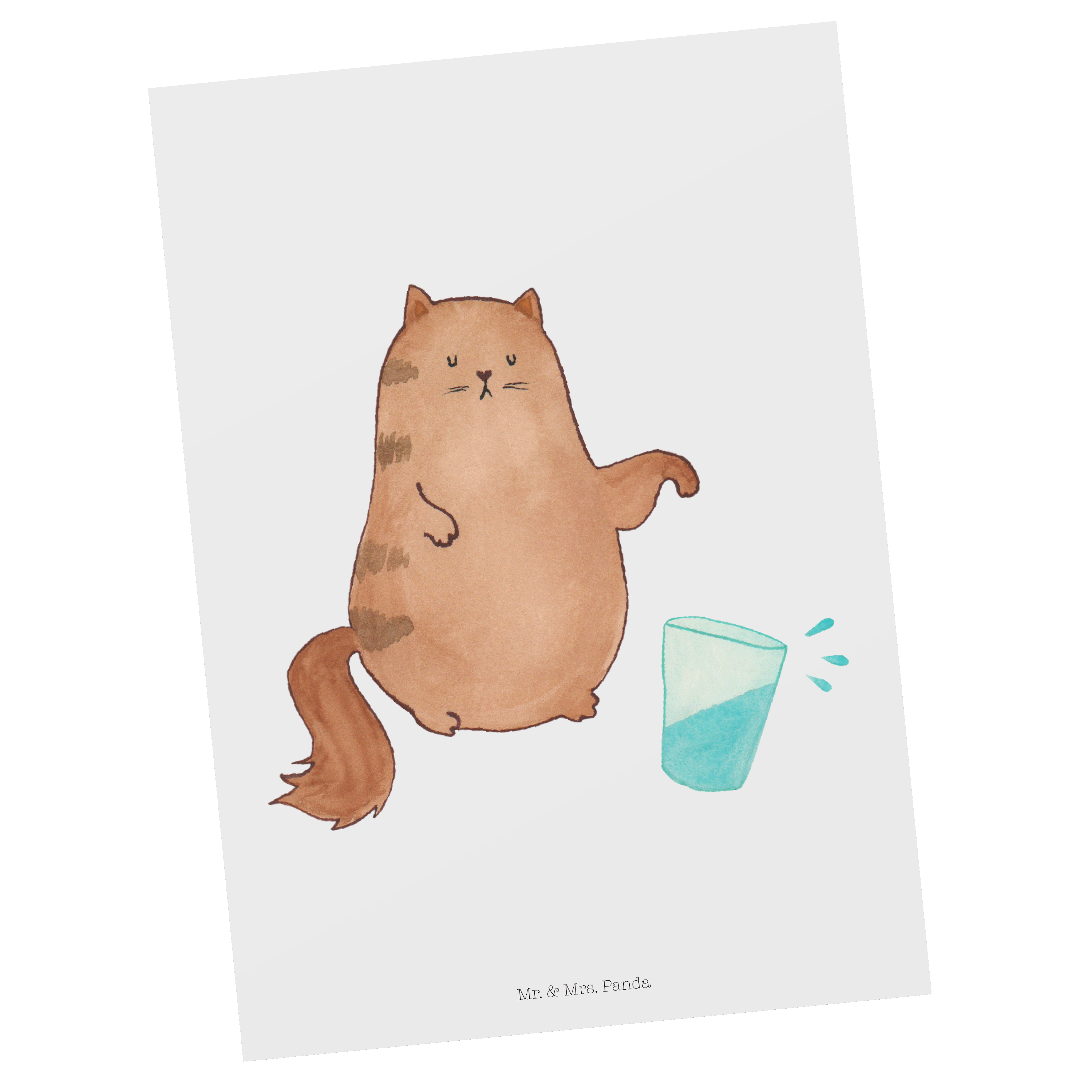 Postkarte Katze Wasserglas - mit Spruch - Weiß