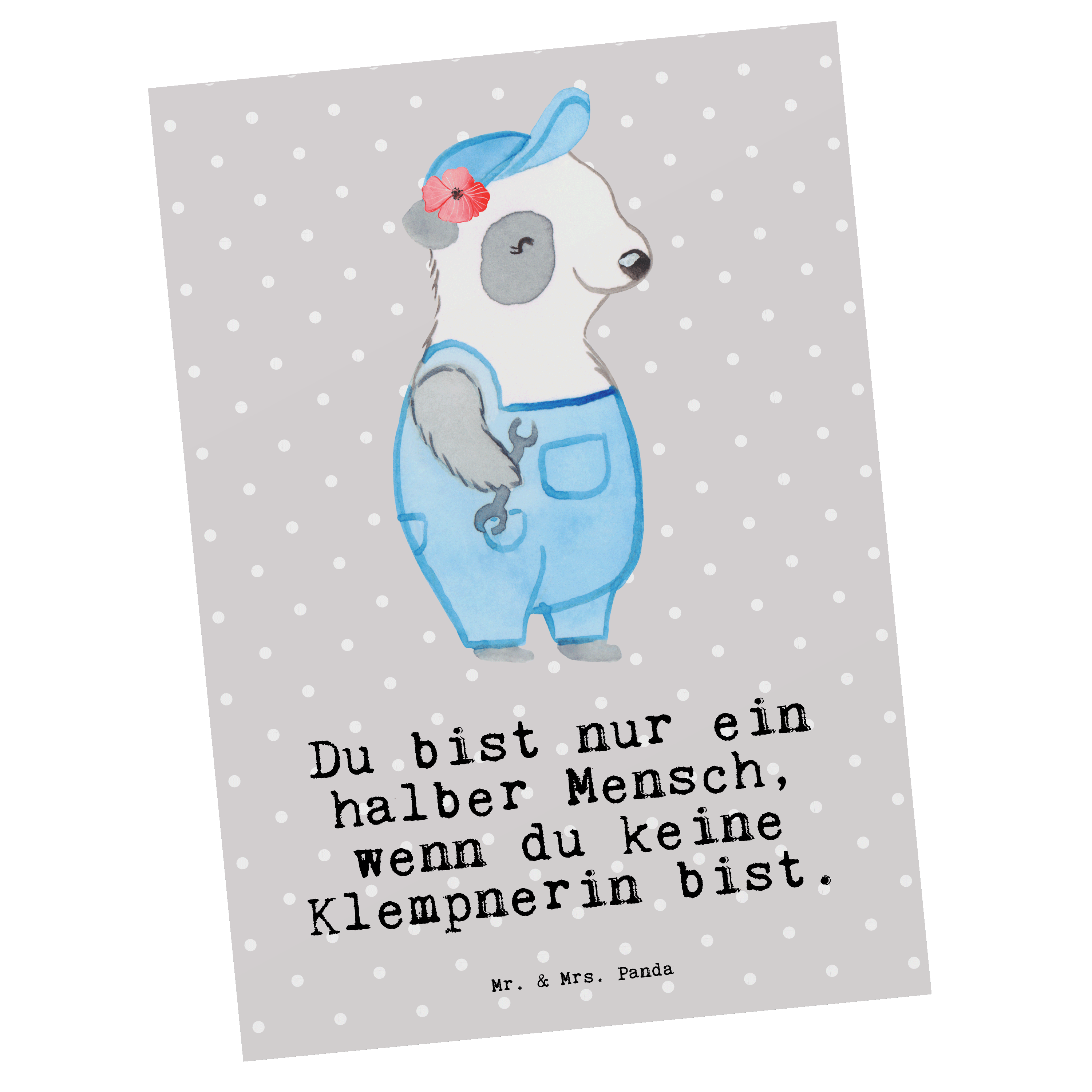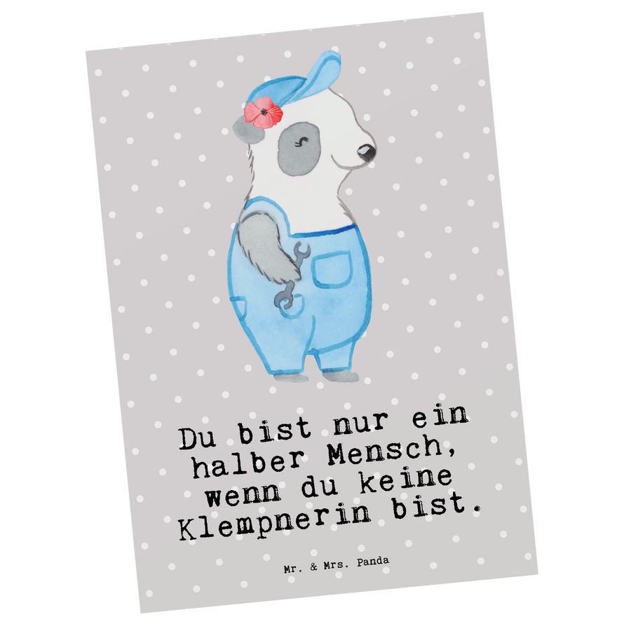 Postkarte Klempnerin mit Herz - Grau Pastell