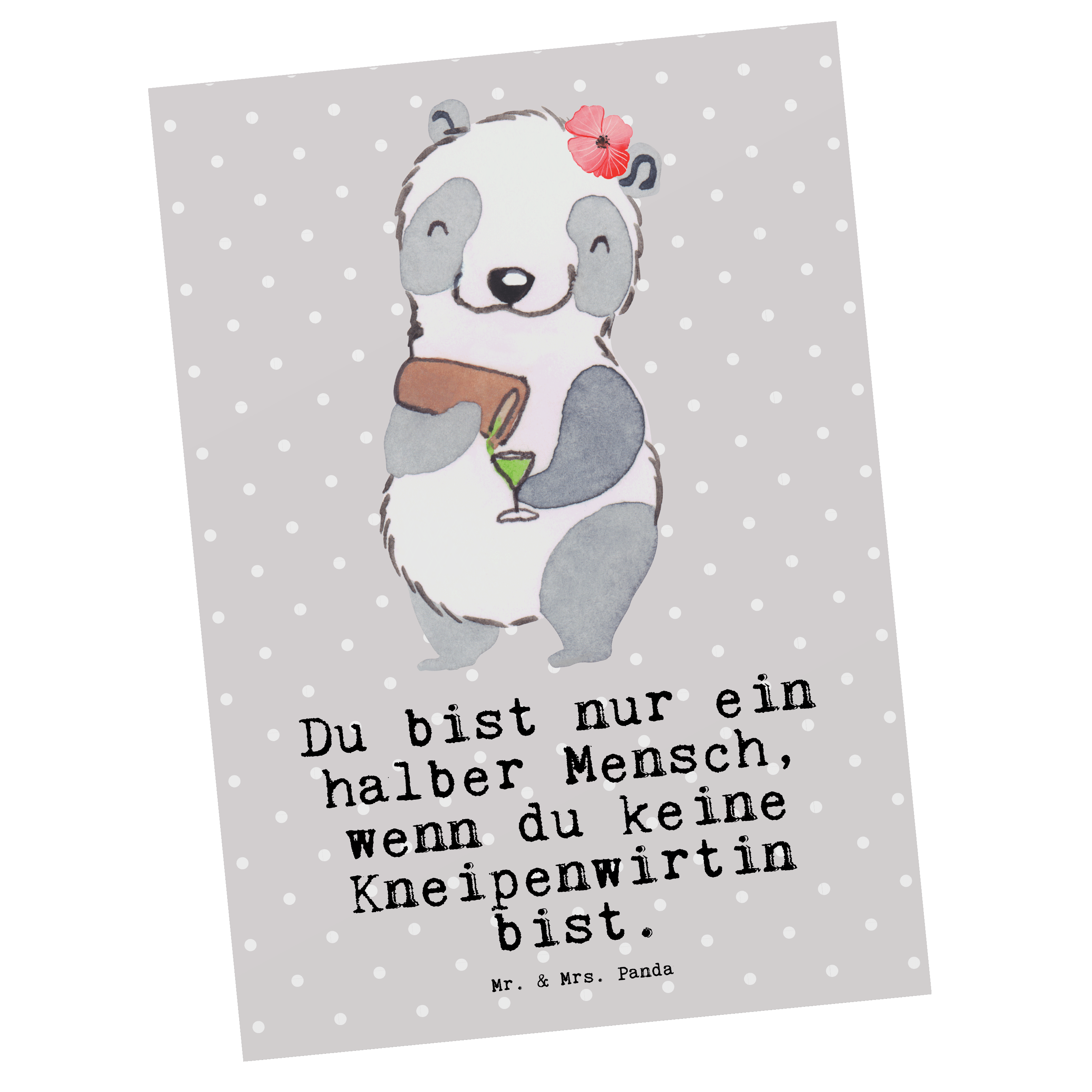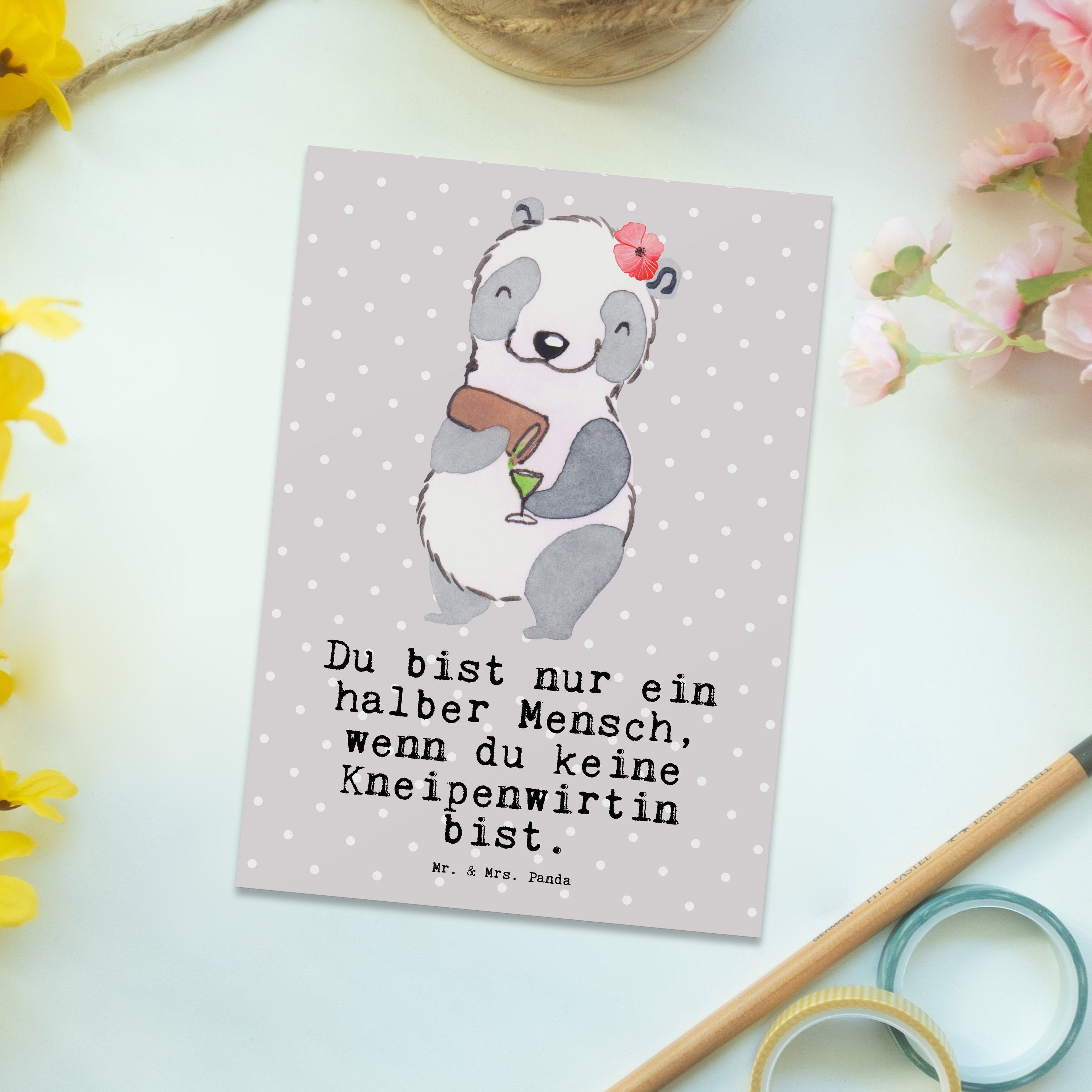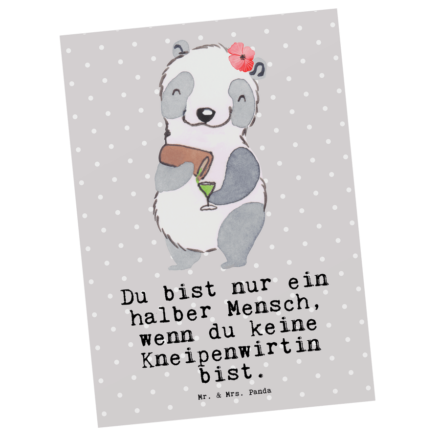 Postkarte Kneipenwirtin mit Herz - Grau Pastell