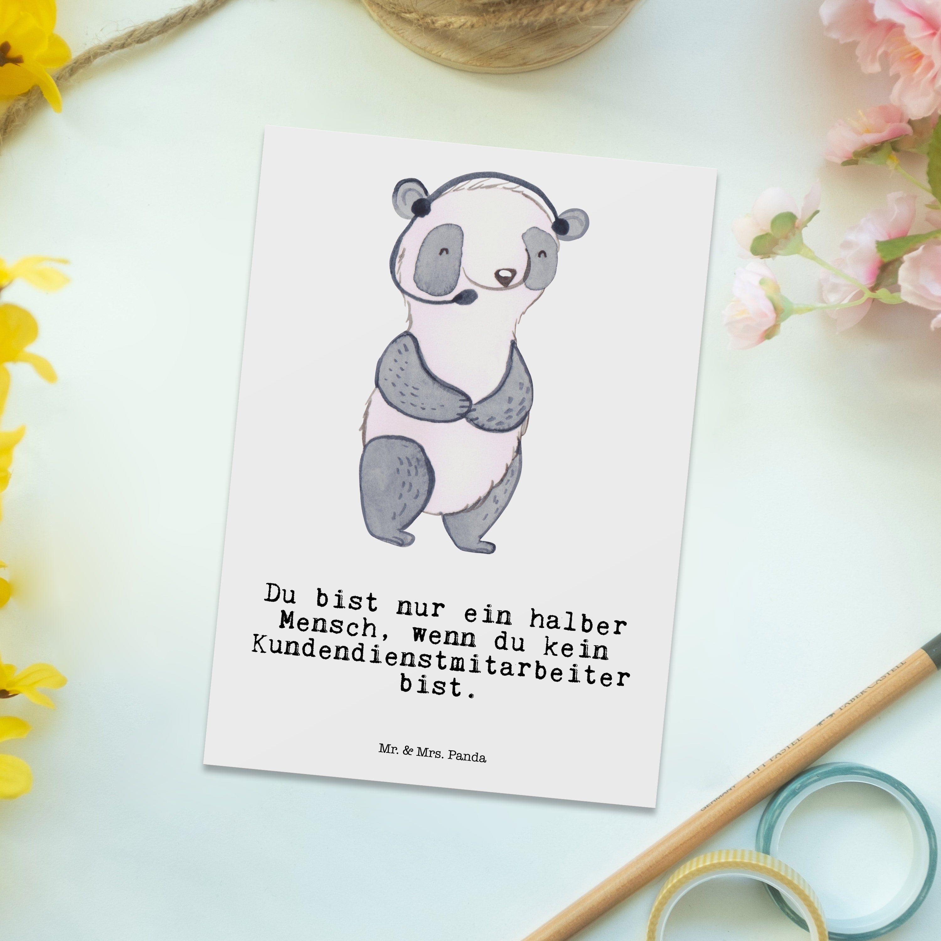 Unser Kundendienstmitarbeiter Panda hat auf seinem Schreibtisch eine absolute Lieblingstasse. Auf dieser steht "Einmal mit Profis arbeiten..Kundendienstmitarbeiter