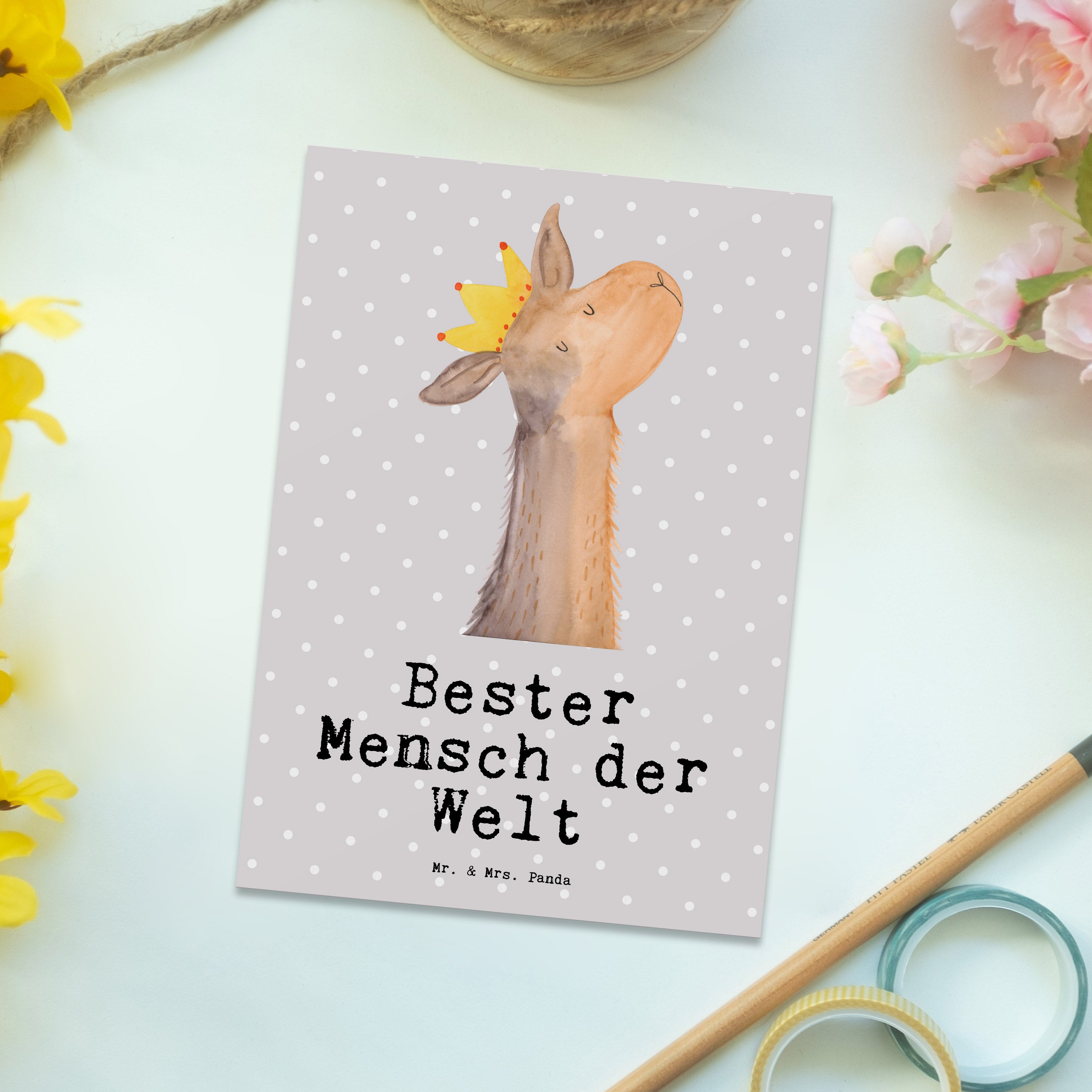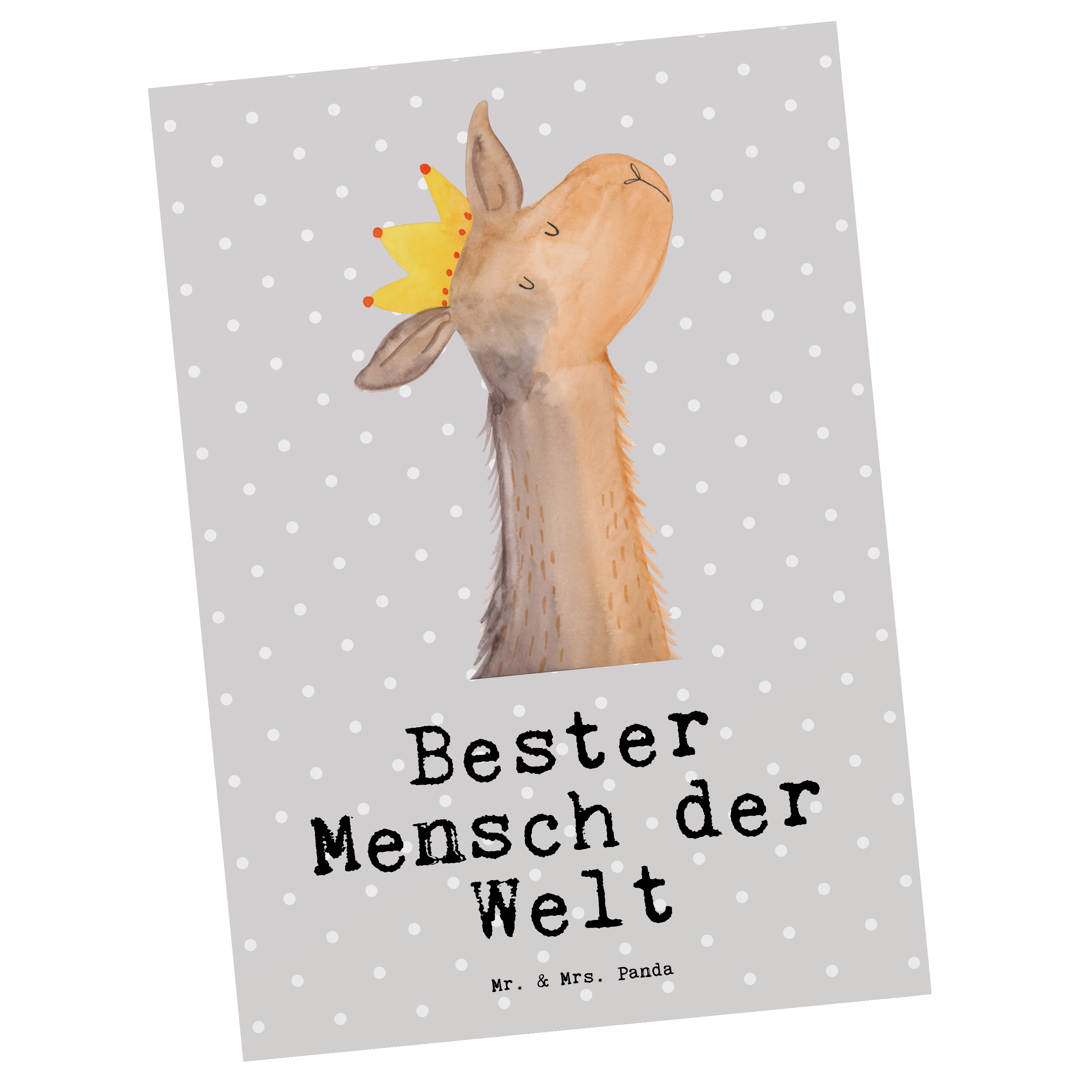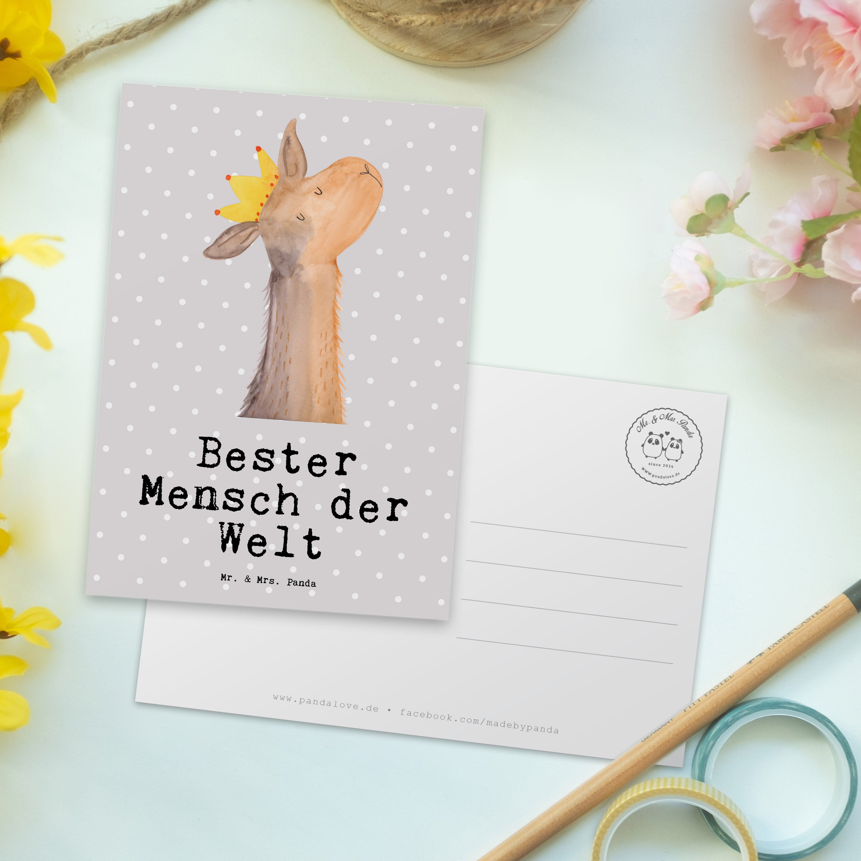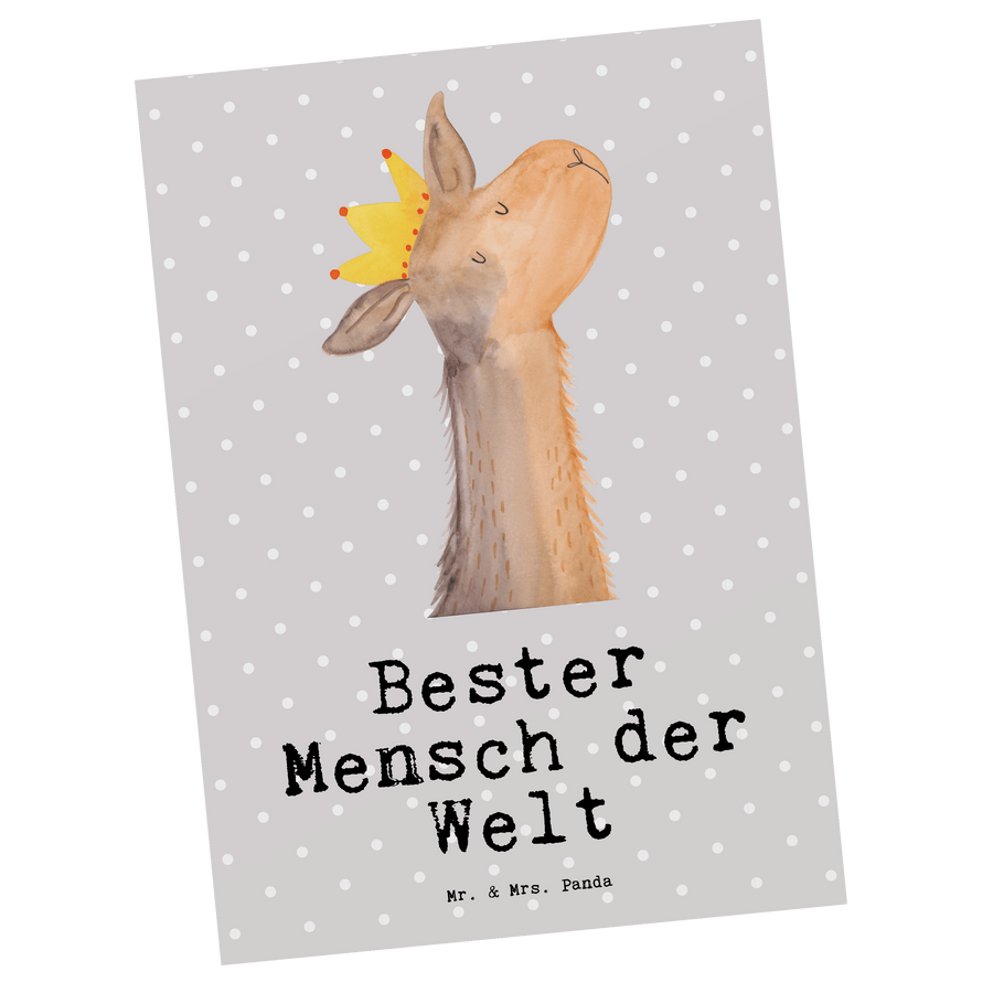 Postkarte Lama Bester Mensch der Welt - Grau Pastell