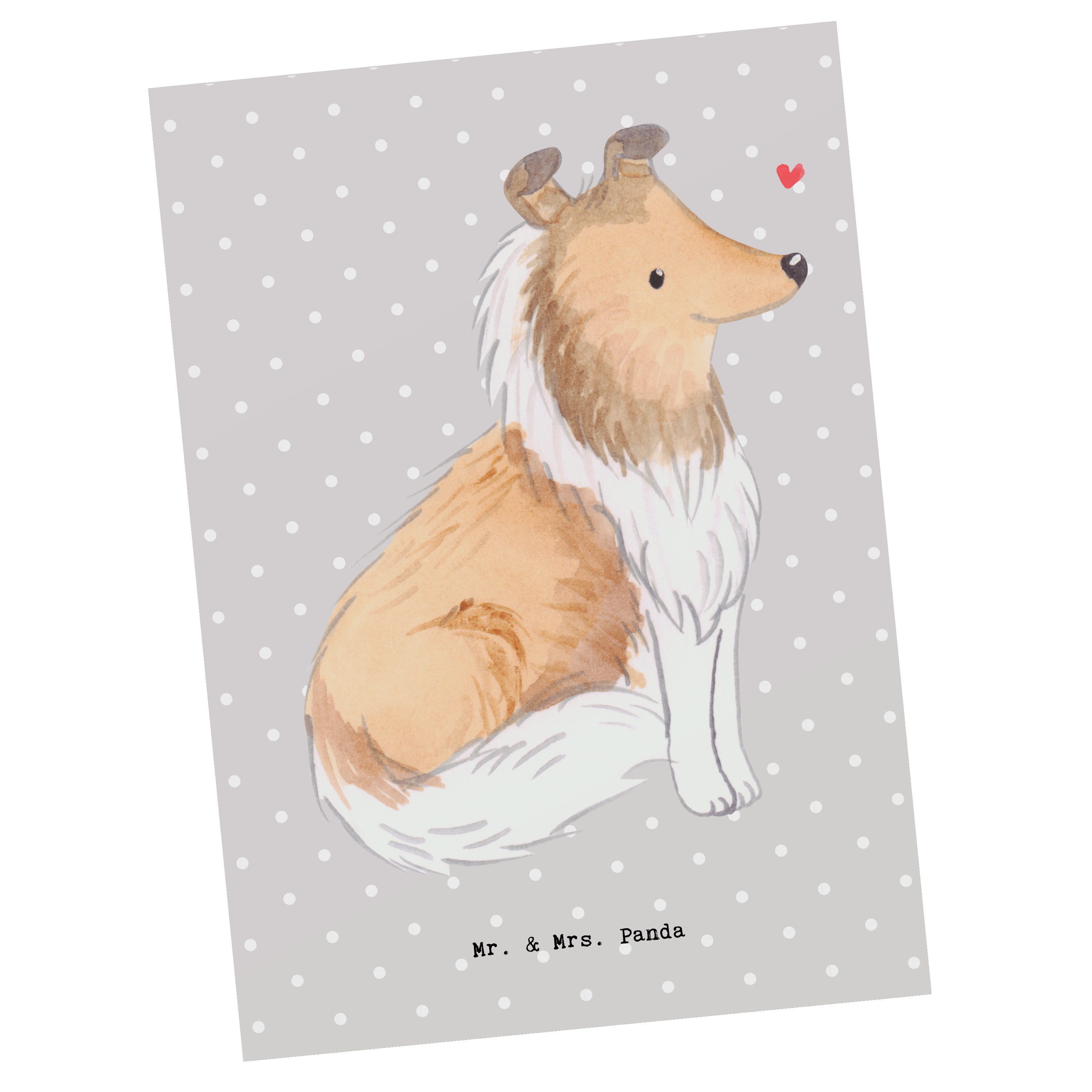 Postkarte Langhaar Collie Moment - mit Spruch - Grau Pastell