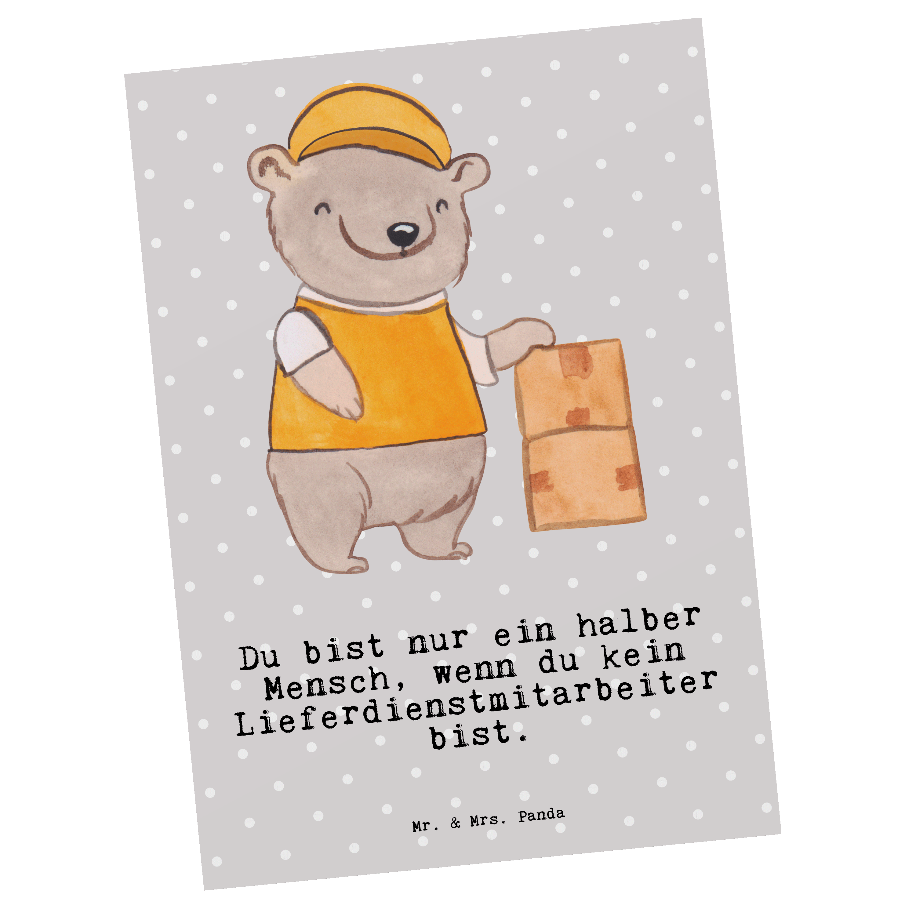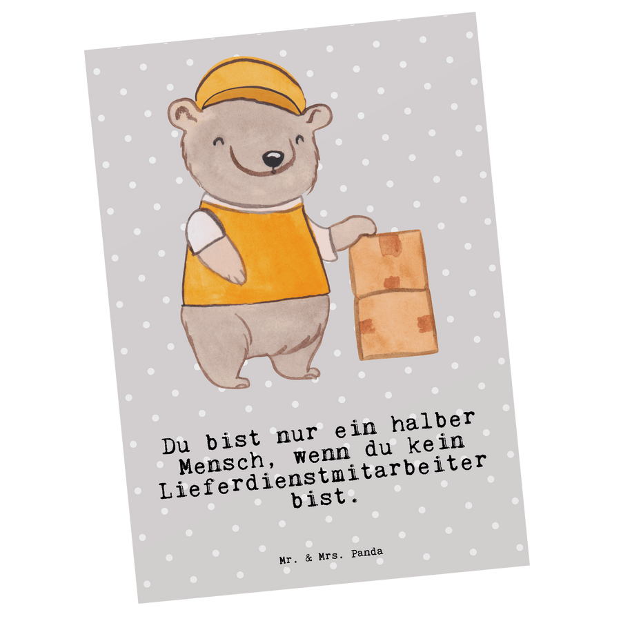 Postkarte Lieferdienstmitarbeiter mit Herz - Grau Pastell