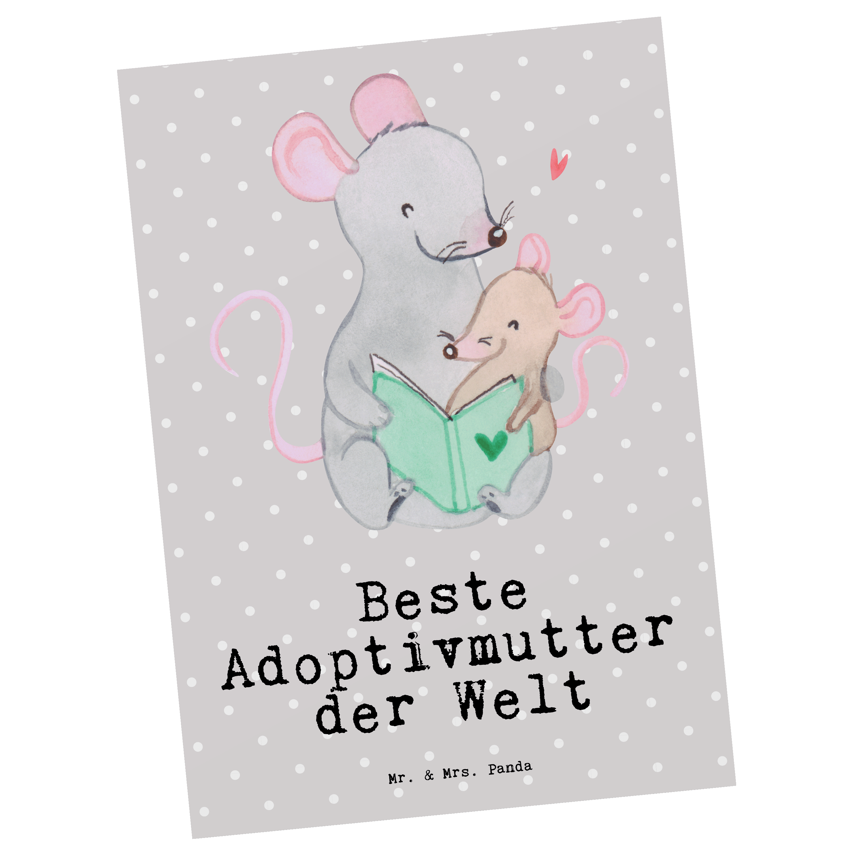 Postkarte Maus Beste Adoptivmutter der Welt - Grau Pastell