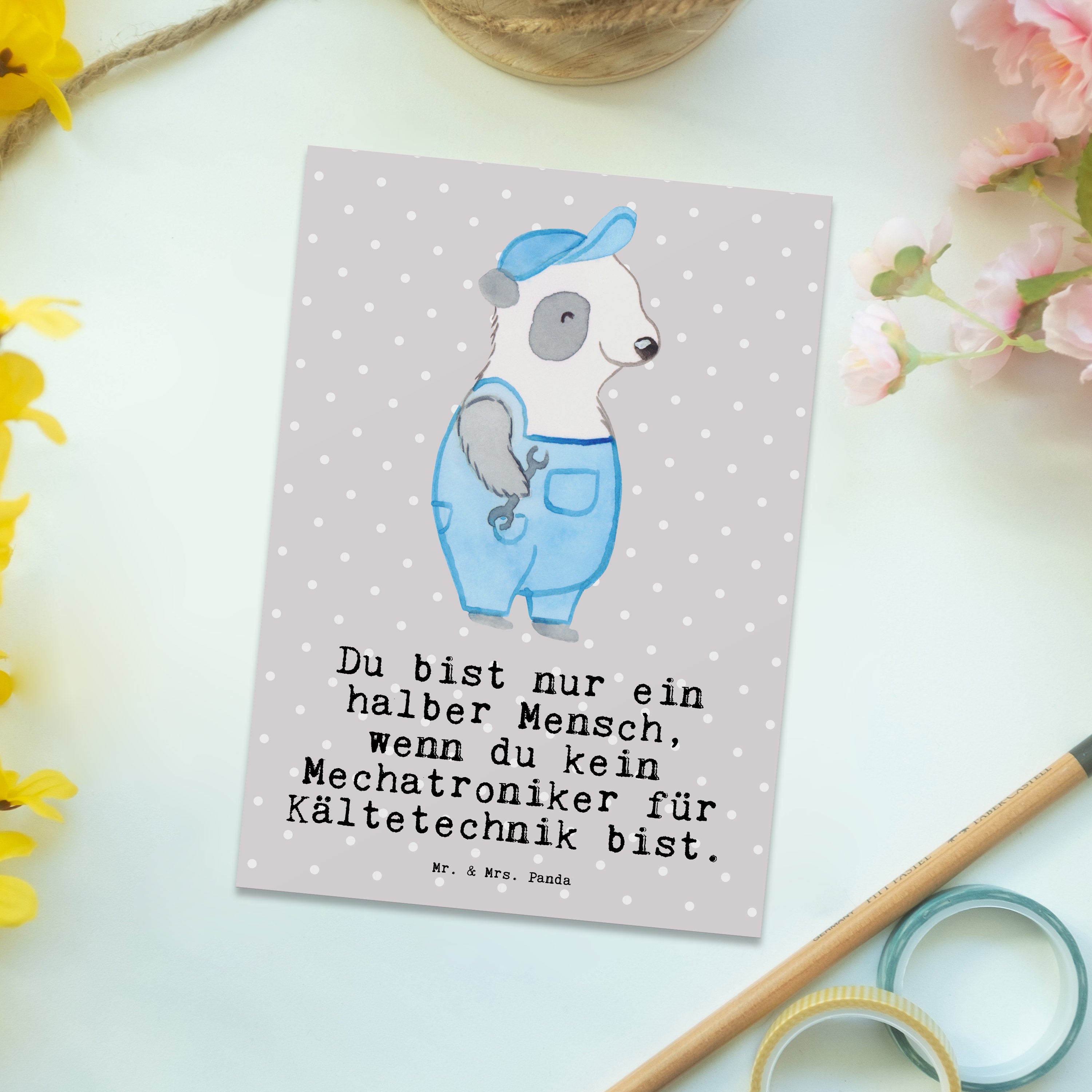 Postkarte Mechatroniker für Kältetechnik mit Herz - Grau Pastell