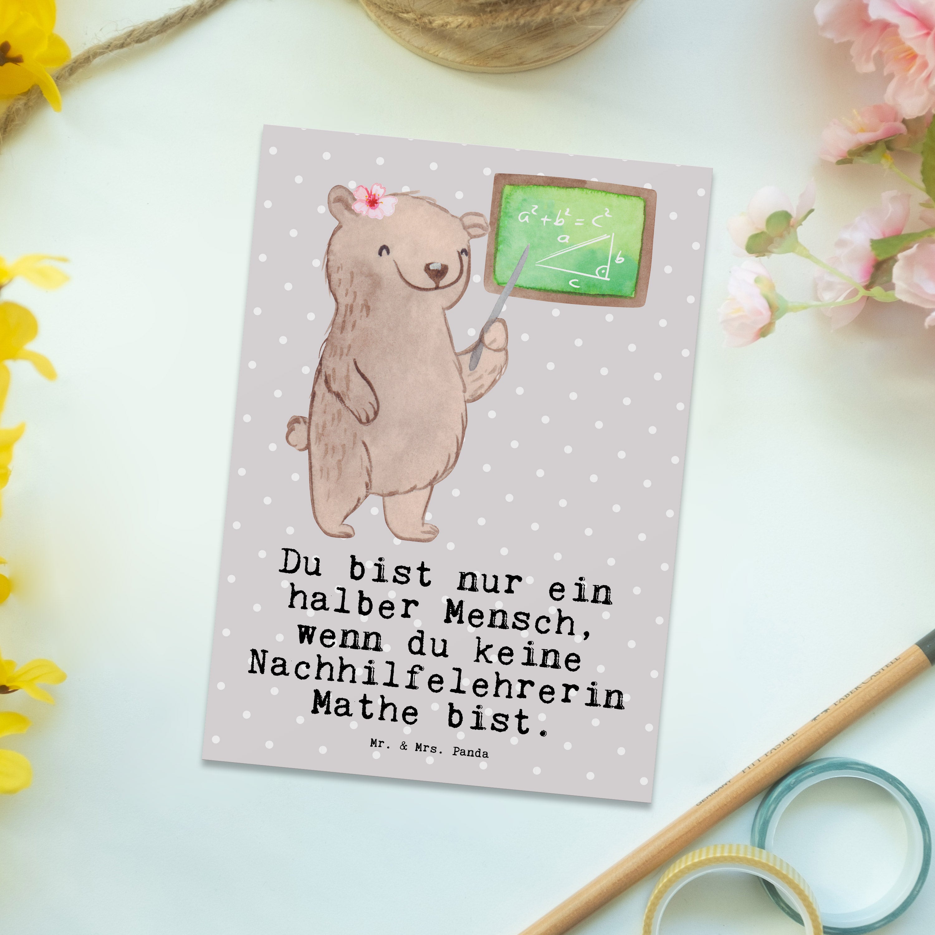 Postkarte Nachhilfelehrerin Mathe mit Herz - Grau Pastell