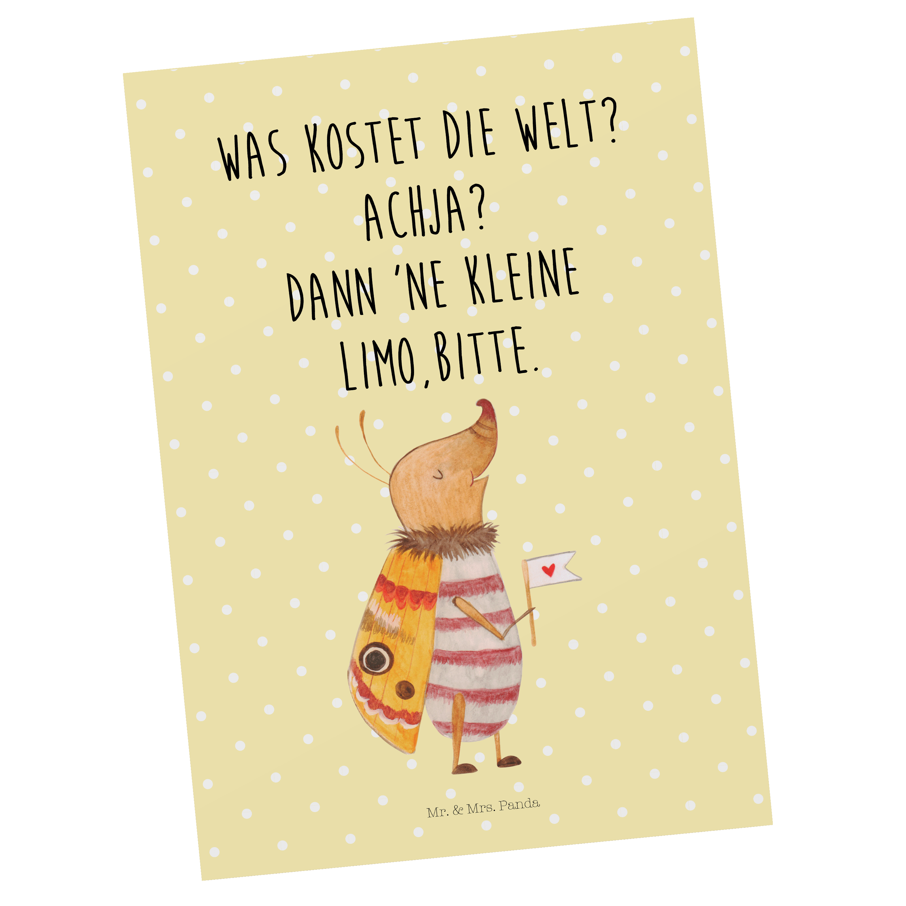 Postkarte Nachtfalter mit Fähnchen Geschenkkarte, Grußkarte, Karte, Einladung, Ansichtskarte, Geburtstagskarte, Einladungskarte, Dankeskarte, Tiermotive, Gute Laune, lustige Sprüche, Tiere, Nachtfalter, Käfer, Spruch lustig, Spruch witzig, süß, niedlich, Küche Deko, Was kostet die Welt