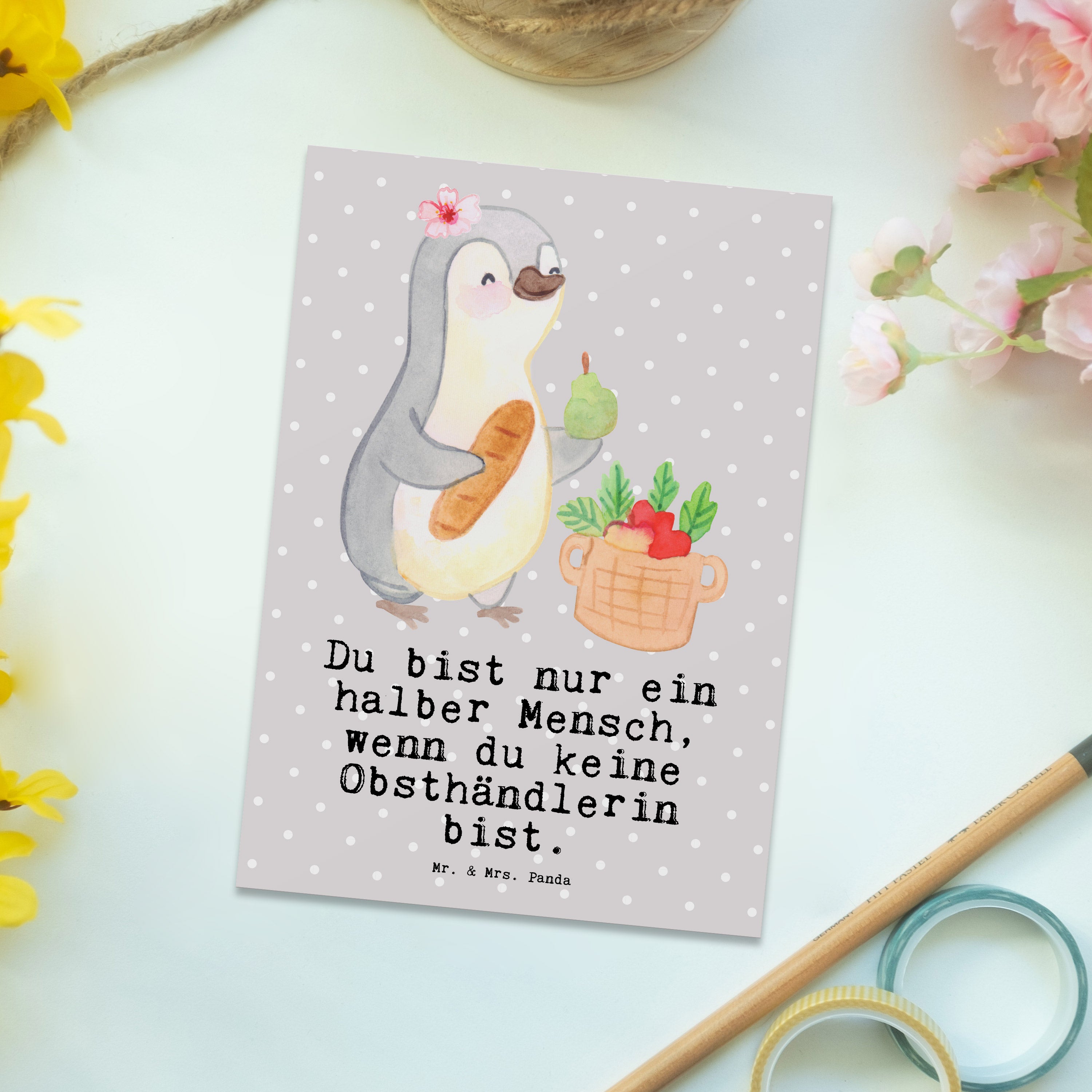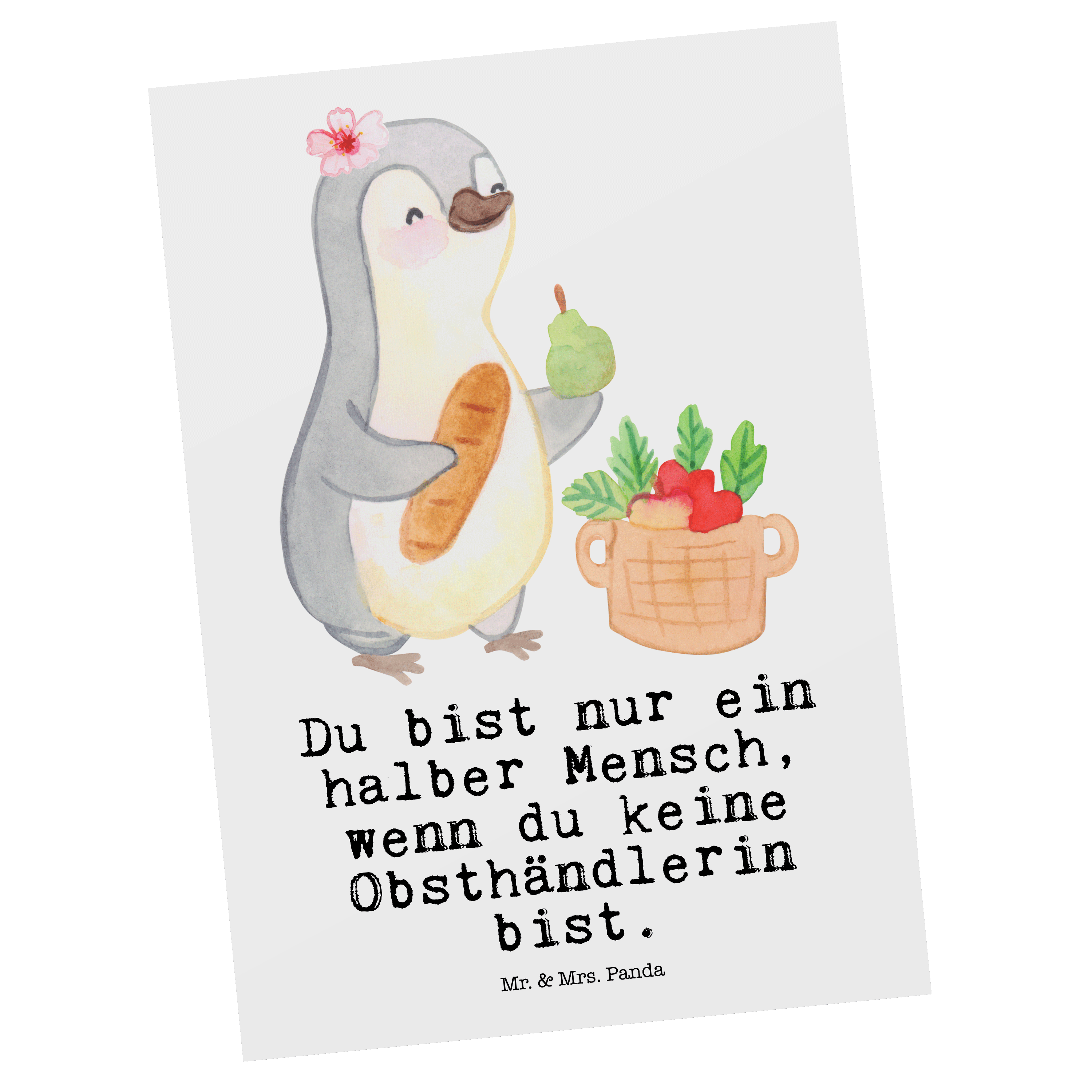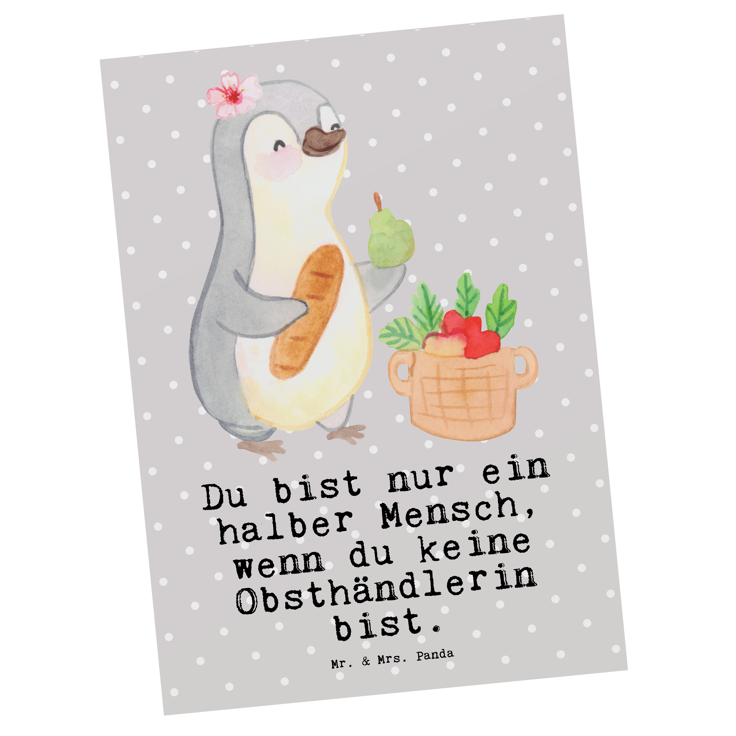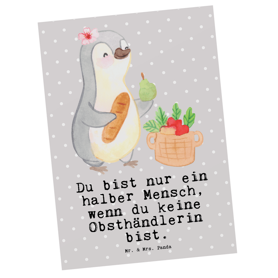 Postkarte Obsthändlerin mit Herz - Grau Pastell