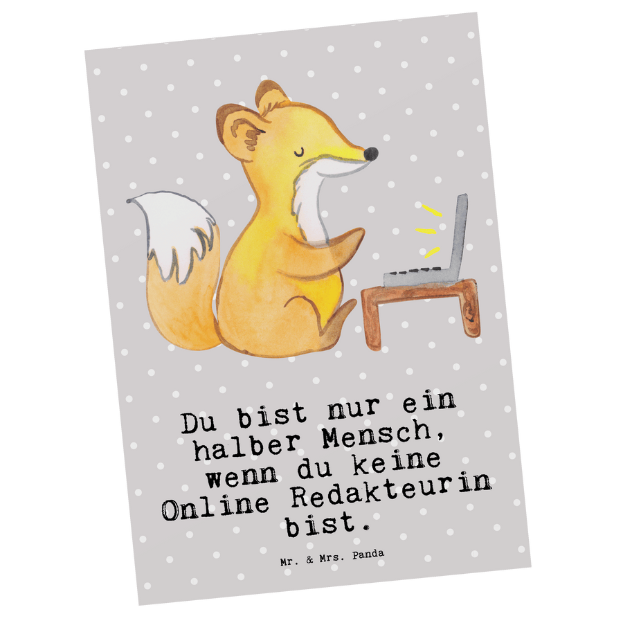 Postkarte Online Redakteurin mit Herz - Grau Pastell