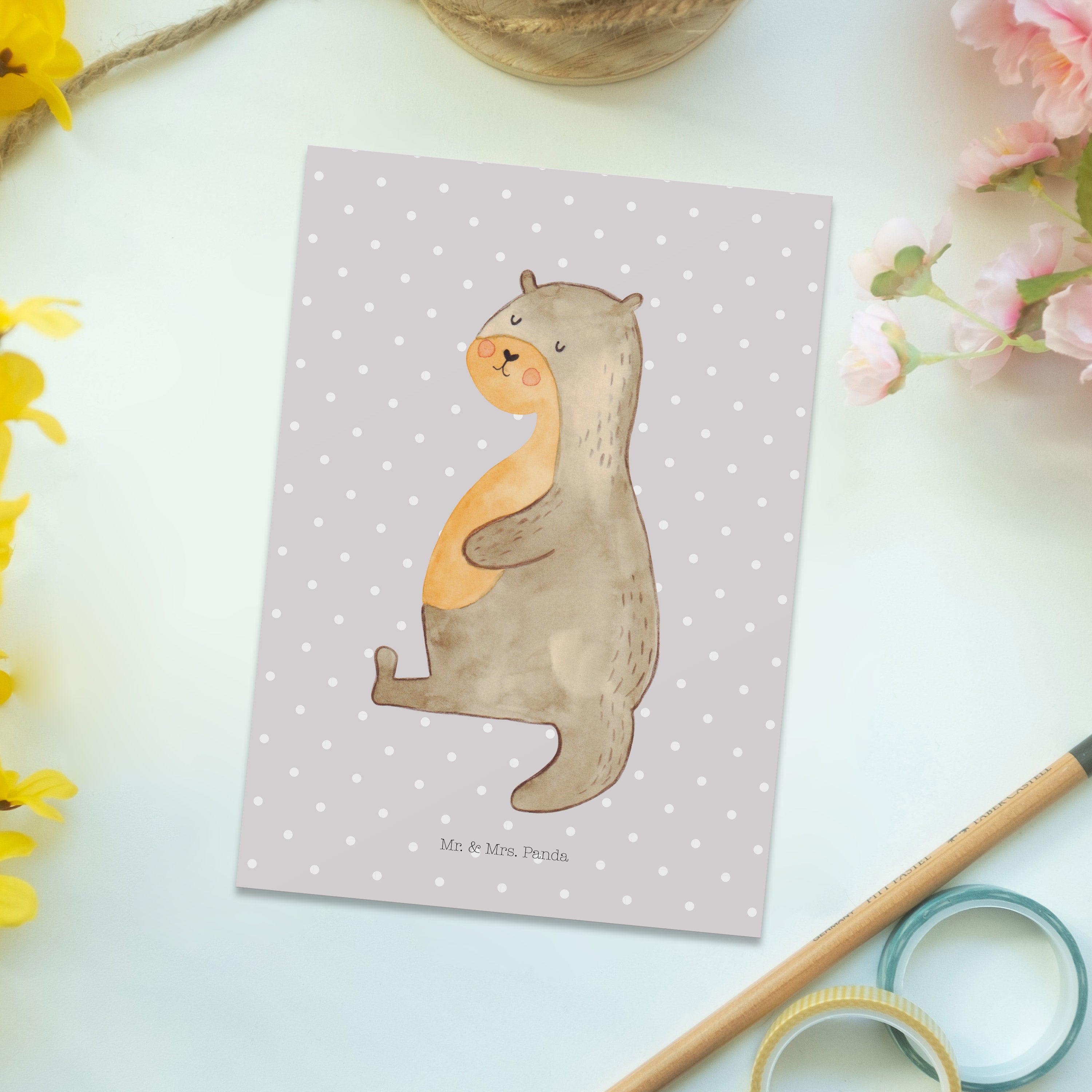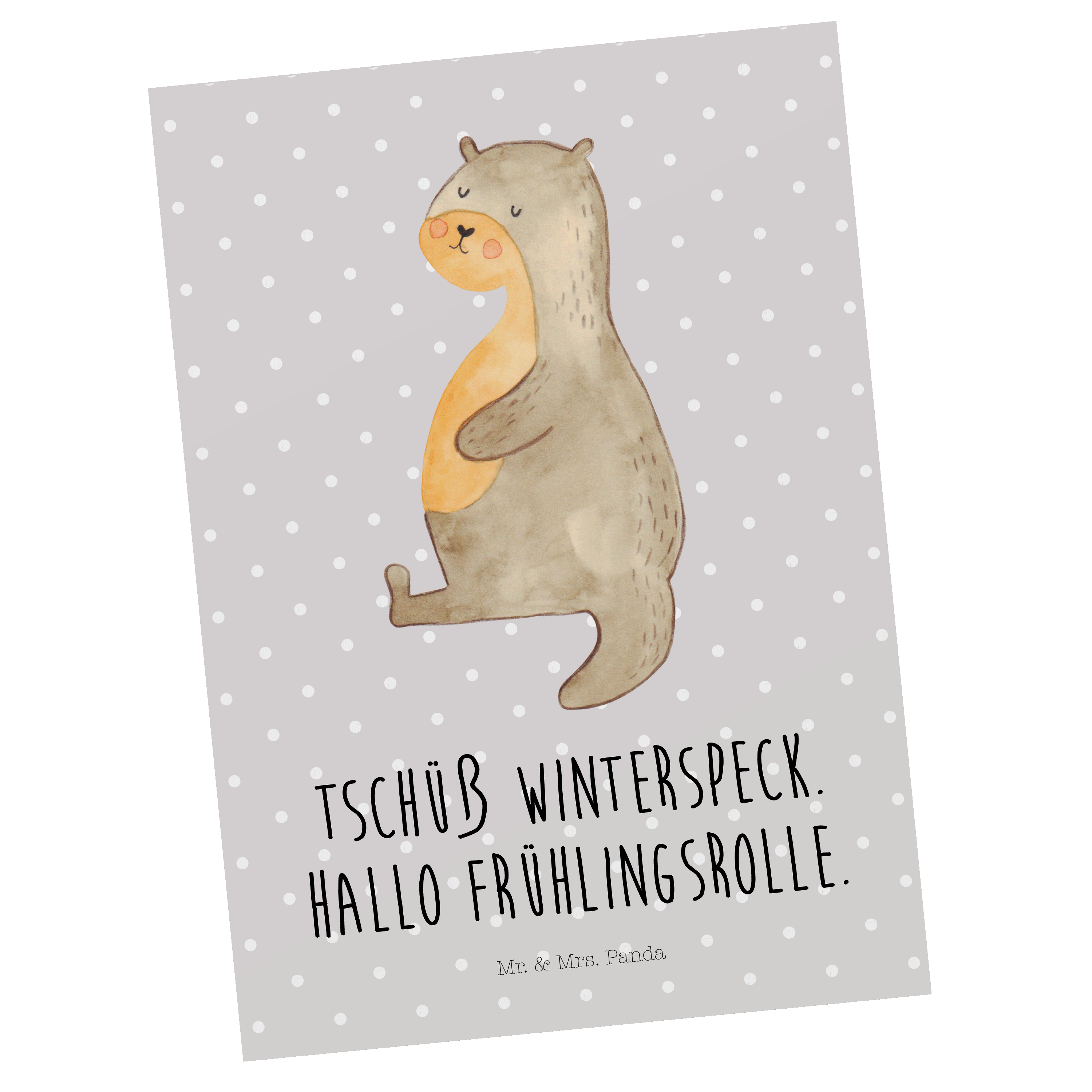 Postkarte Otter Bauch - mit Spruch - Grau Pastell