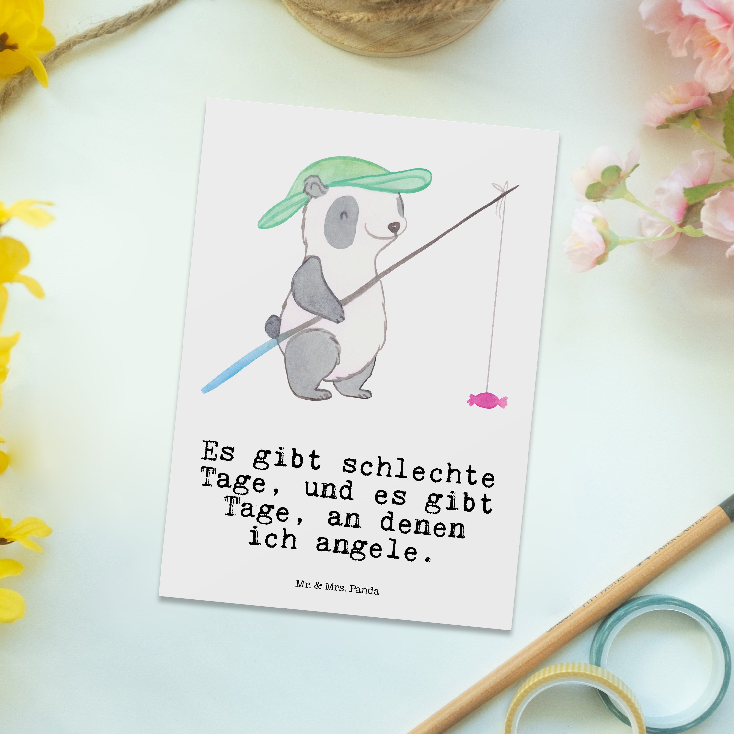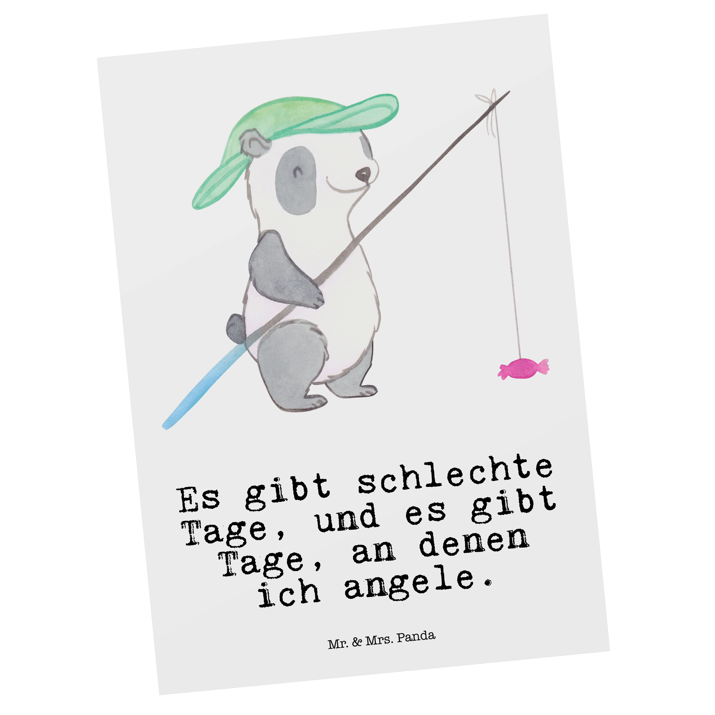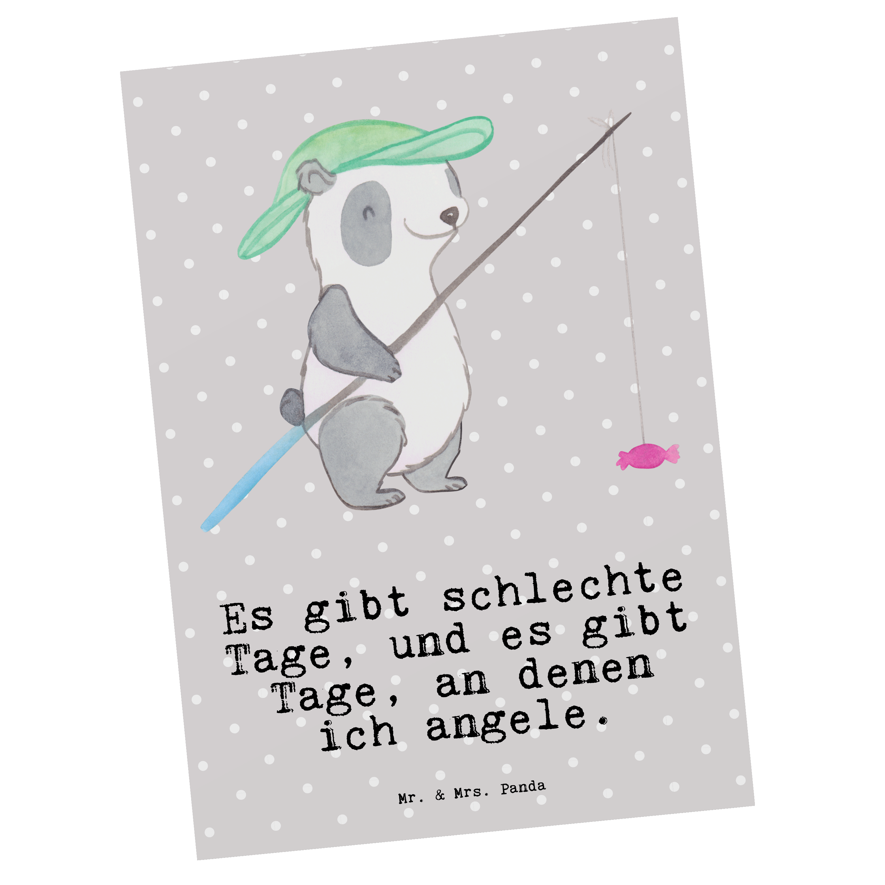 Postkarte Panda Angeln Tage - Grau Pastell